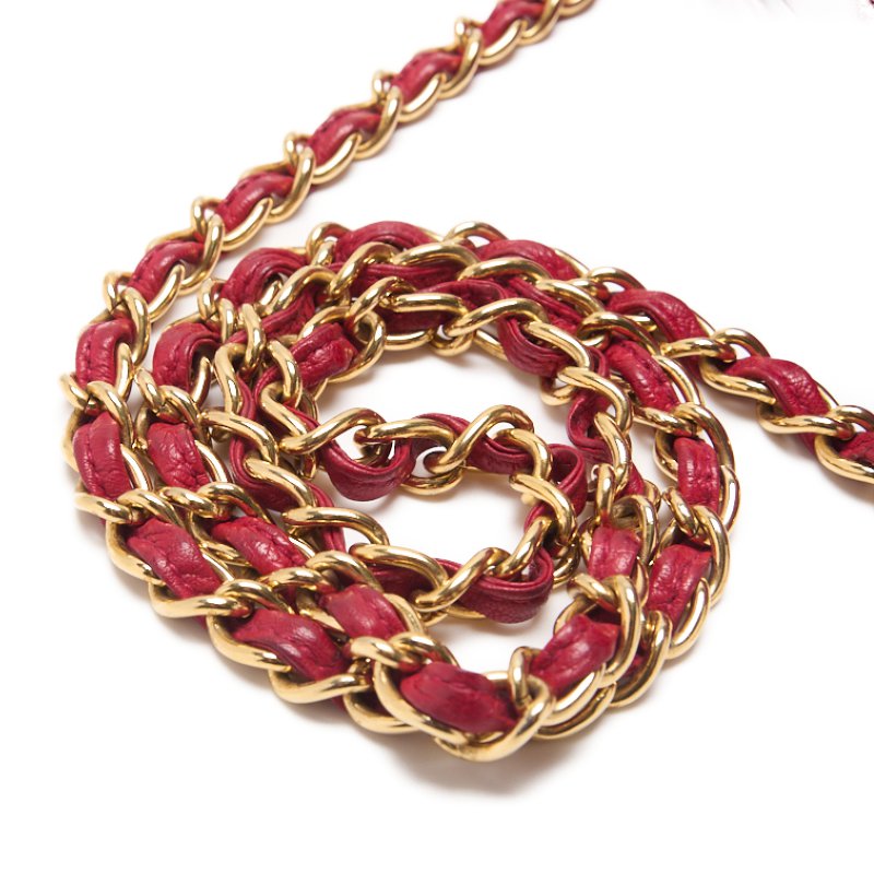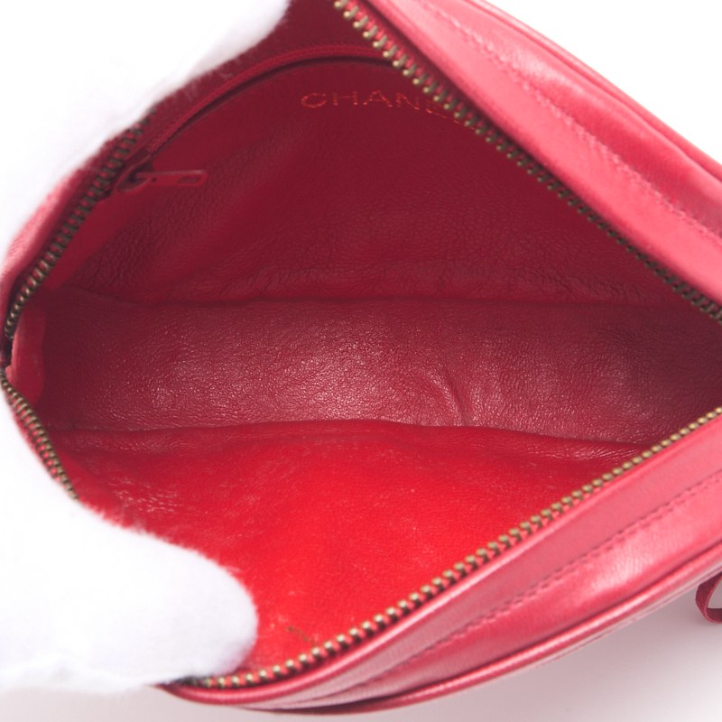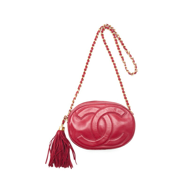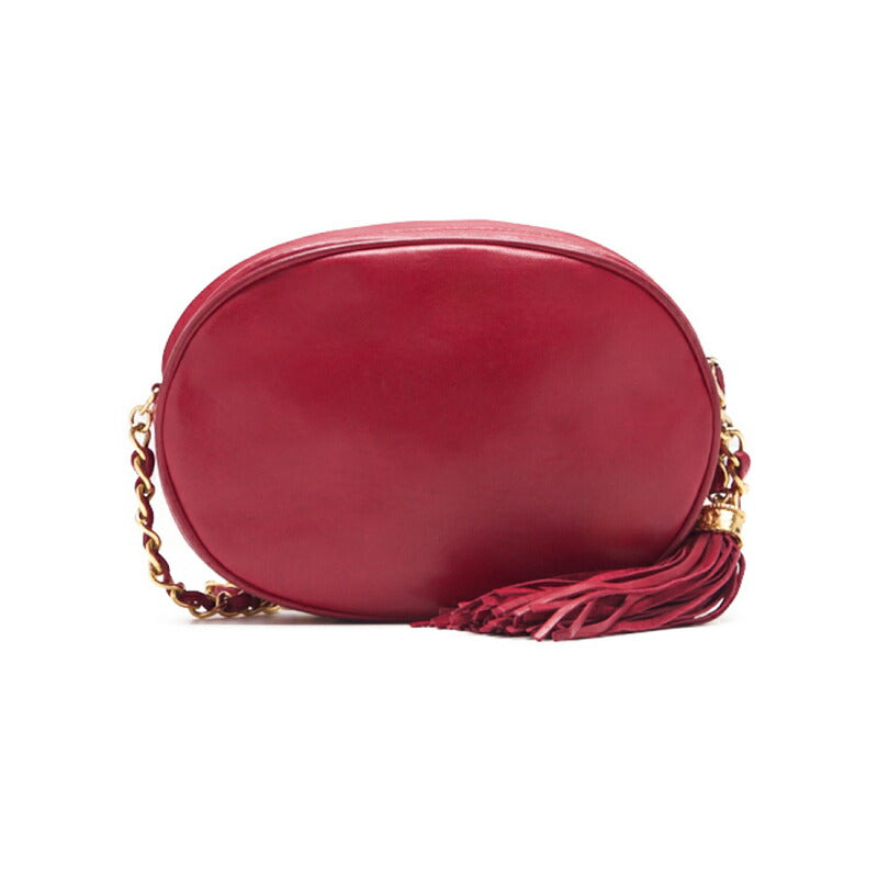 Sac bandoulière d'occasion, Coco Mark Fringe, cuir d'agneau, rouge, finitions dorées, d'occasion