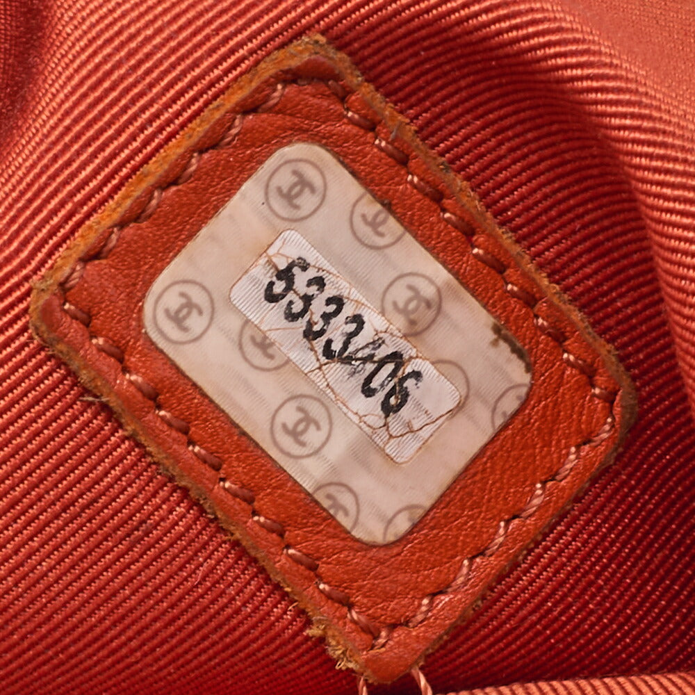 Sublimez votre collection d'accessoires avec le sac à main Coco Mark Écaille de tortue de CHANEL . Ce sac bandoulière raffiné est confectionné en cuir d'agneau luxueux d'une teinte orange éclatante, rehaussé de finitions dorées qui lui confèrent sophistication et style.