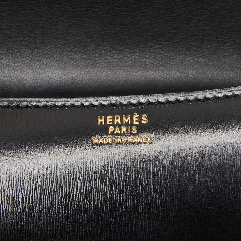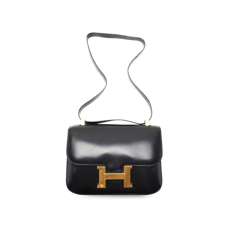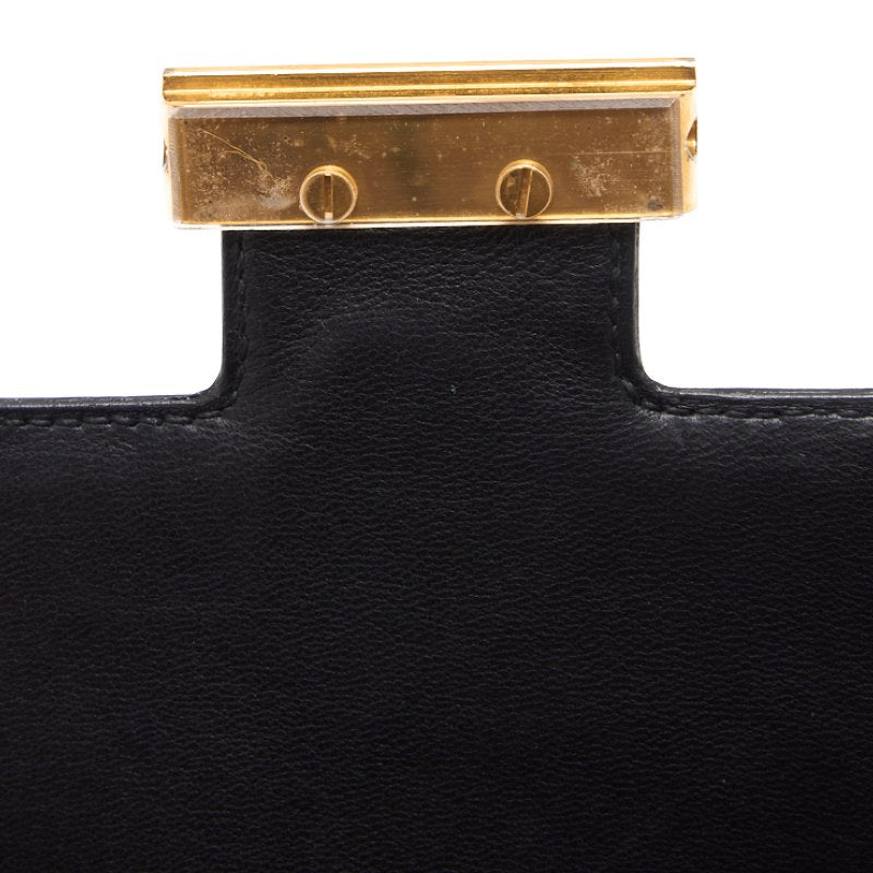 Sac bandoulière Constance 23 d'occasion, mini sac bandoulière, cuir de veau box, noir, finitions dorées, d'occasion