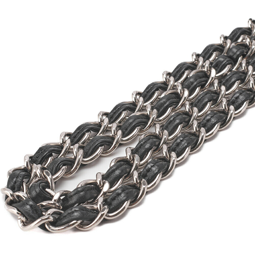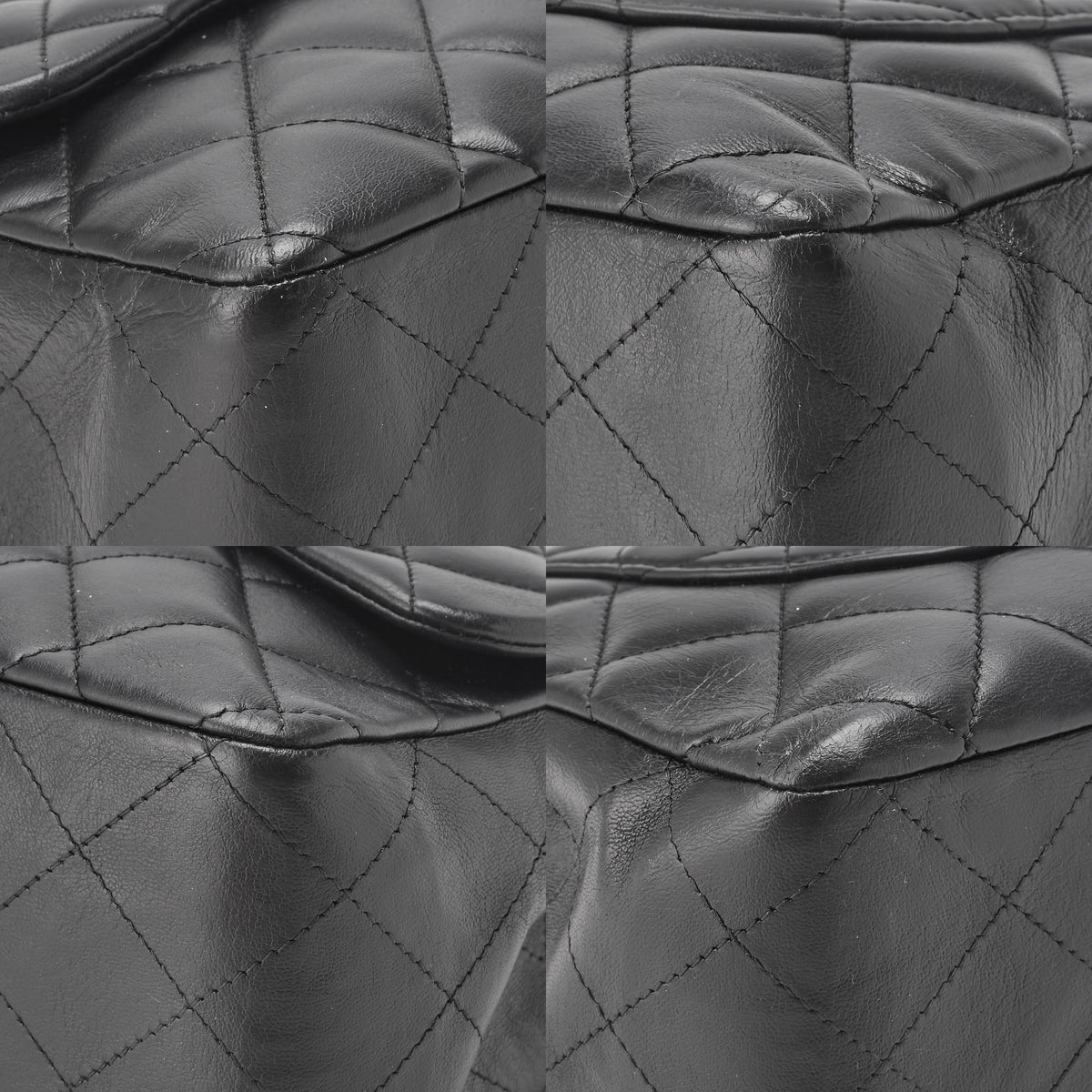 Sac bandoulière d'occasion, Deca Matelasse, chaîne à 30 tours, cuir d'agneau, noir, accessoires argentés, d'occasion