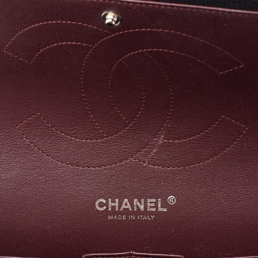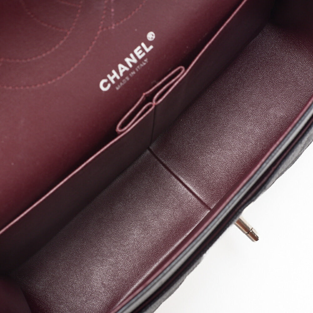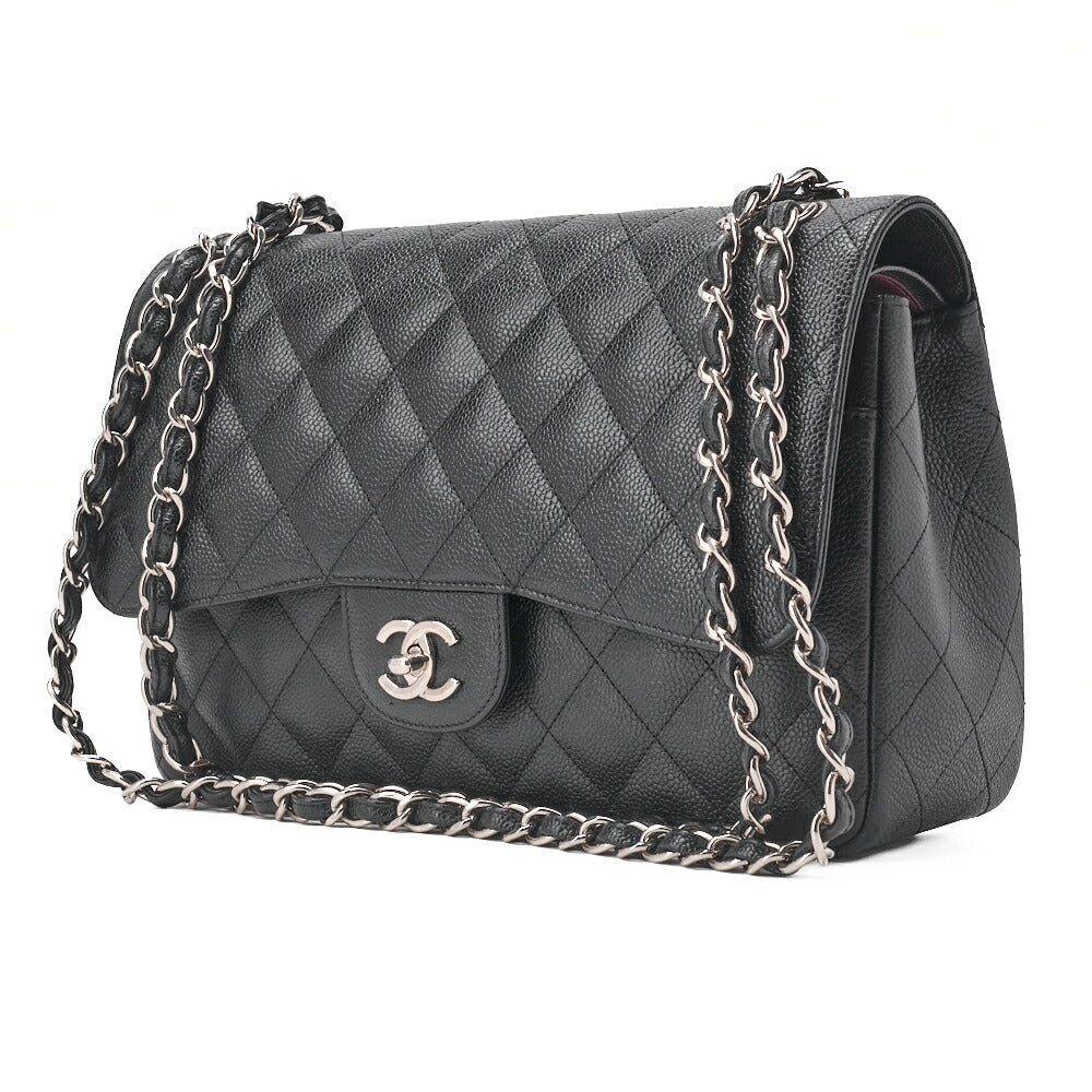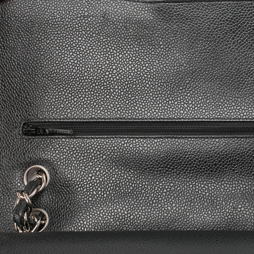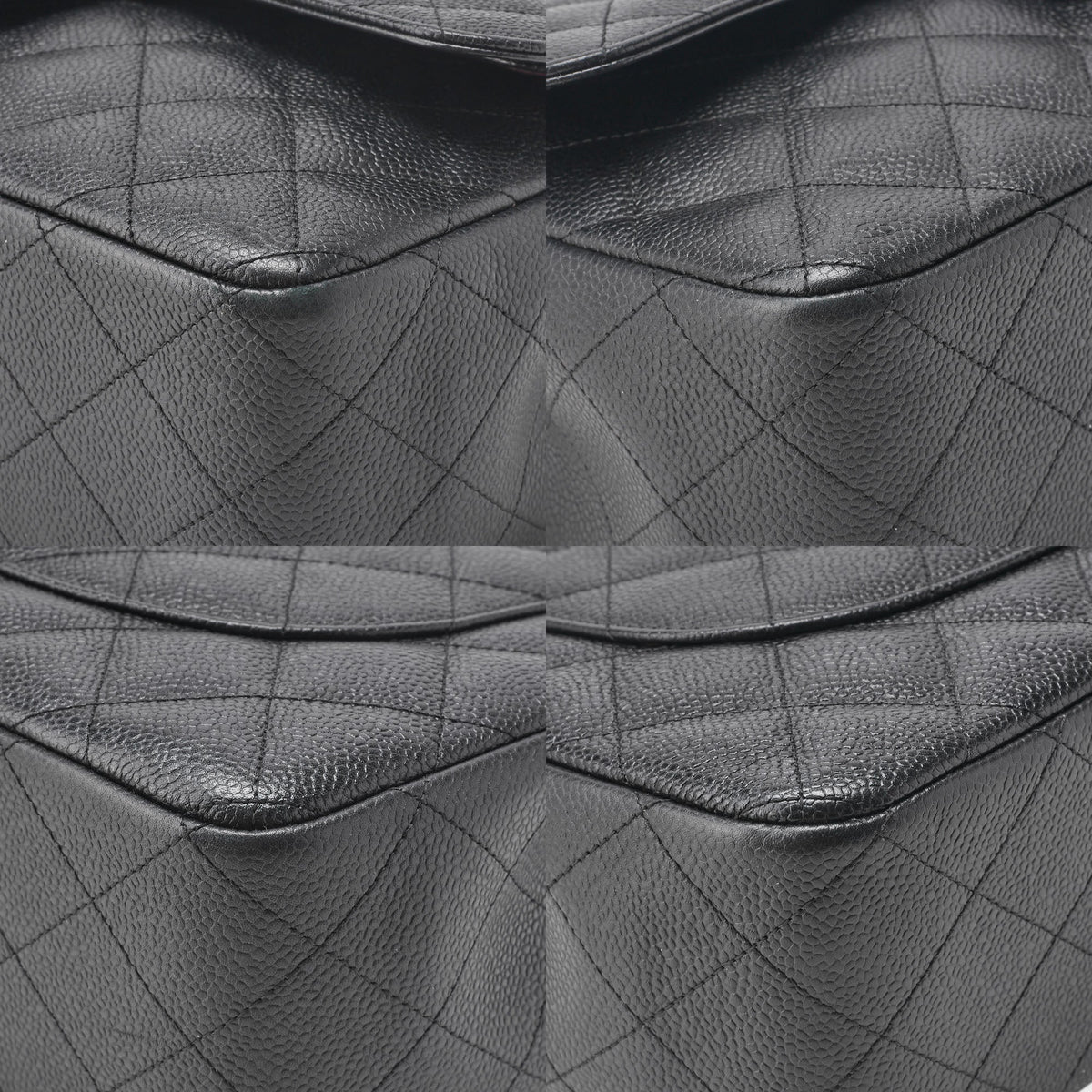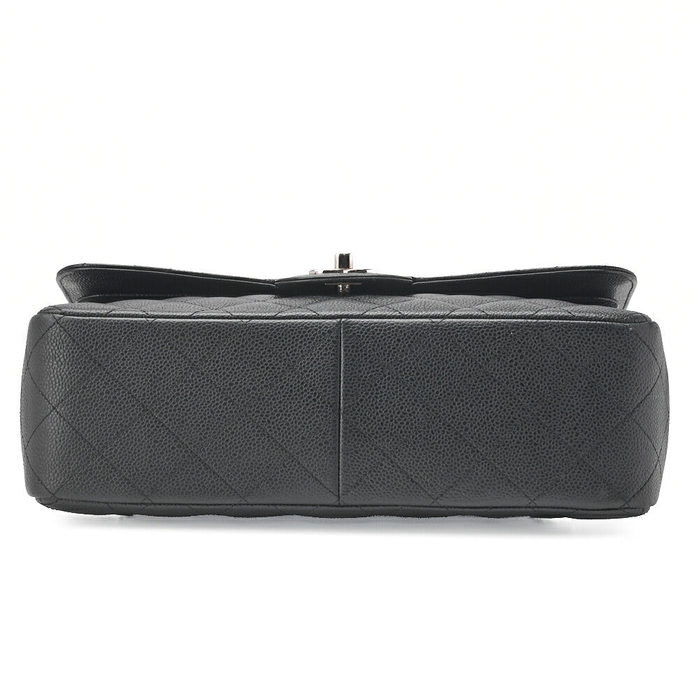 Sac bandoulière d'occasion, Deca Matelasse, double rabat, cuir caviar, noir, finitions argentées, d'occasion