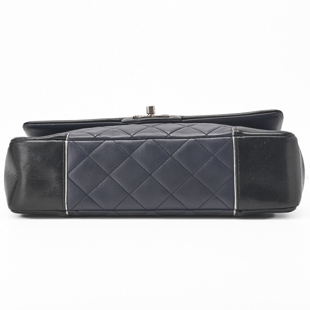 Sac bandoulière d'occasion, Deca Matelasse, fermoir tournant, cuir d'agneau, noir, métal argenté, d'occasion