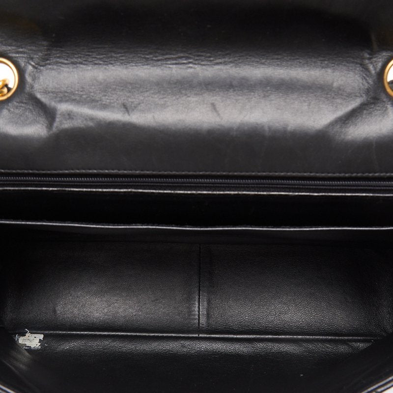Sac bandoulière d'occasion, Deca Matelasse, fermoir tournant, cuir d'agneau, noir, finitions dorées, d'occasion