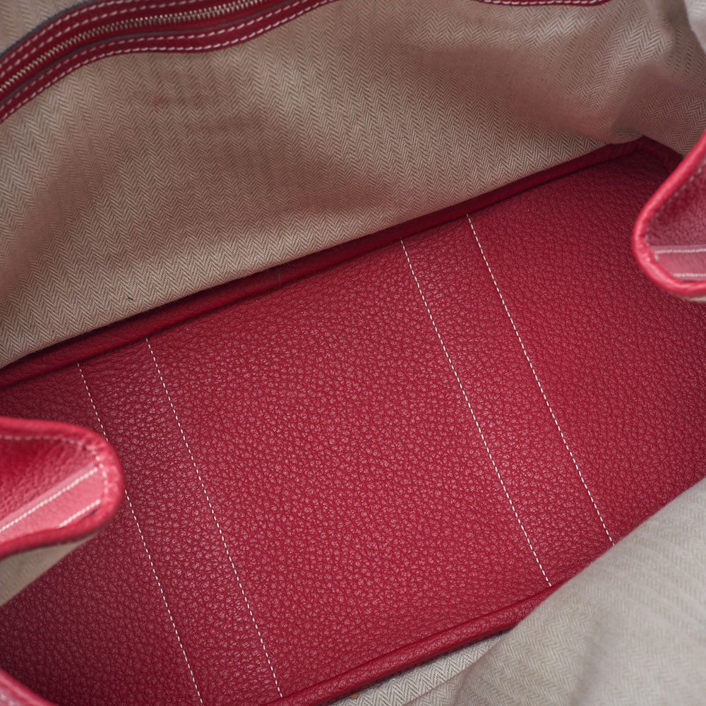 Sublimez votre style avec le sac cabas Hermès Garden Party PM, décliné dans un superbe Negonda Rouge et orné de finitions argentées. Ce sac pour femme raffiné, bien qu'occasion, met en valeur l'élégance intemporelle et le savoir-faire incomparable qui caractérisent la marque HERMES.