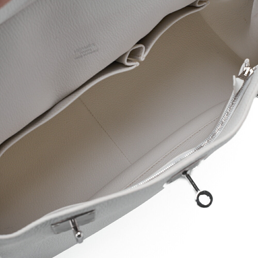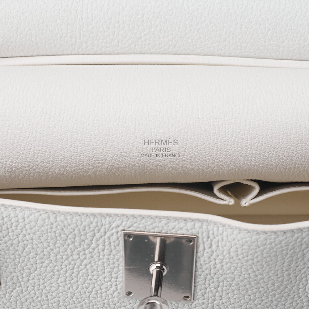 Sublimez votre style avec le sac bandoulière HERMES Gypsière 34 , un accessoire exceptionnel alliant sophistication et fonctionnalité. Confectionné en luxueux cuir Tryon Clémence , ce sac séduit par sa teinte blanche immaculée, sublimée par d'élégantes finitions en métal argenté .