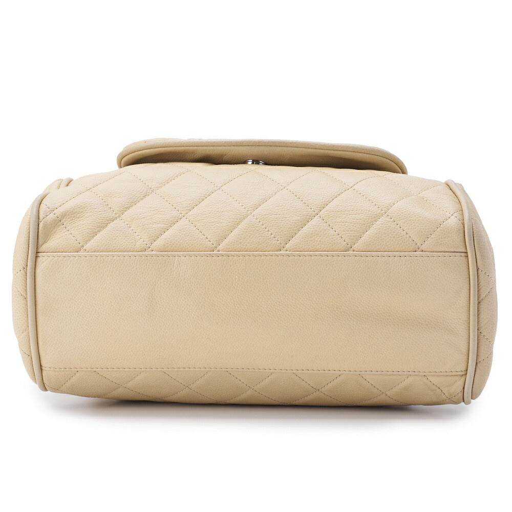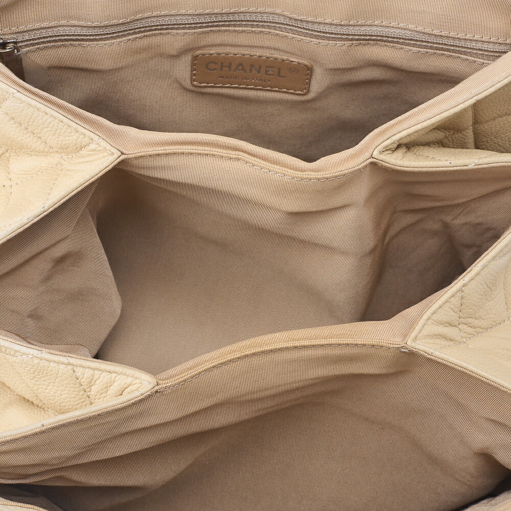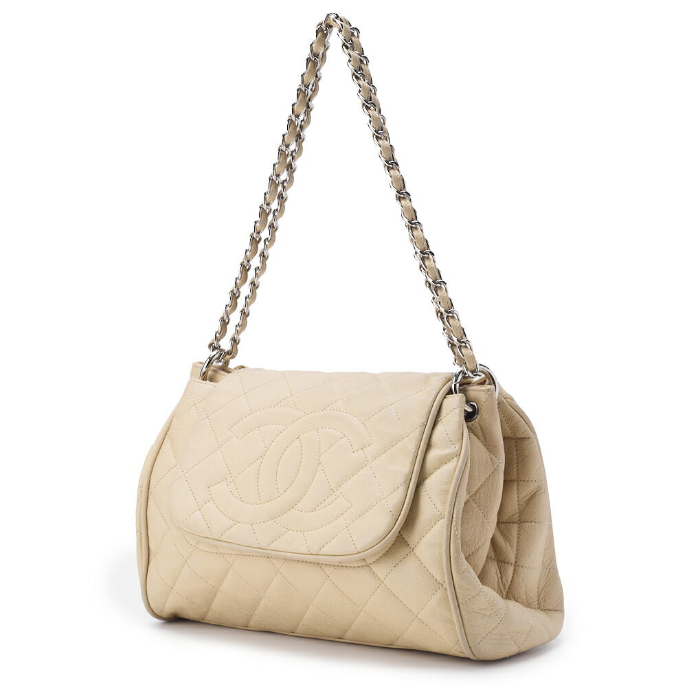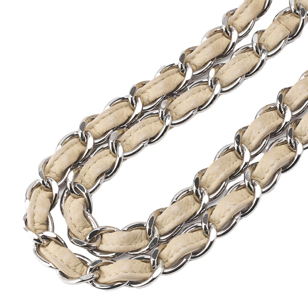 Sac bandoulière d'occasion, matelassé, bandoulière chaîne, cuir caviar, ivoire, finitions argentées, d'occasion