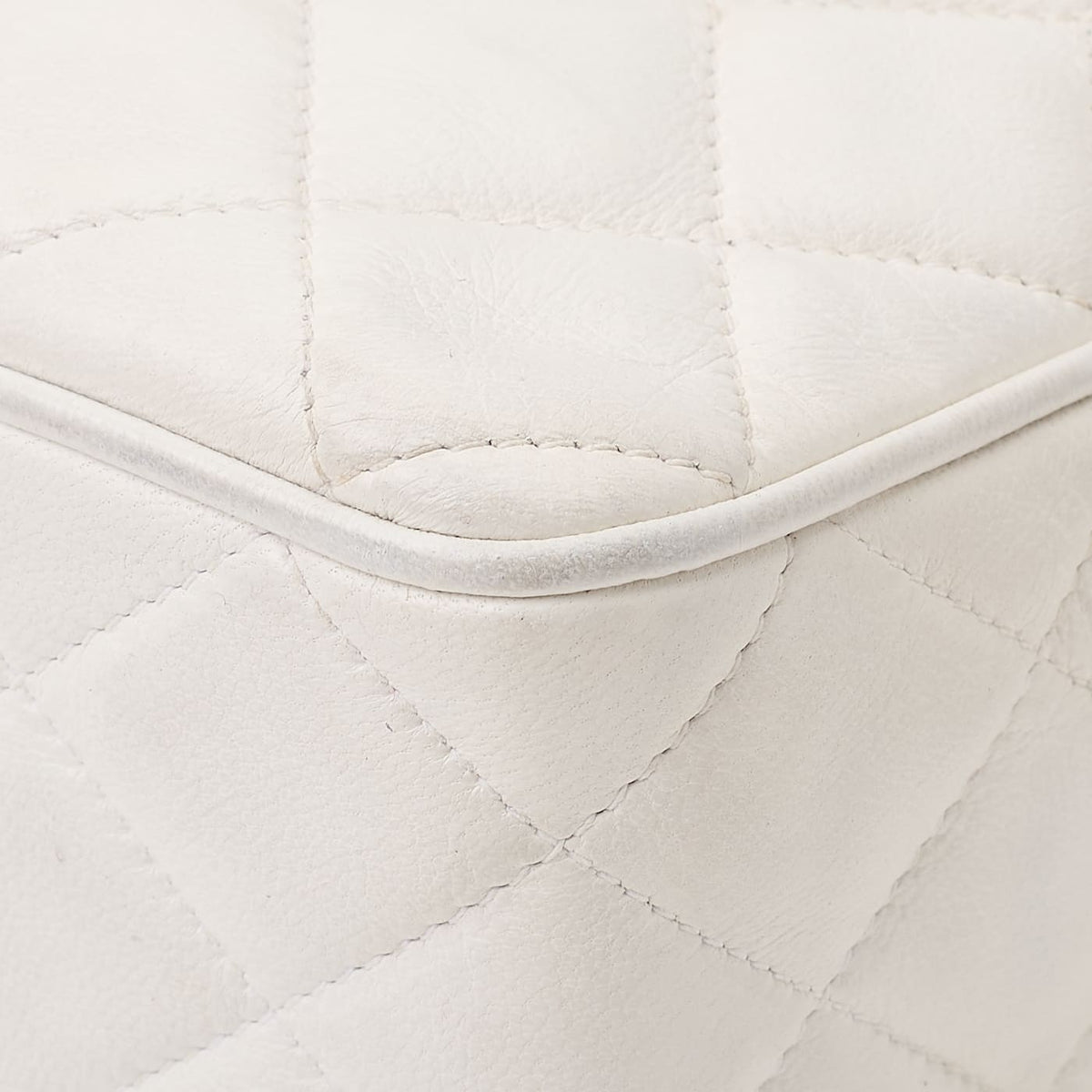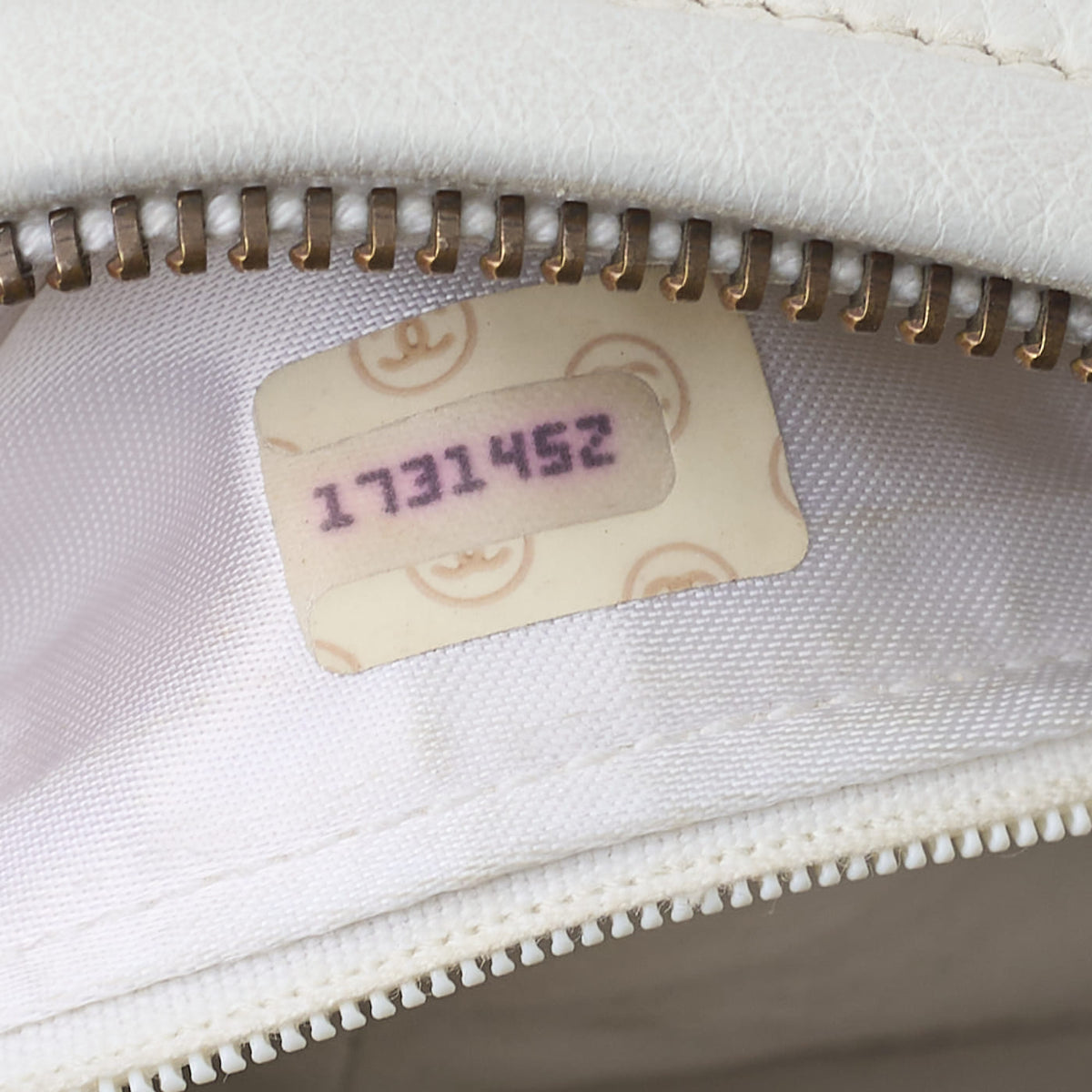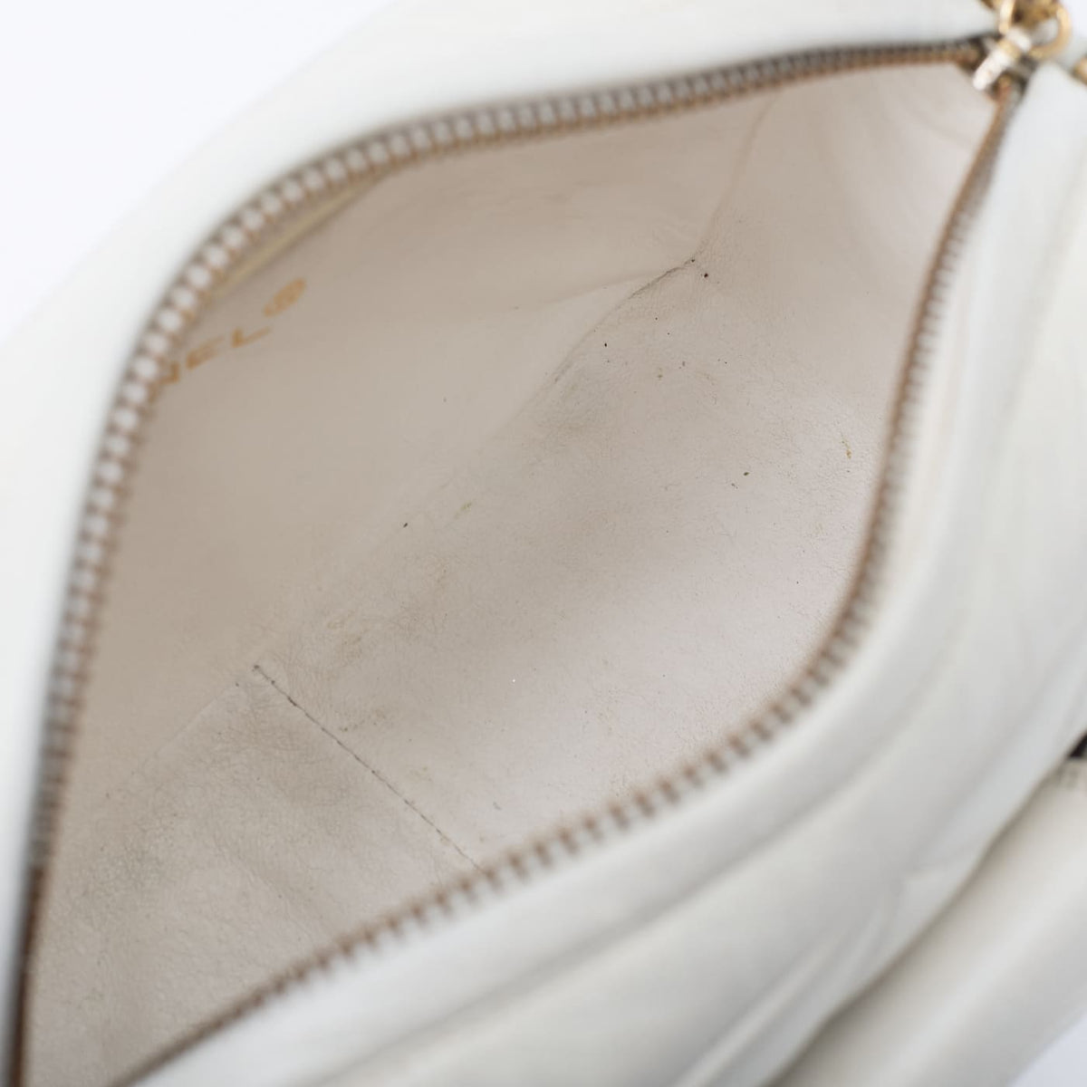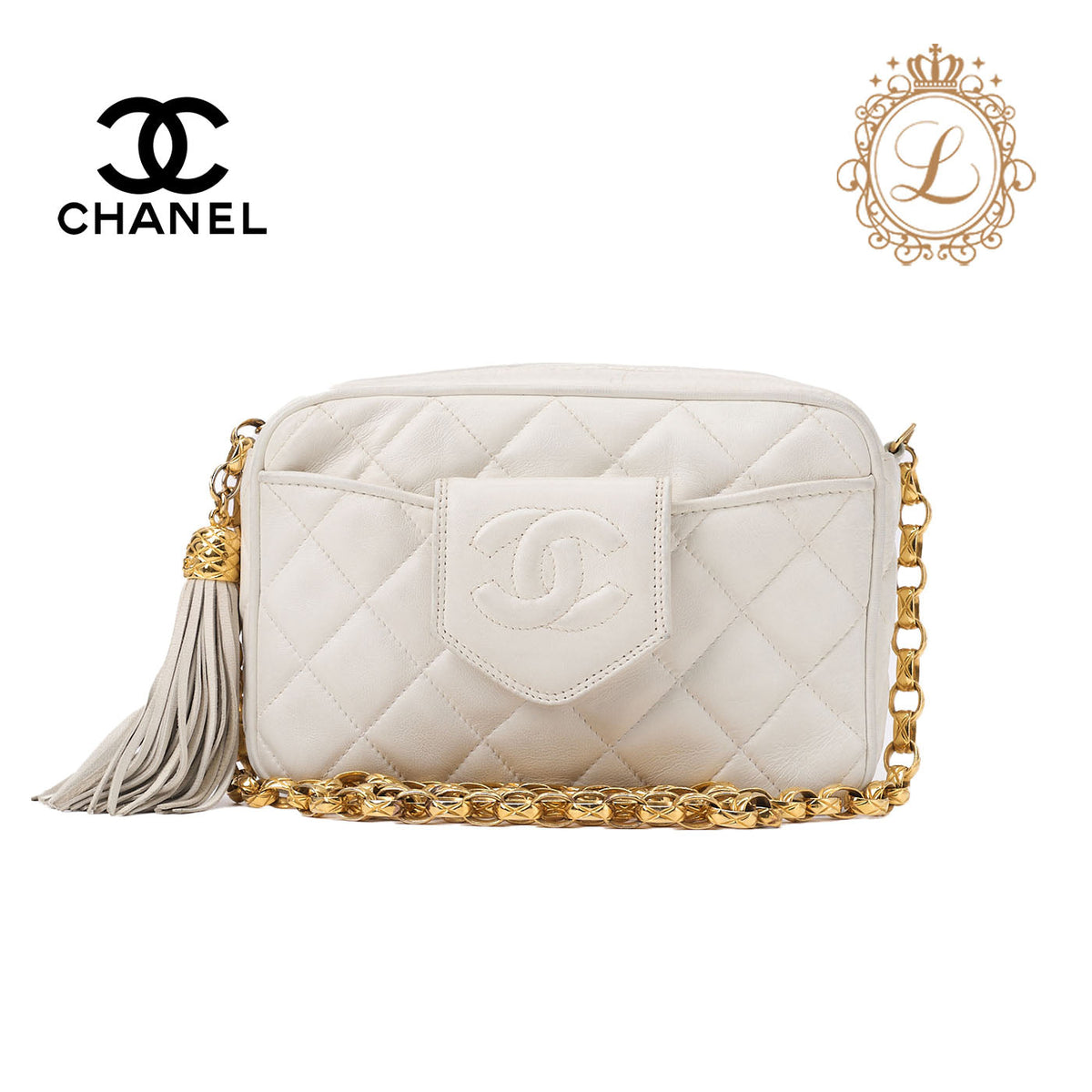 Sac à bandoulière d'occasion Mini Matelasse Coco Mark avec chaîne Bijou à franges en cuir d'agneau blanc et accessoires dorés. D'occasion