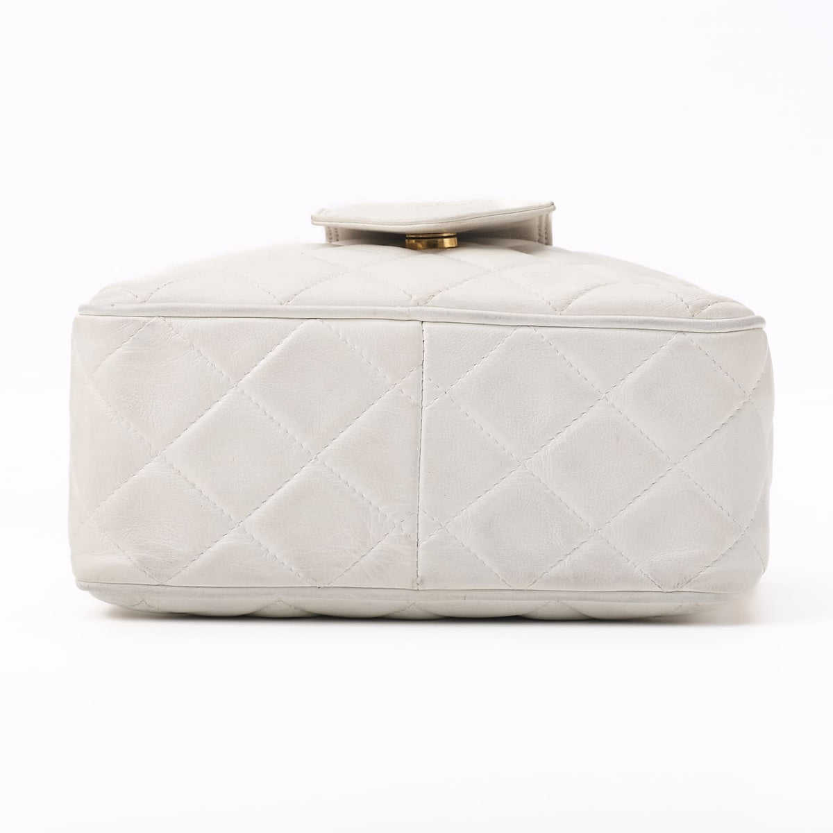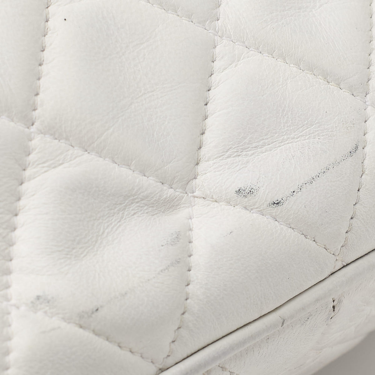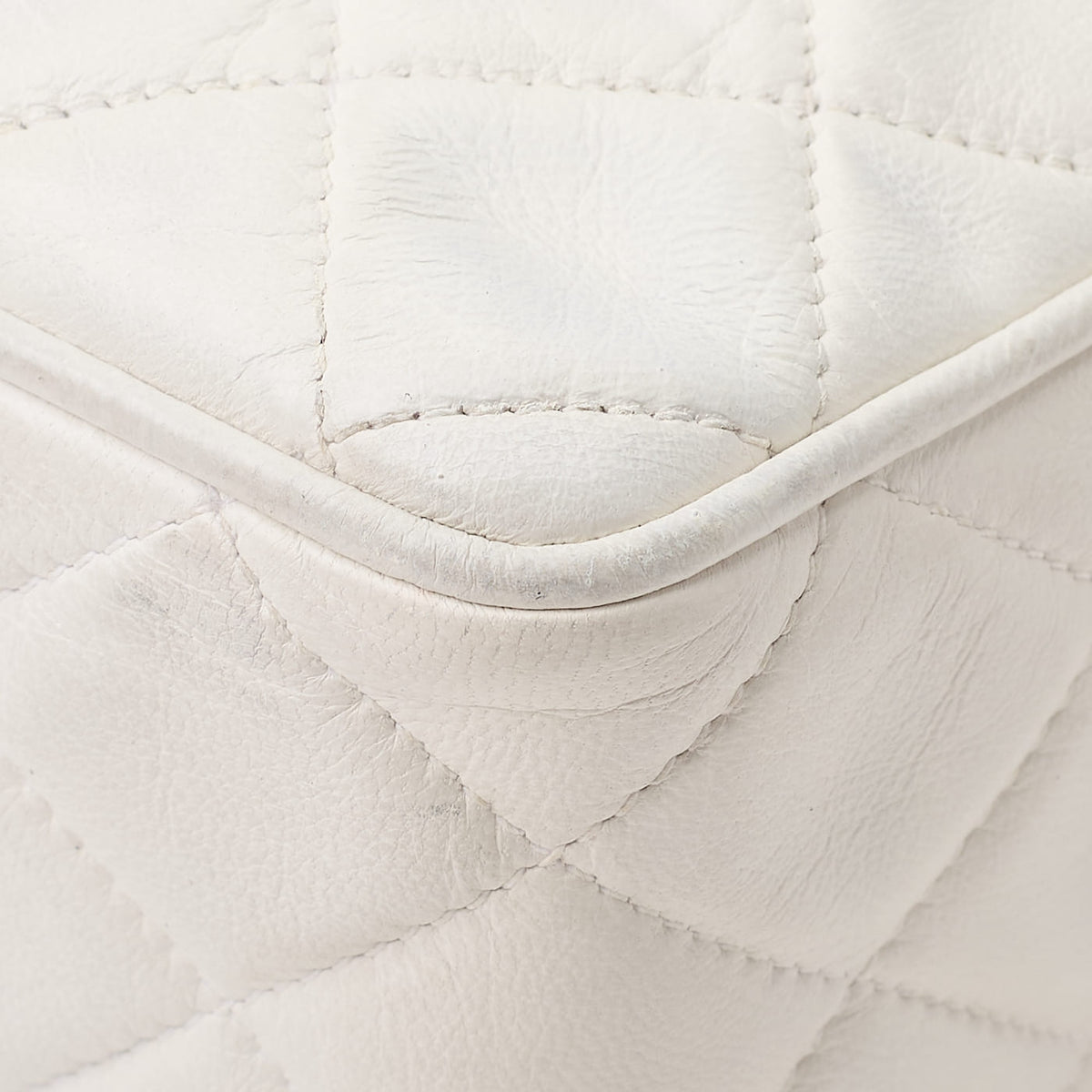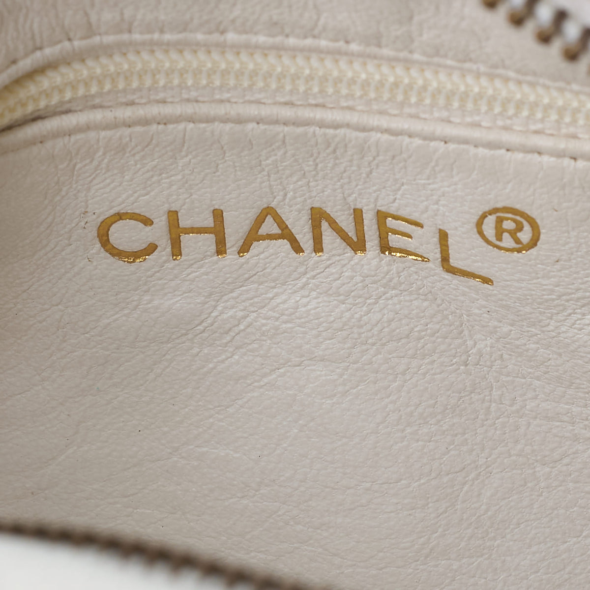 Sac à bandoulière d'occasion Mini Matelasse Coco Mark avec chaîne Bijou à franges en cuir d'agneau blanc et accessoires dorés. D'occasion