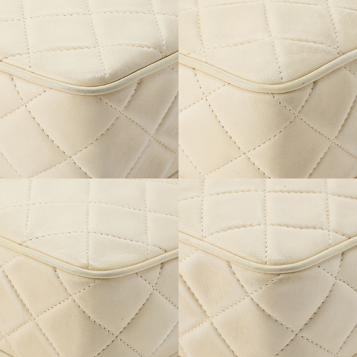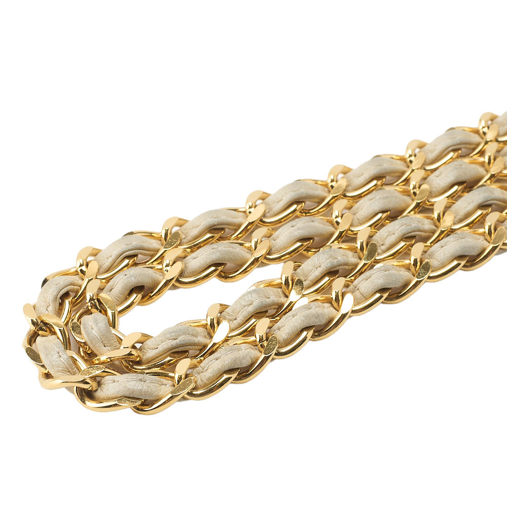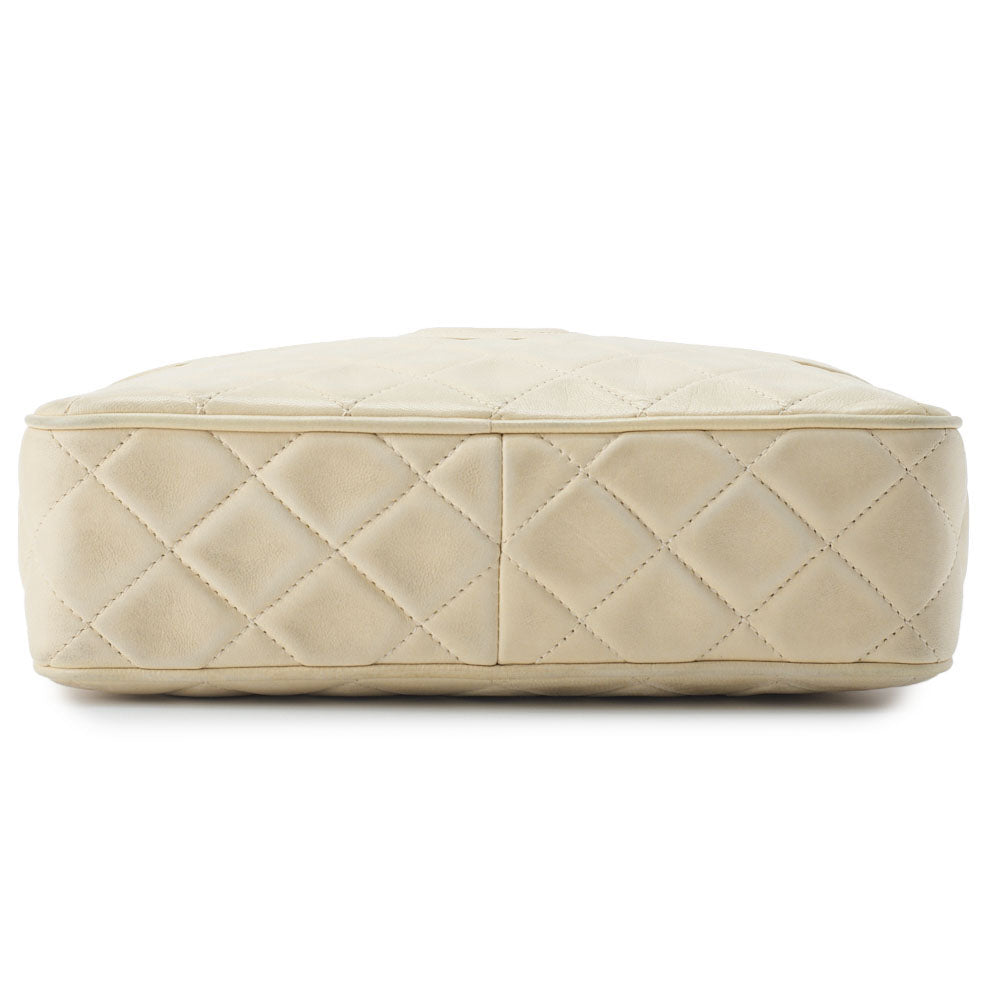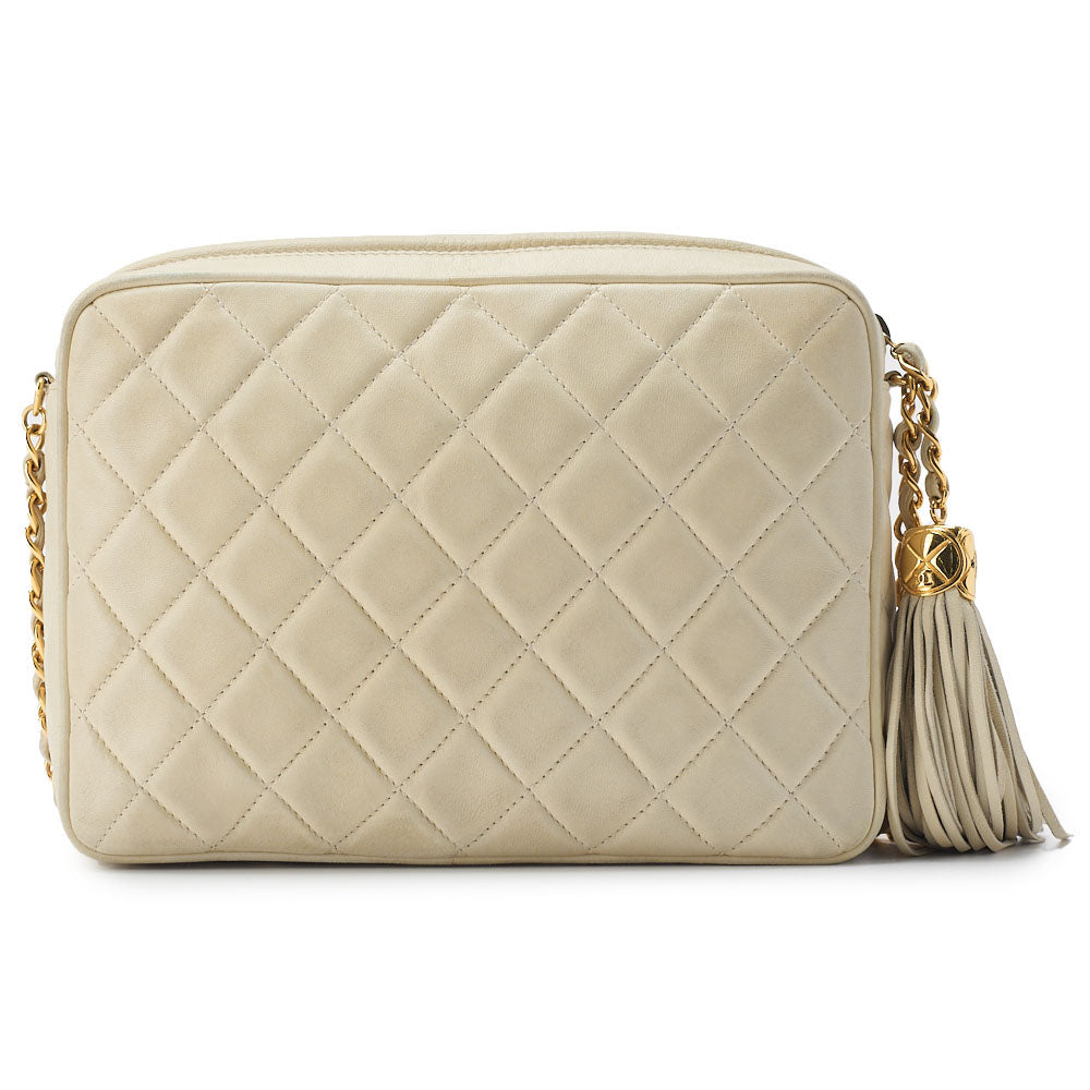 Sac bandoulière d'occasion, matelassé, bandoulière chaîne à franges, cuir d'agneau, ivoire, finitions dorées, d'occasion