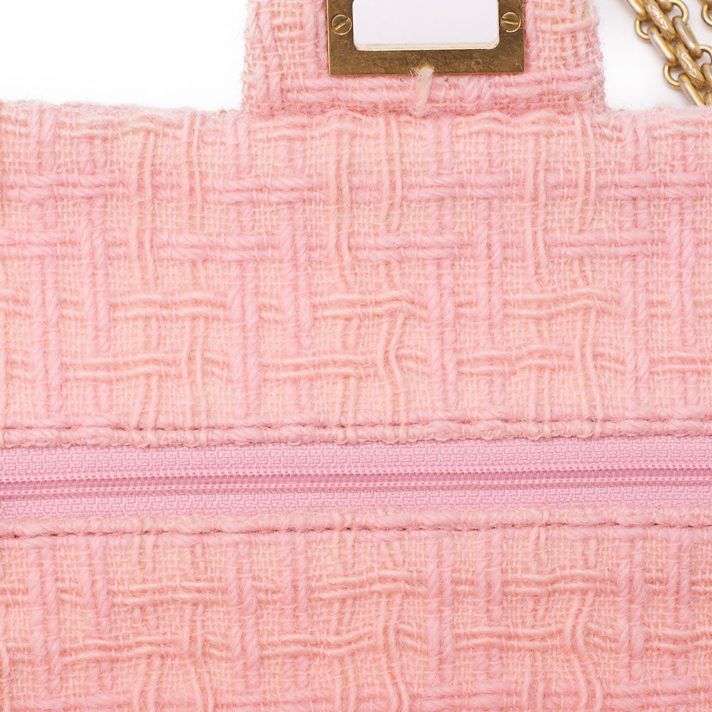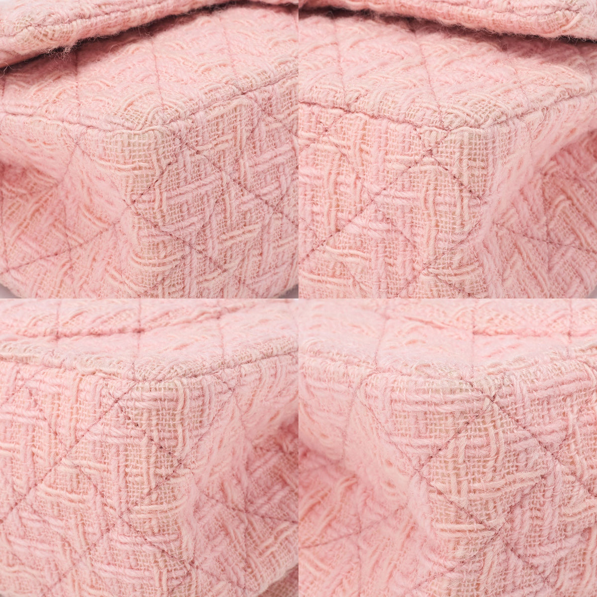 Sac bandoulière d'occasion, matelassé, double rabat, jersey, rose, finitions dorées, d'occasion