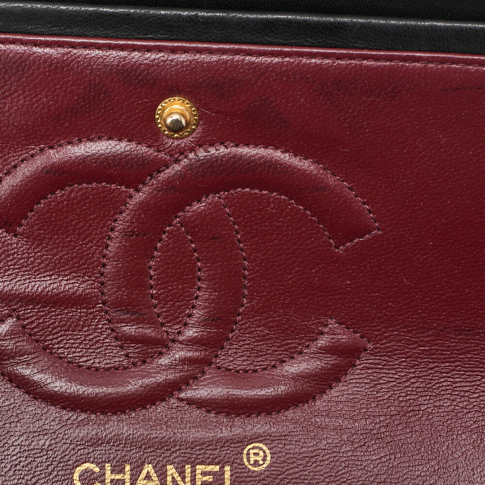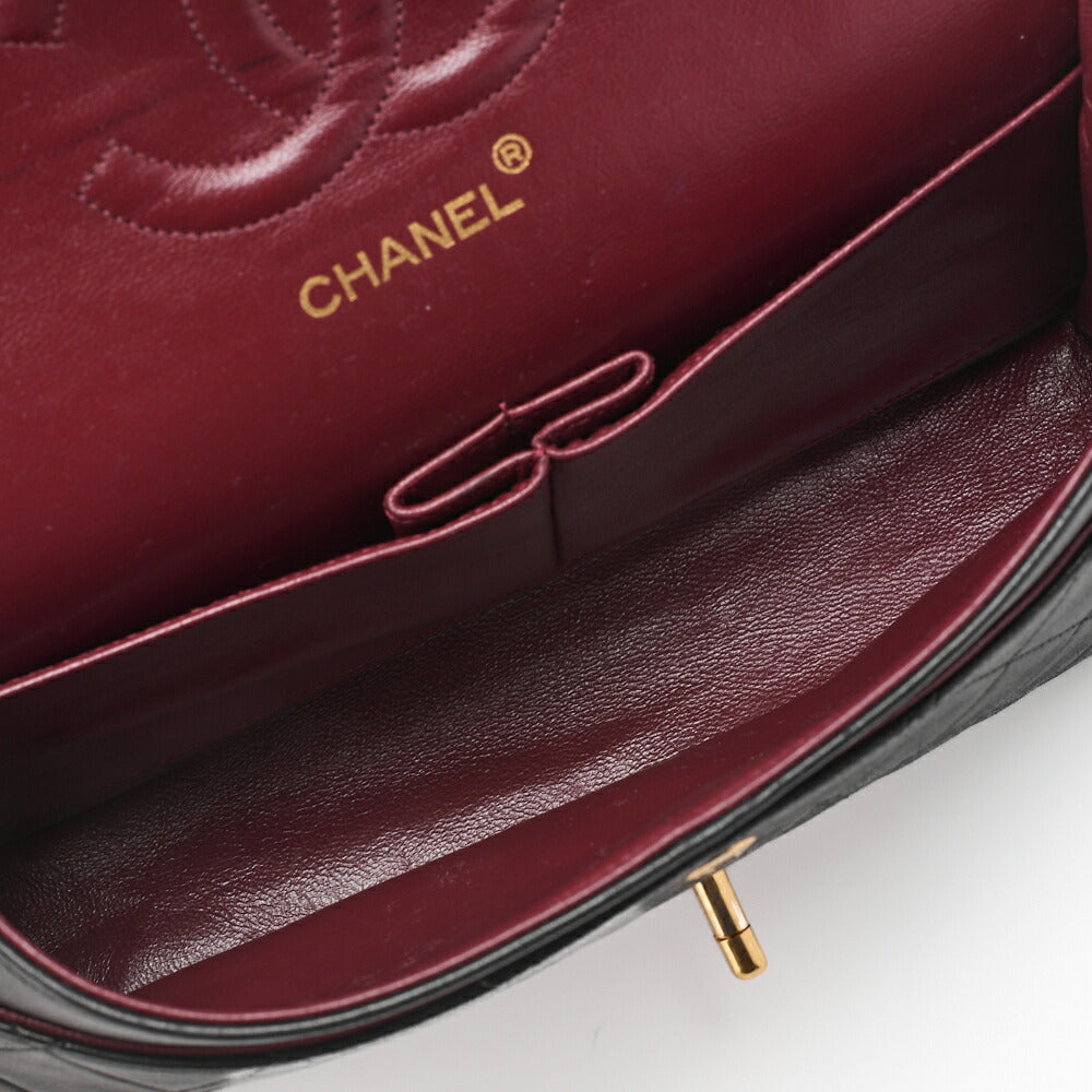 Sublimez votre style avec le superbe sac bandoulière chaîne CHANEL Matelasse Double Flap 25 cm en luxueux cuir d'agneau. Ce superbe sac noir, orné d'élégantes finitions dorées, est un accessoire intemporel qui incarne l'essence même du raffinement et de l'élégance.