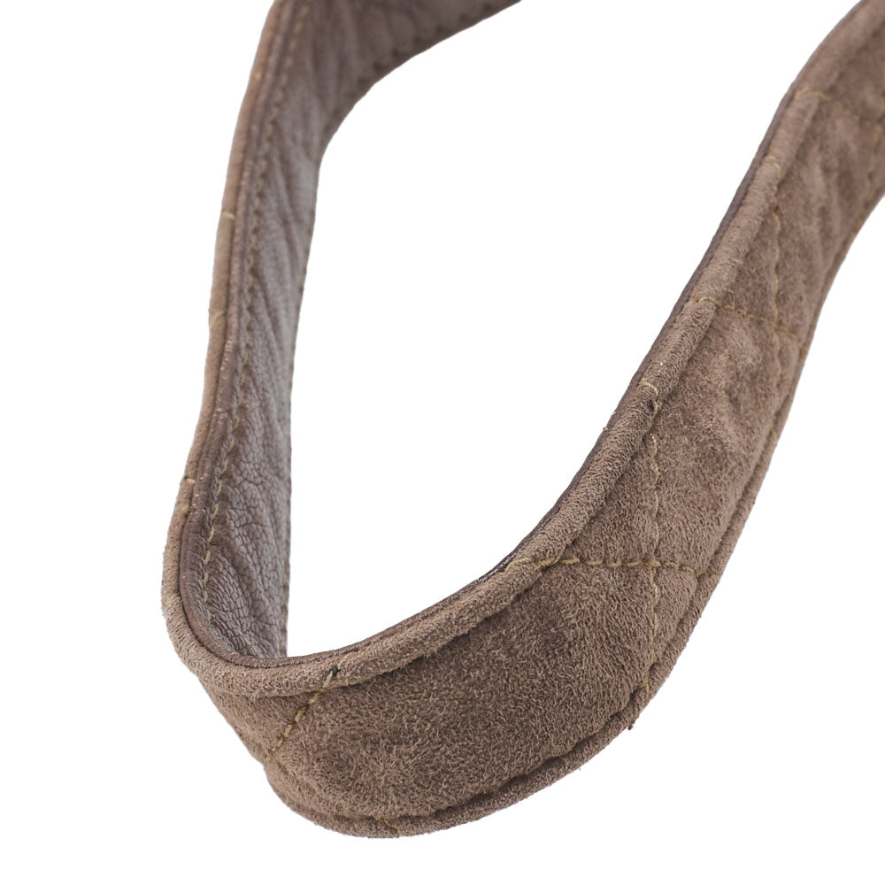 Sac bandoulière d'occasion, matelassé, franges, daim, gris beige, finitions dorées, d'occasion