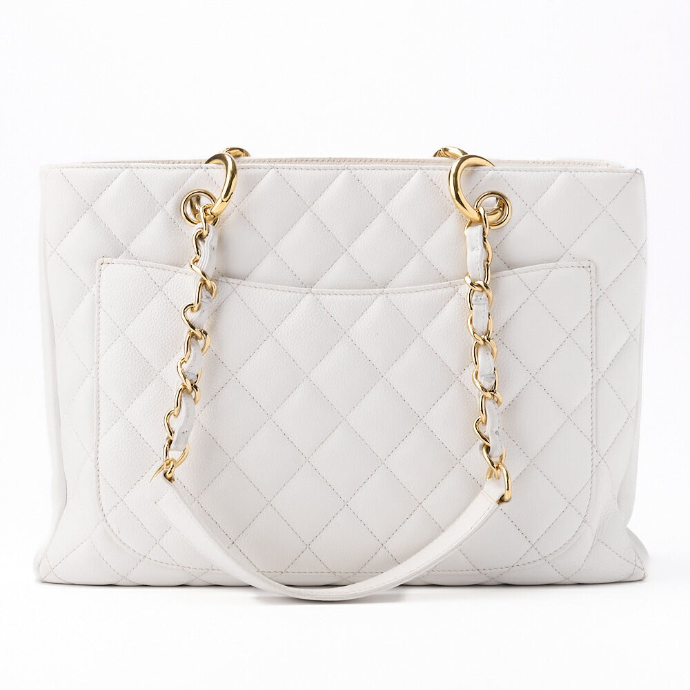 Sublimez votre style avec le superbe sac bandoulière double chaîne Chanel Matelasse GST Coco Mark , confectionné en cuir caviar luxueux dans une élégante teinte blanche rehaussée de superbes finitions argentées. Ce mini sac bandoulière n'est pas seulement un accessoire de mode ; c'est une pièce maîtresse qui incarne la sophistication intemporelle de la marque CHANEL.