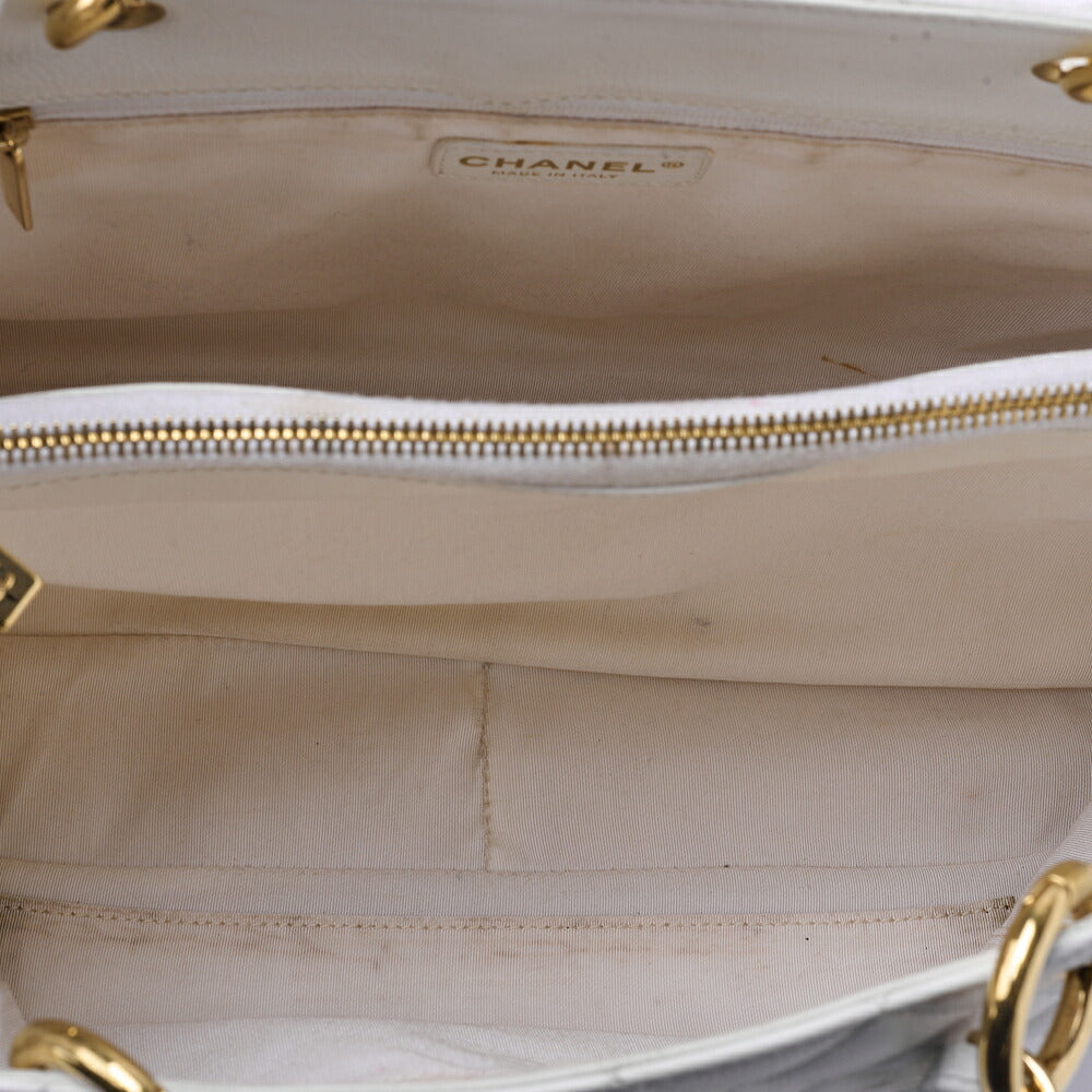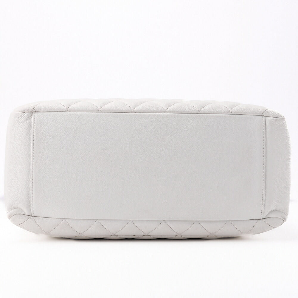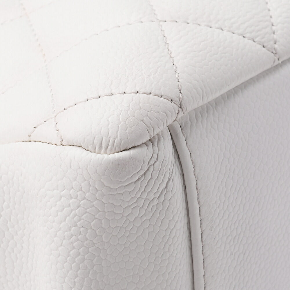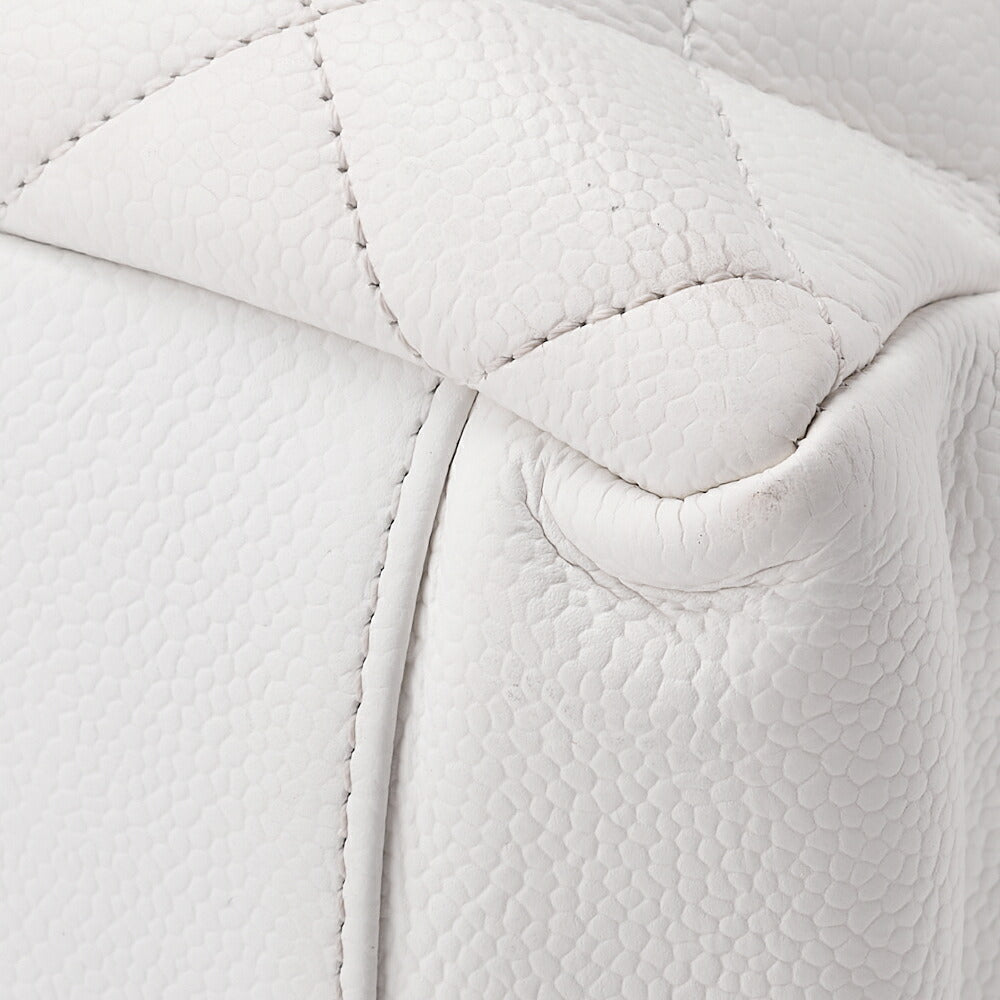 Sac bandoulière d'occasion, matelassé, Coco Mark, cuir caviar, blanc, finitions argentées, d'occasion