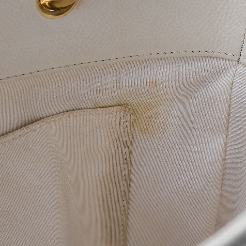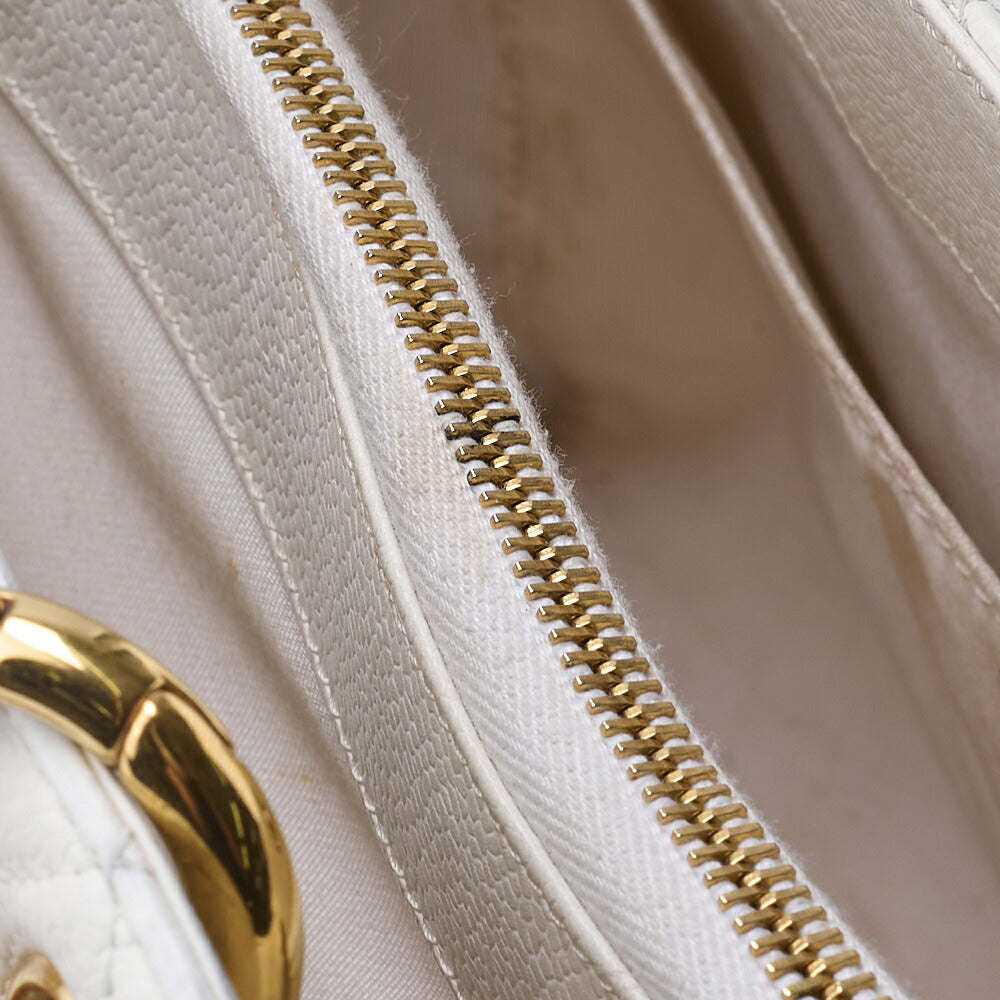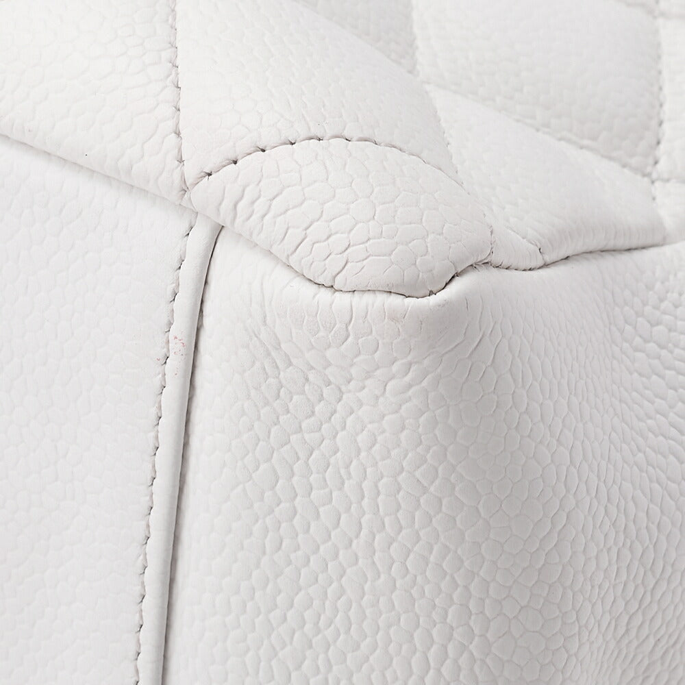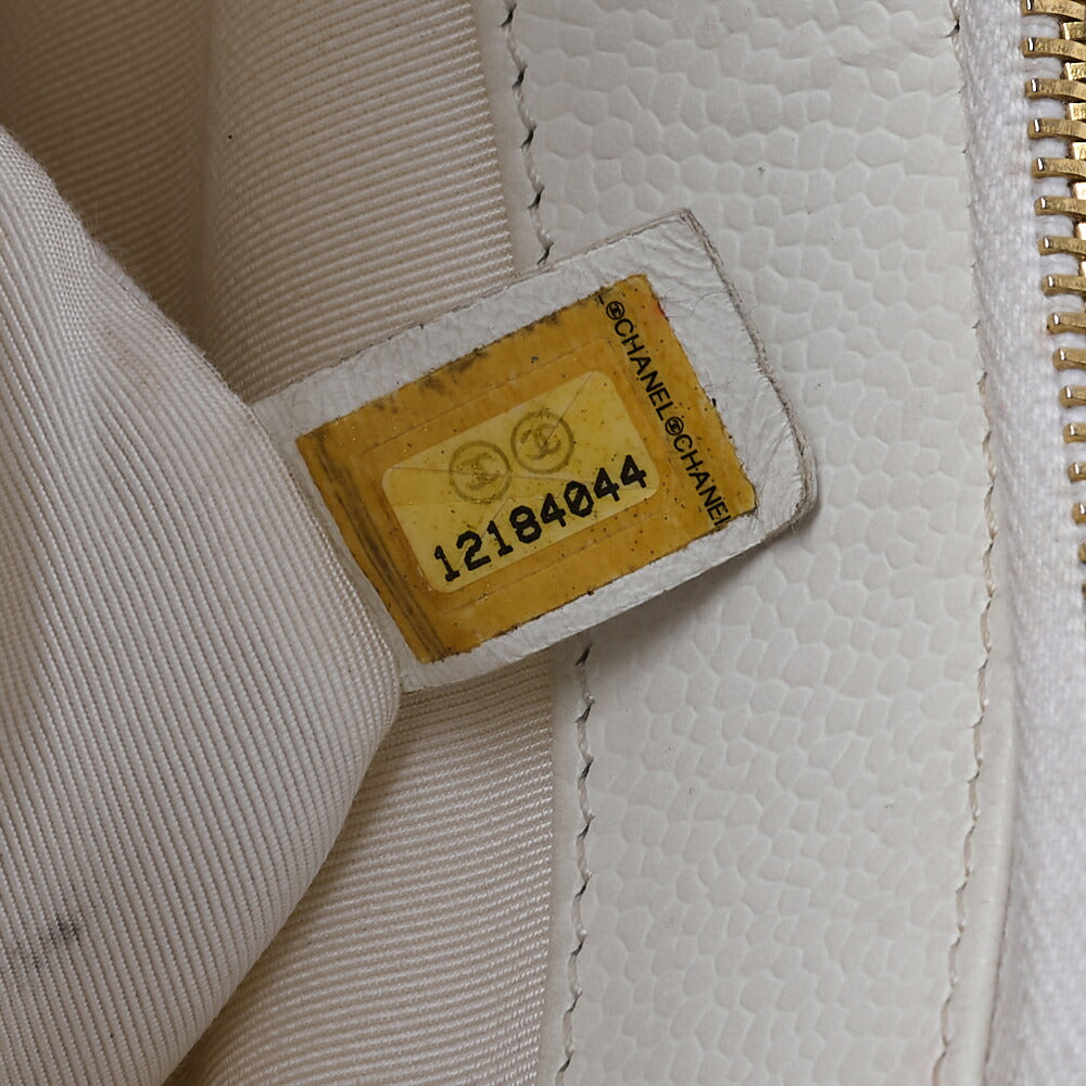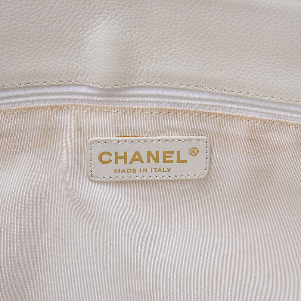 Sac bandoulière d'occasion, matelassé, Coco Mark, cuir caviar, blanc, finitions argentées, d'occasion
