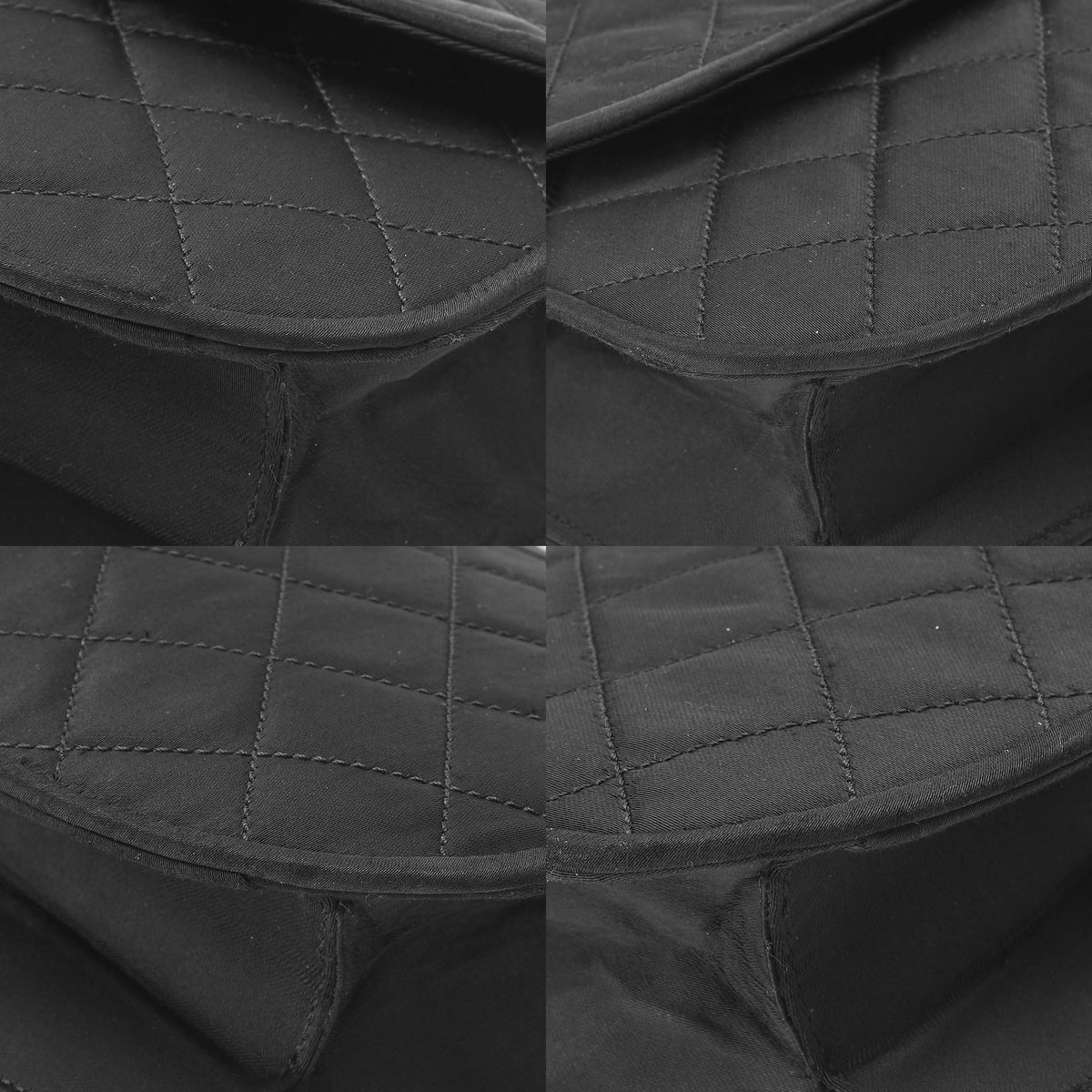 Sac bandoulière d'occasion, matelassé, bandoulière chaîne, satin, noir, finitions dorées, d'occasion