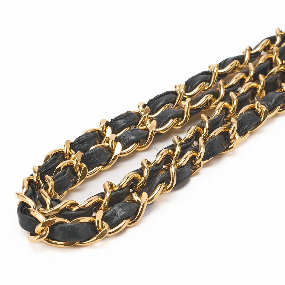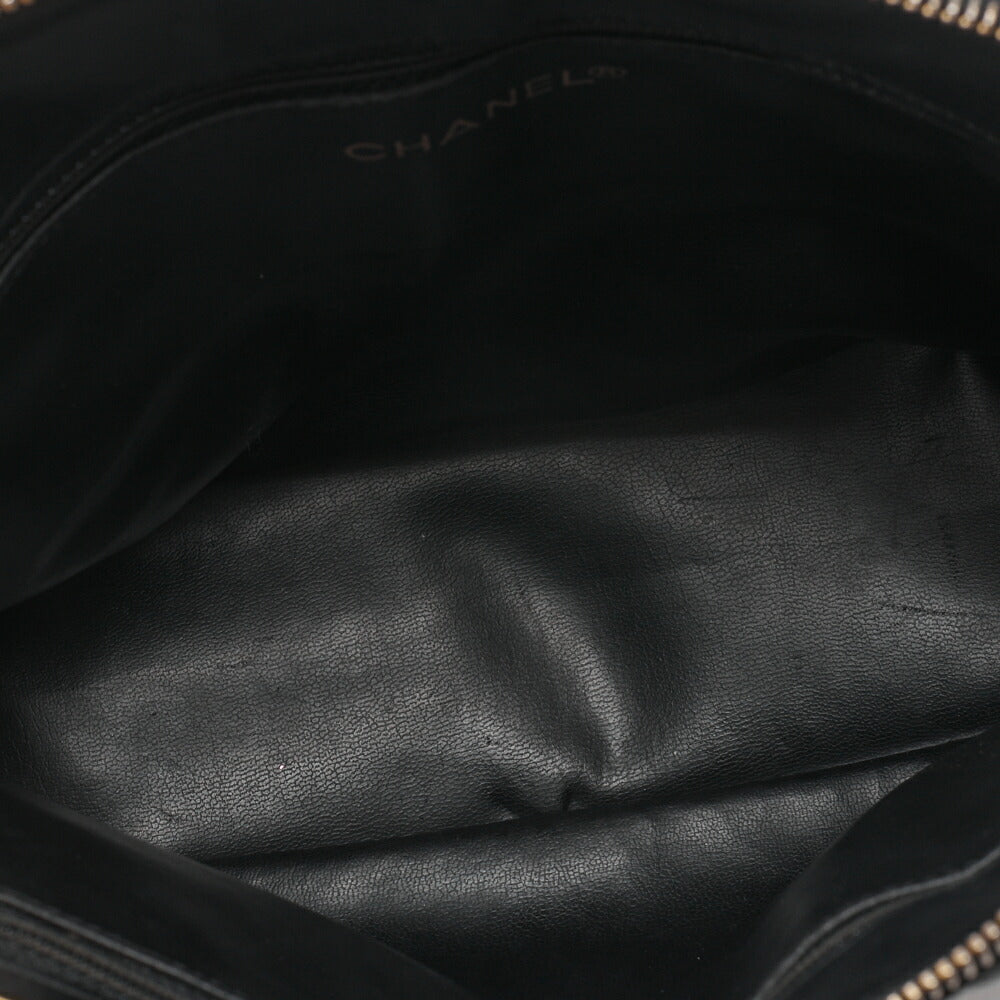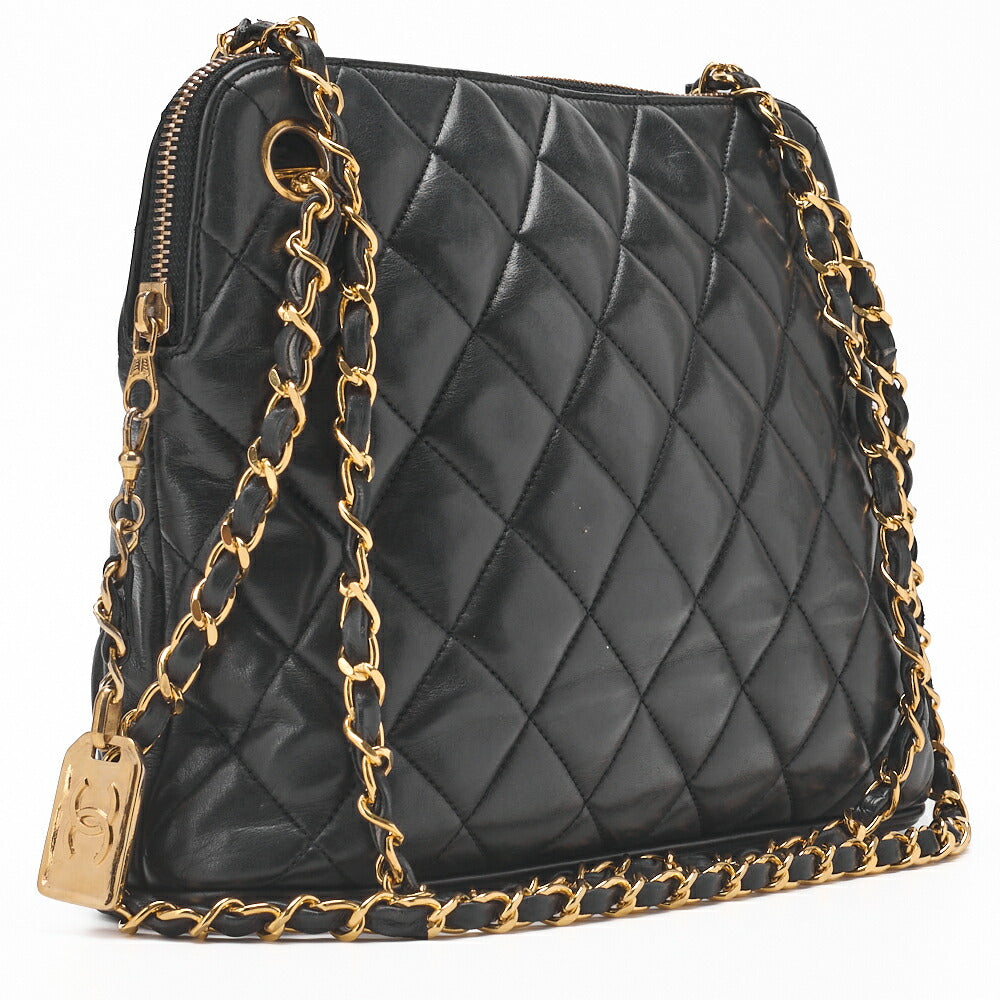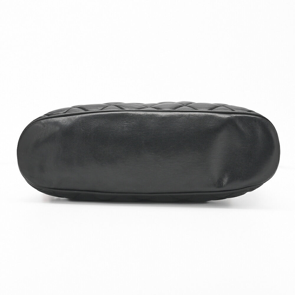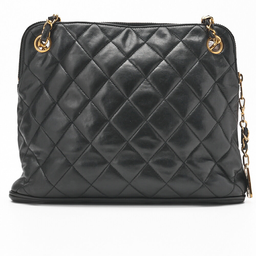 Sac à bandoulière matelassé d'occasion avec breloque en cuir d'agneau noir et finitions dorées.