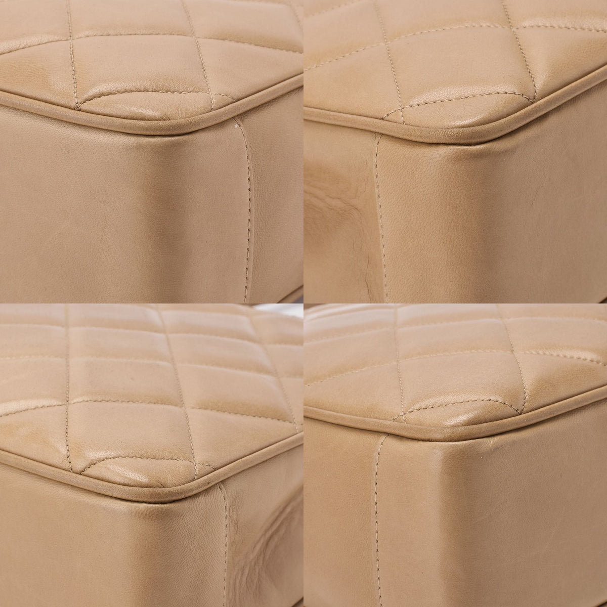 Sac à main d'occasion matelassé avec fermoir tournant en cuir d'agneau beige et matériel doré. D'occasion