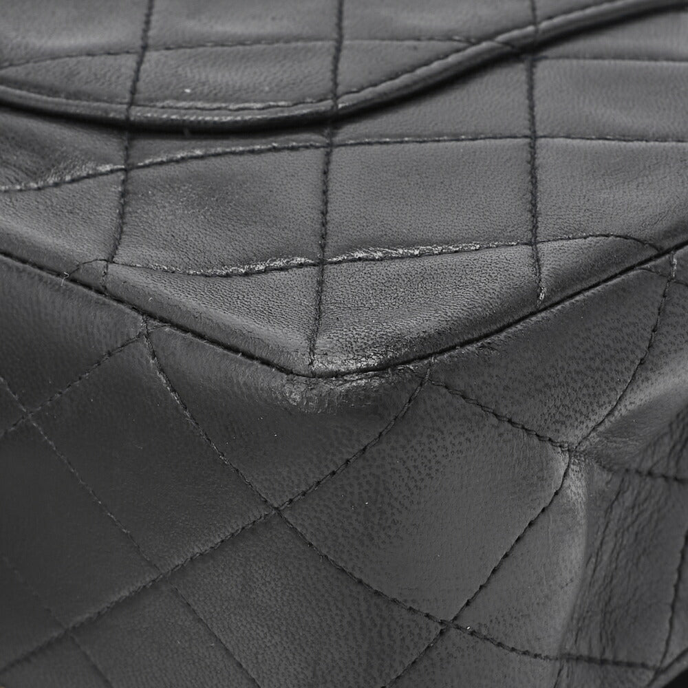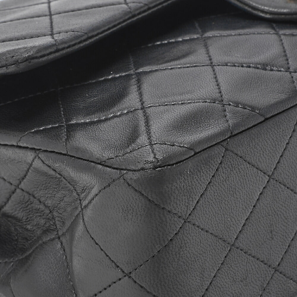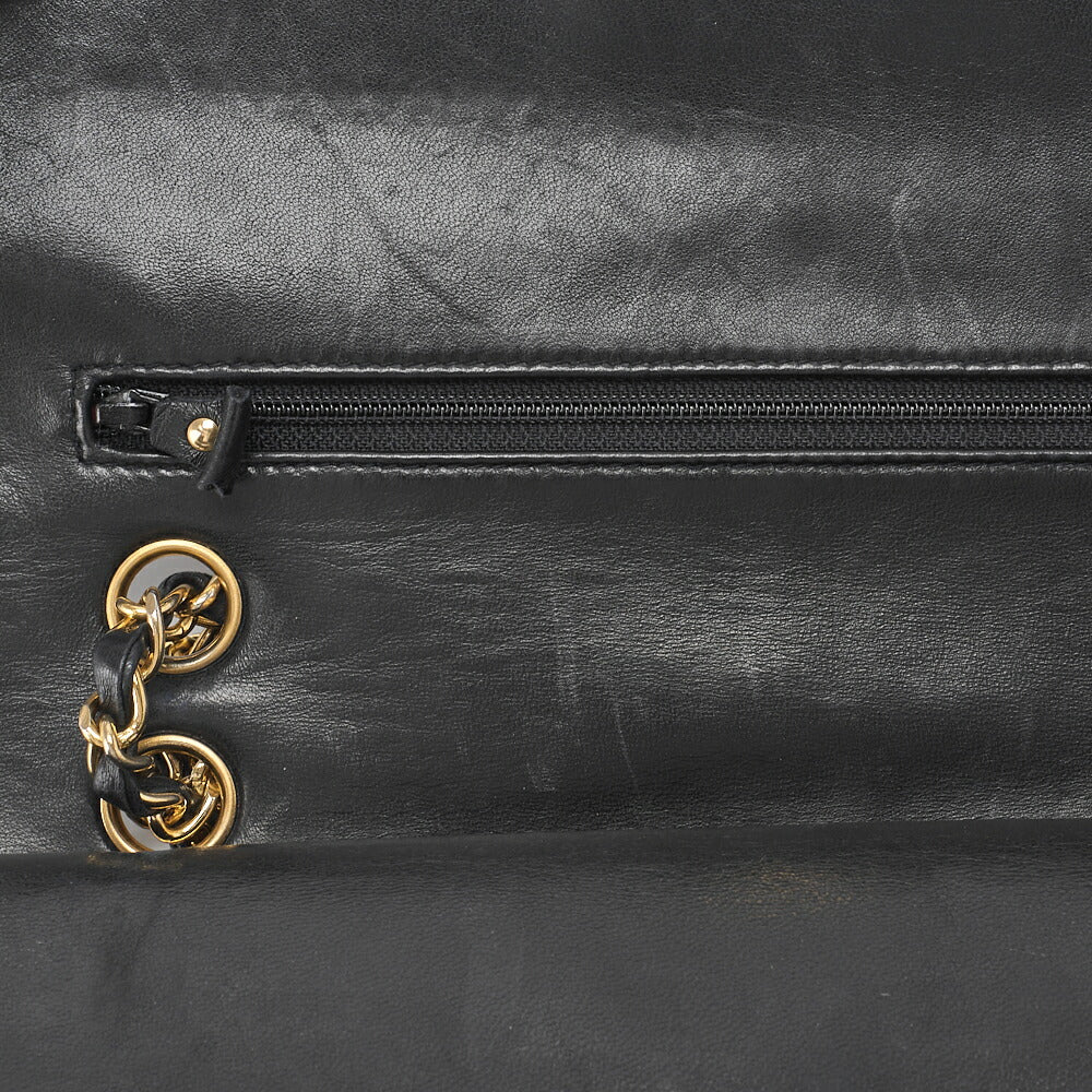 Sac bandoulière d'occasion, matelassé, fermoir tournant, cuir d'agneau, noir, finitions dorées, d'occasion