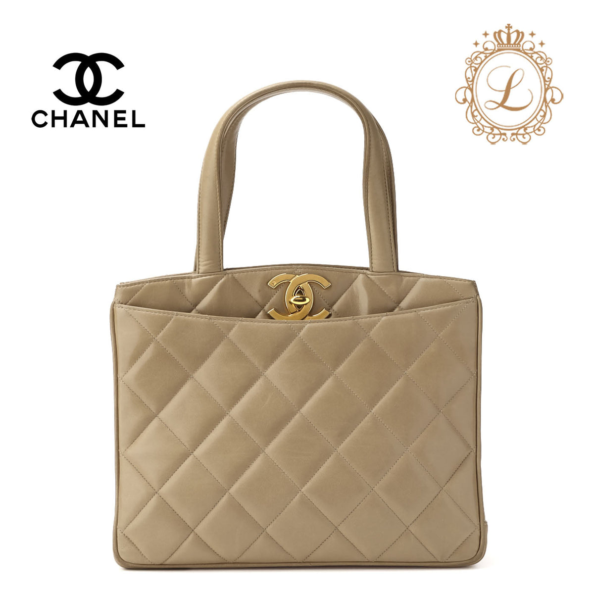Découvrez l'élégance et le luxe du sac à main Chanel Matelasse Turn Lock Upper Coco Mark, confectionné en somptueux cuir d'agneau beige raffiné et orné de magnifiques finitions dorées. Ce superbe sac à main pour femme est plus qu'un simple accessoire de mode, c'est aussi un accessoire polyvalent qui complètera toutes vos tenues.