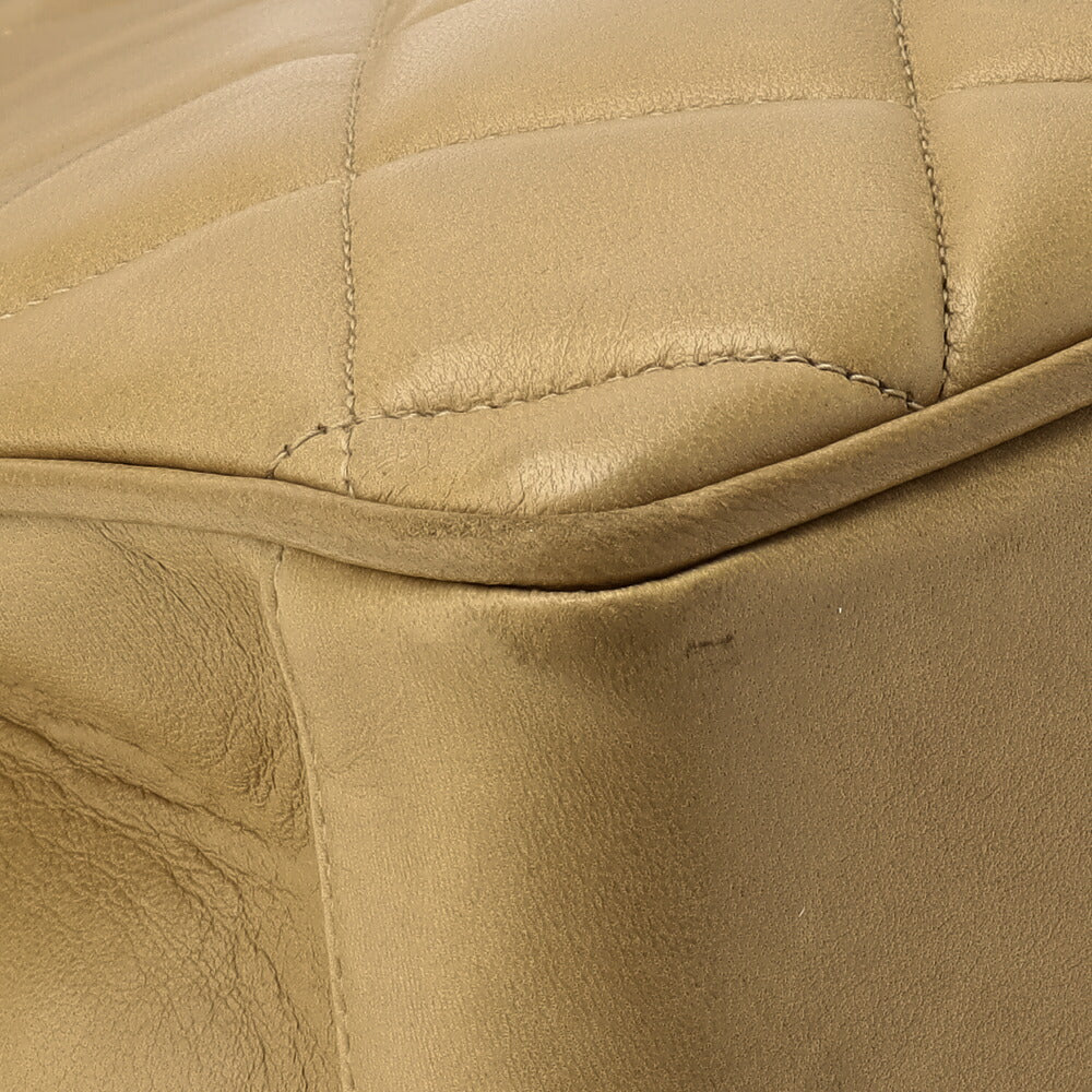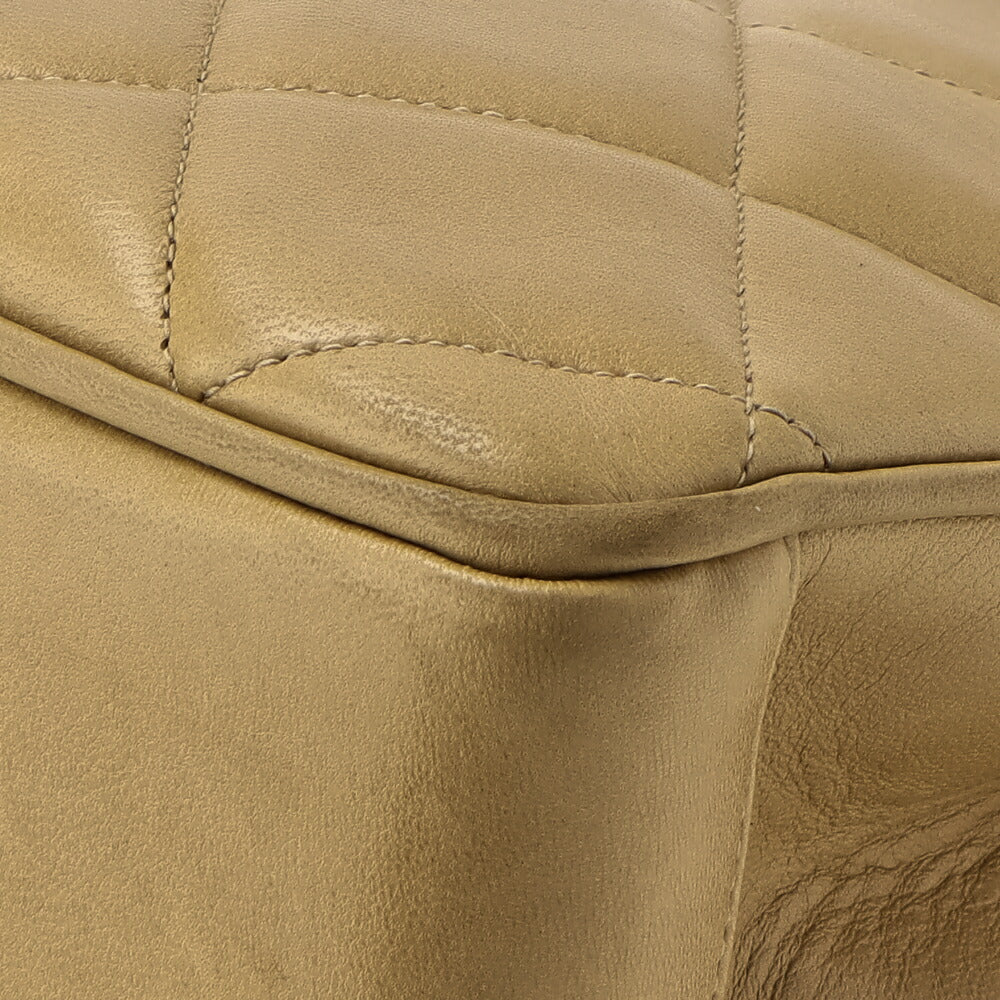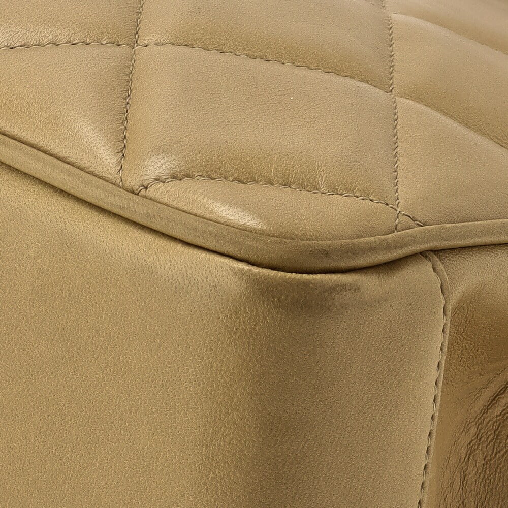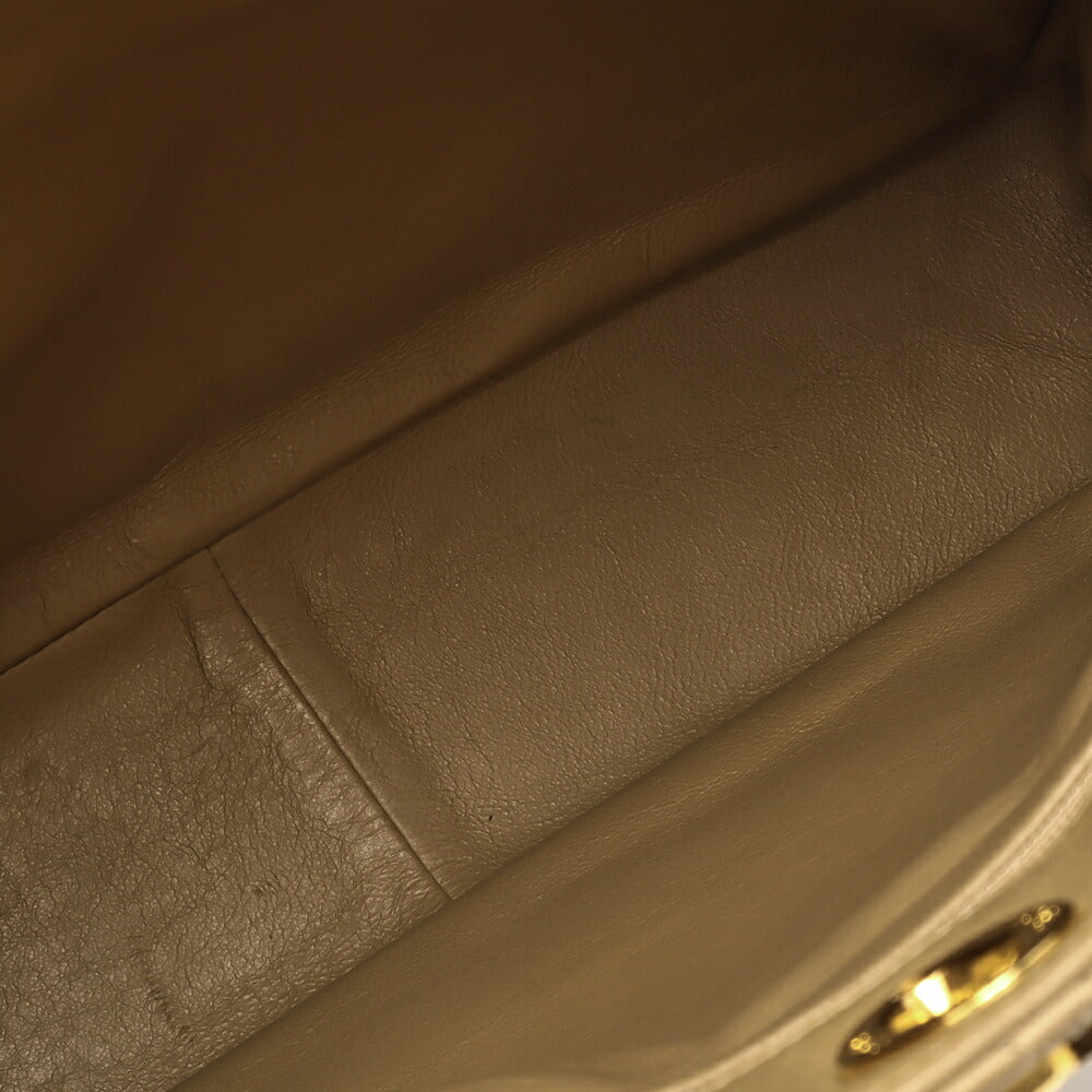 Sac à main d'occasion matelassé avec fermoir tournant en cuir d'agneau beige et matériel doré. D'occasion