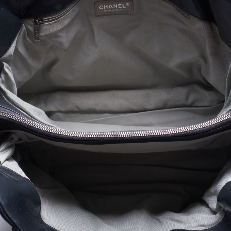 Sac bandoulière matelassé Coco Charm, cuir de veau, gris, finitions argentées, d'occasion