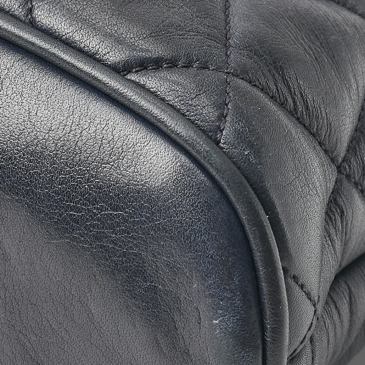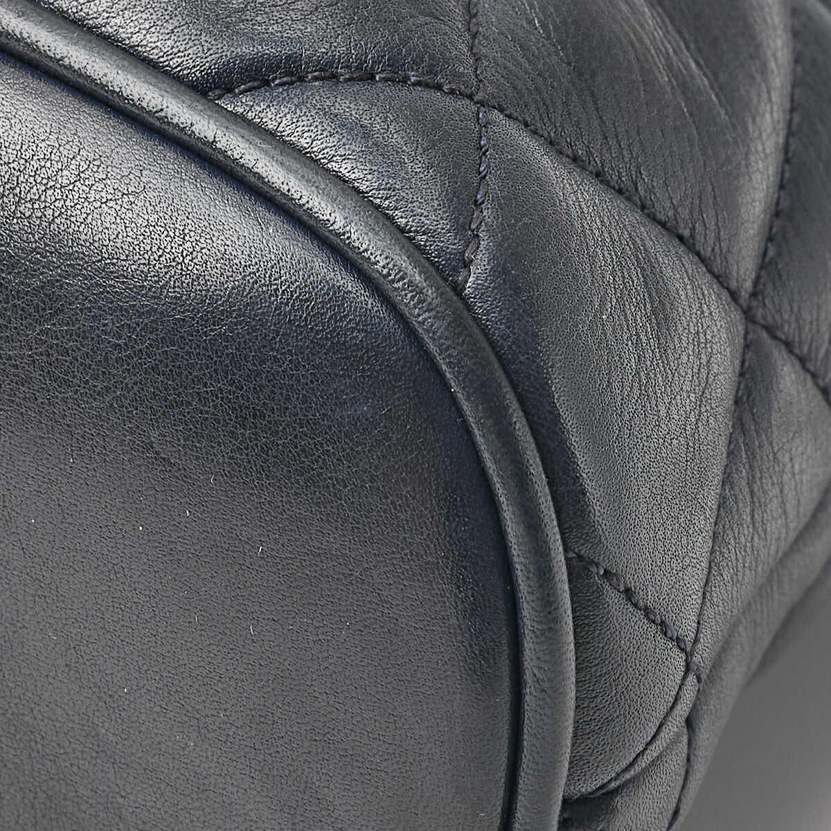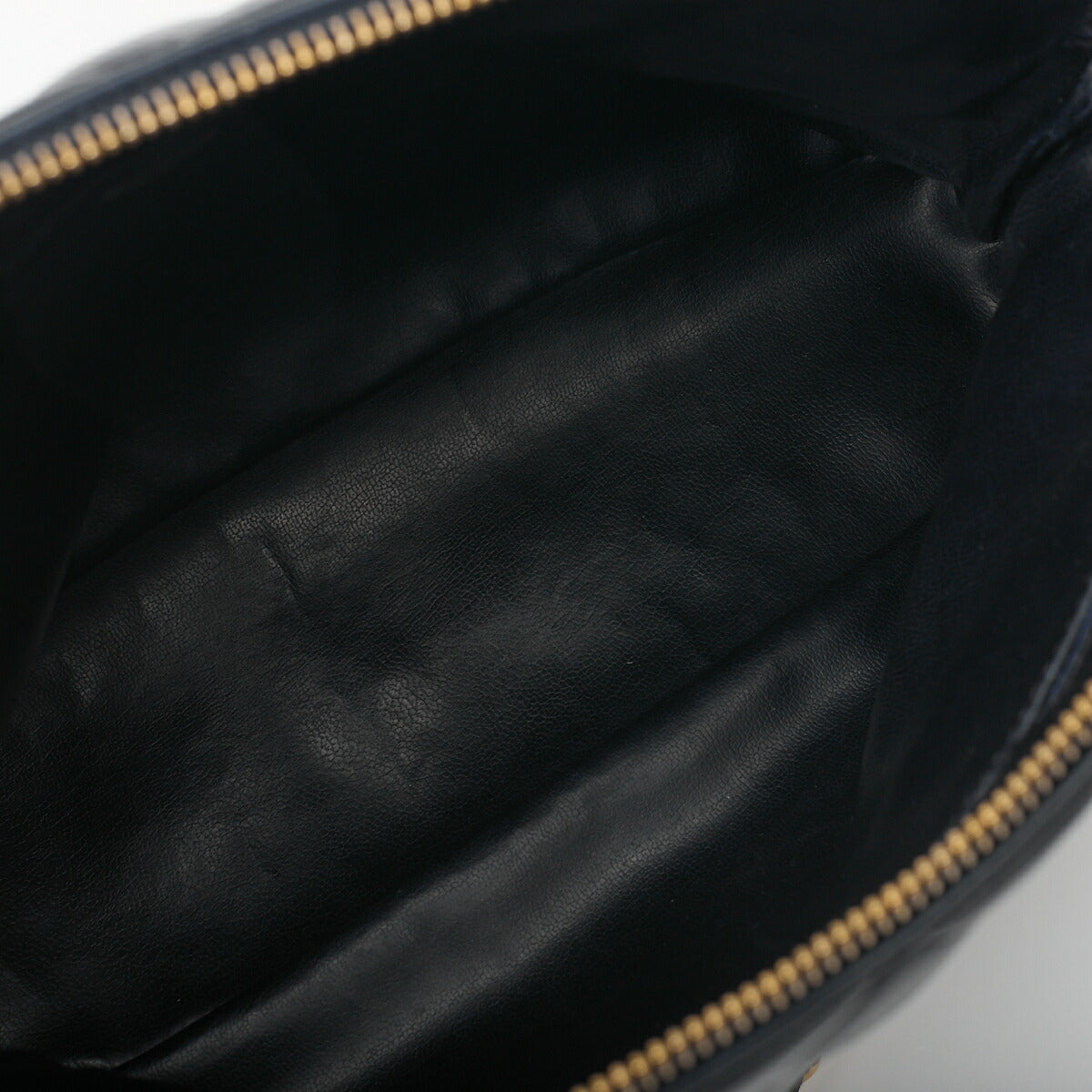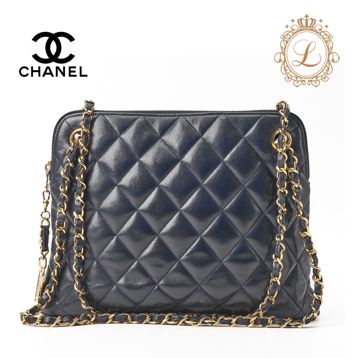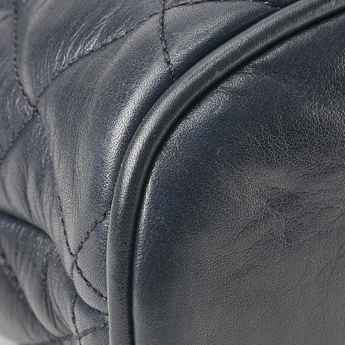 Sac bandoulière d'occasion, matelassé, cuir d'agneau, bleu marine, finitions dorées.