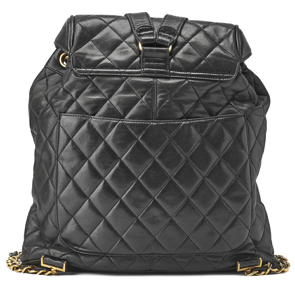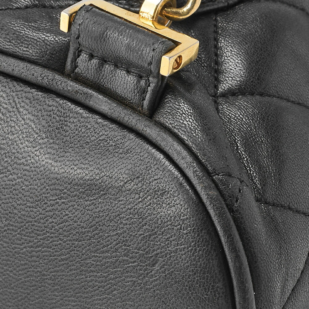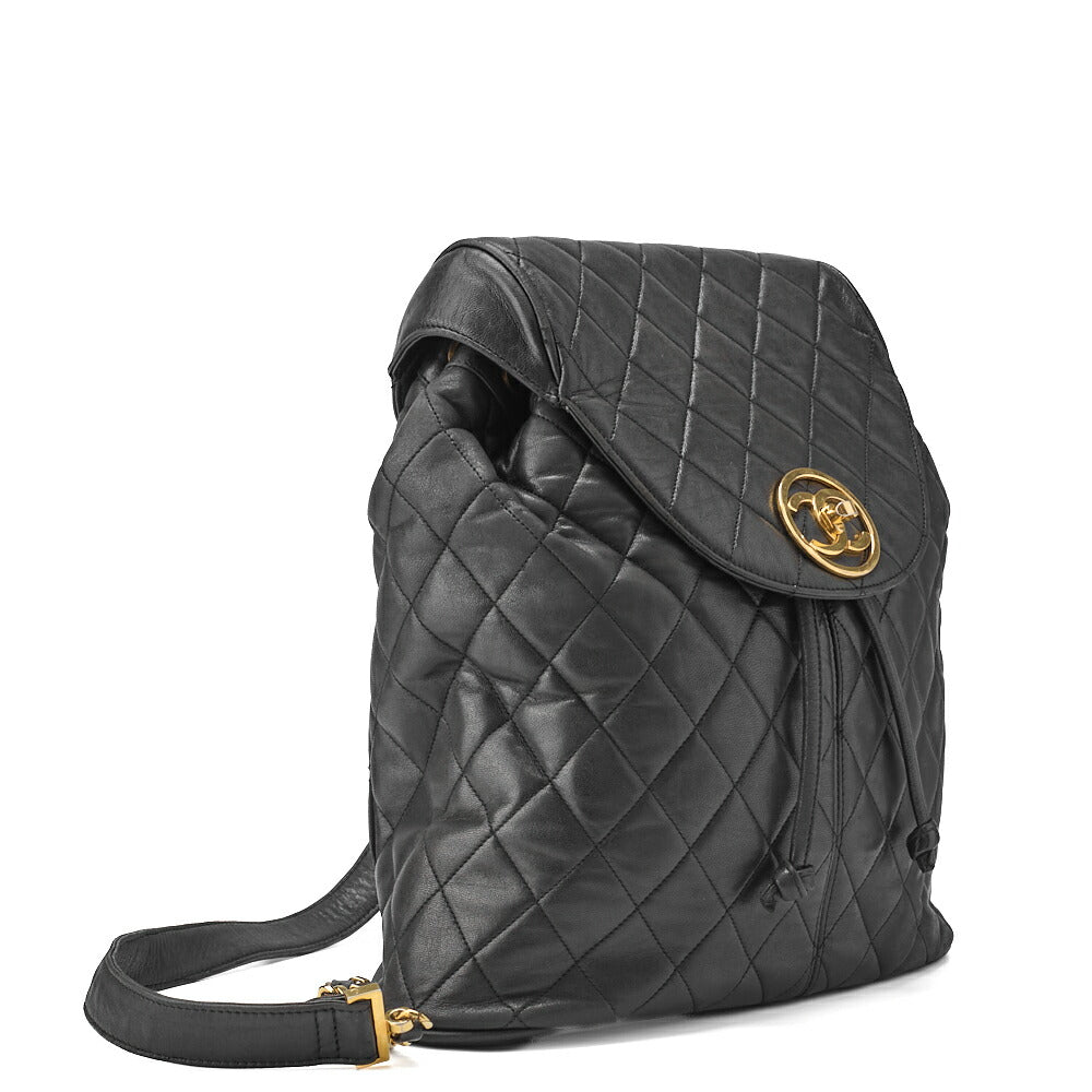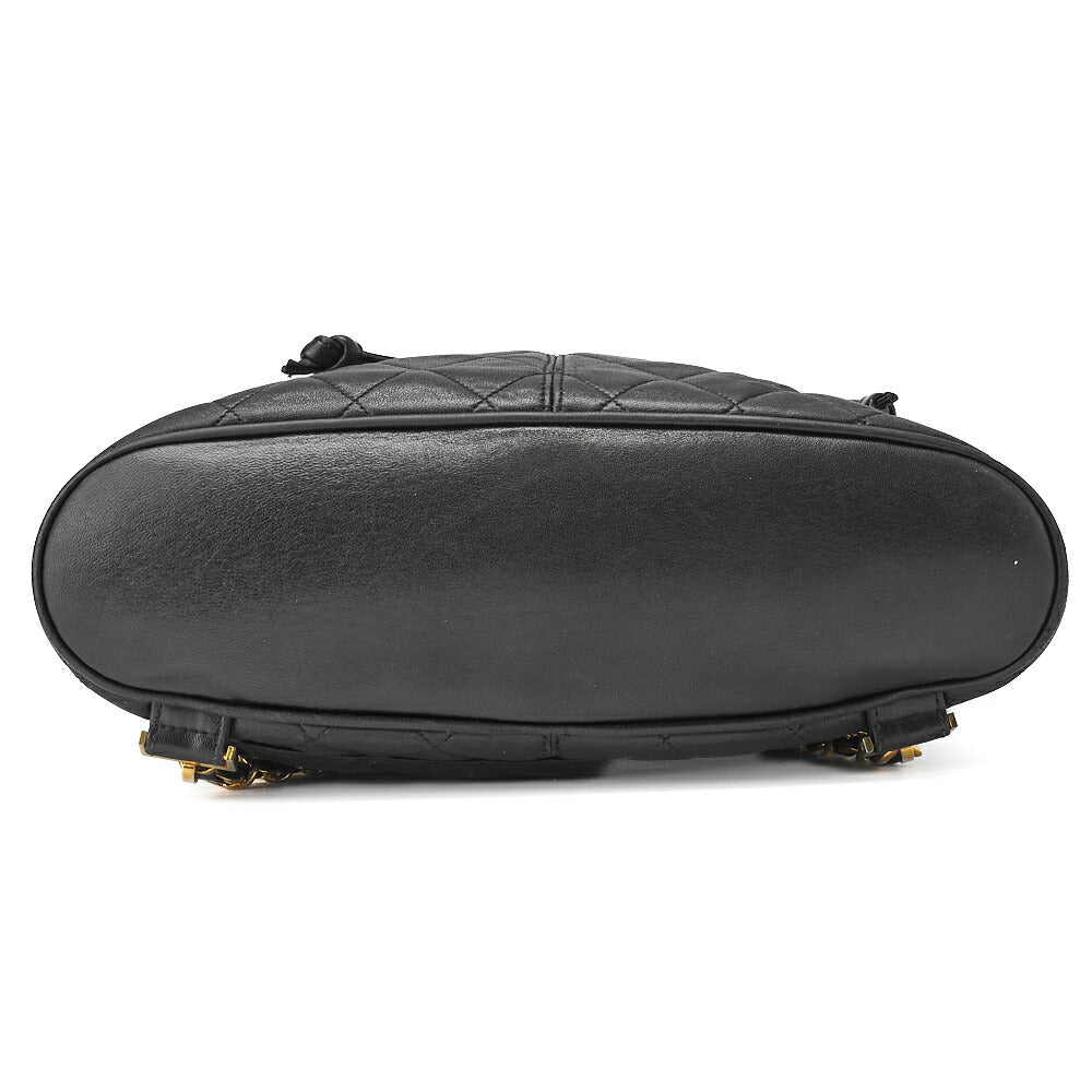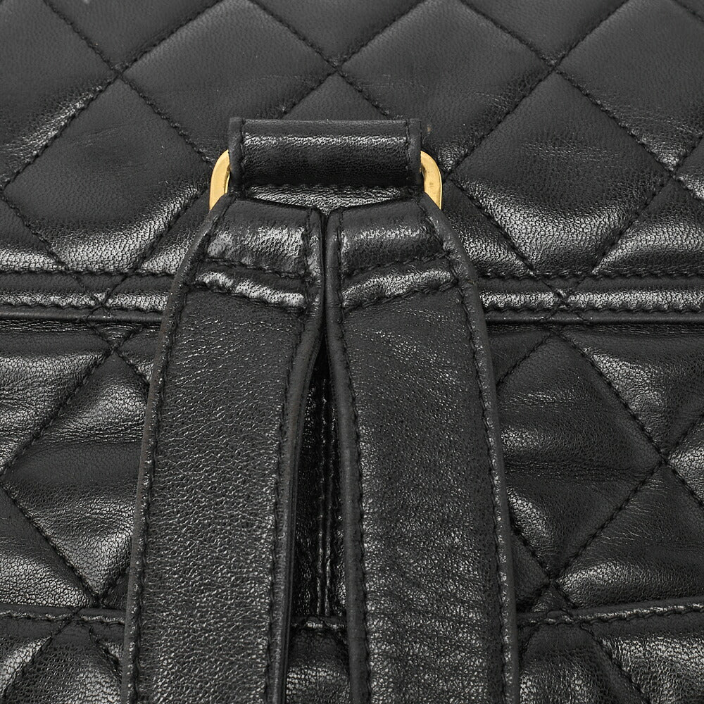 Sac à dos d'occasion en cuir d'agneau matelassé noir et métal doré