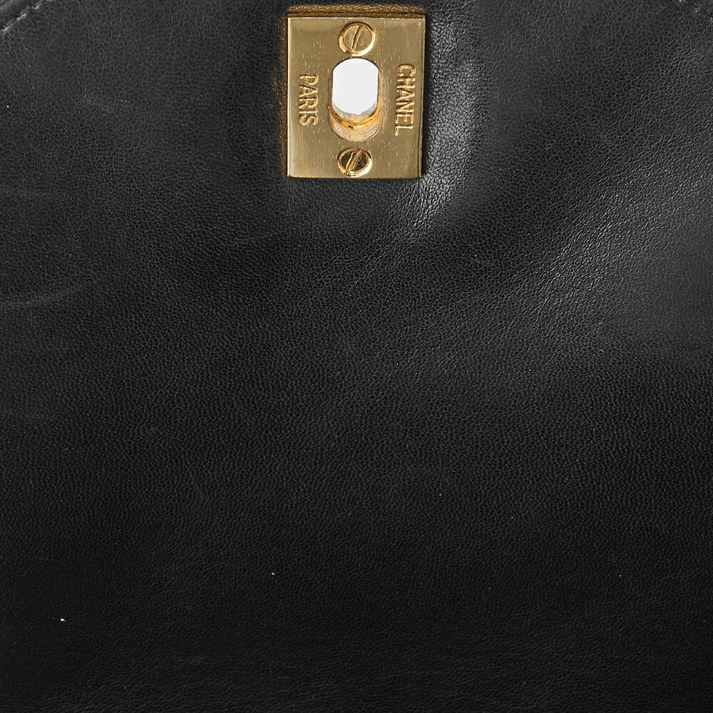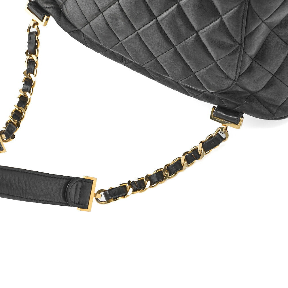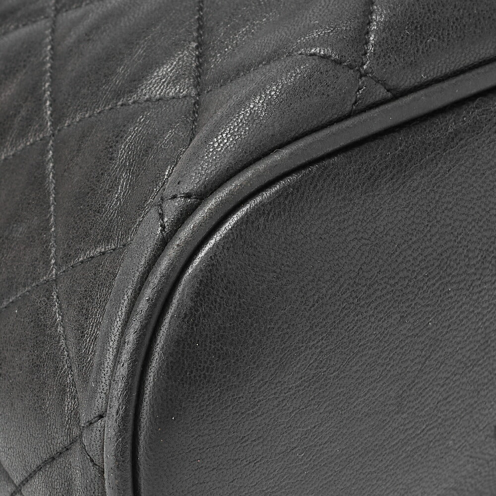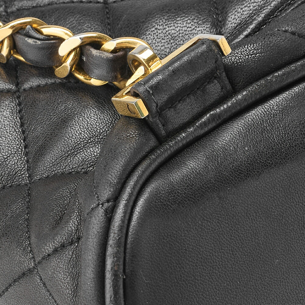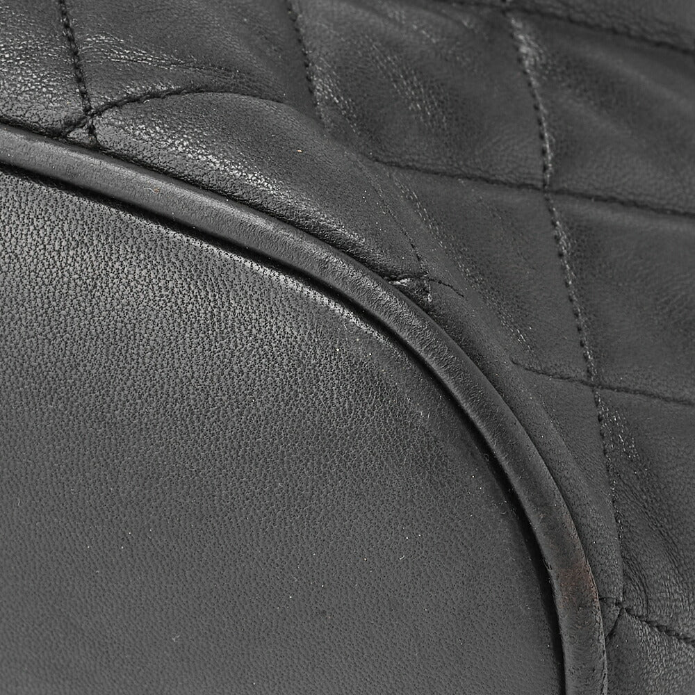 Sac à dos d'occasion en cuir d'agneau matelassé noir et métal doré