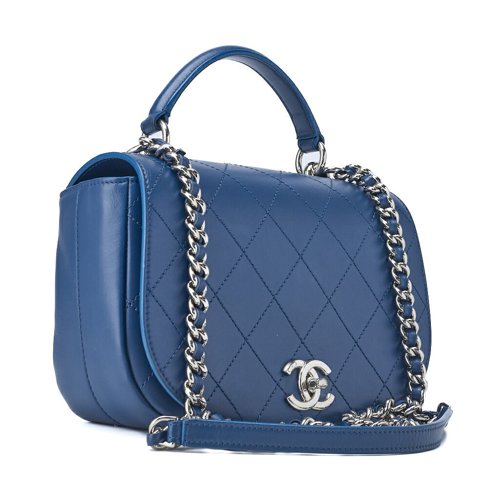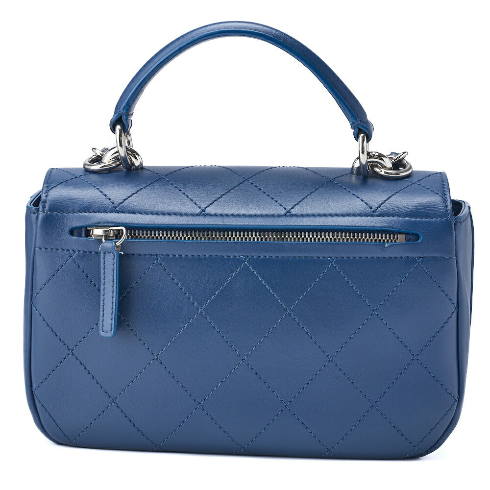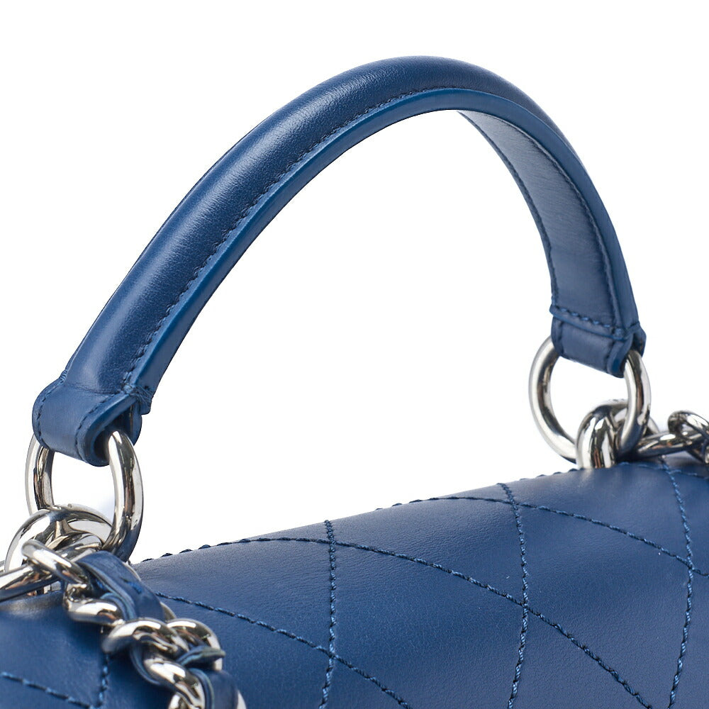 Sac à main Coco 2WAY matelassé en cuir de veau bleu marine, accessoire argenté, d'occasion