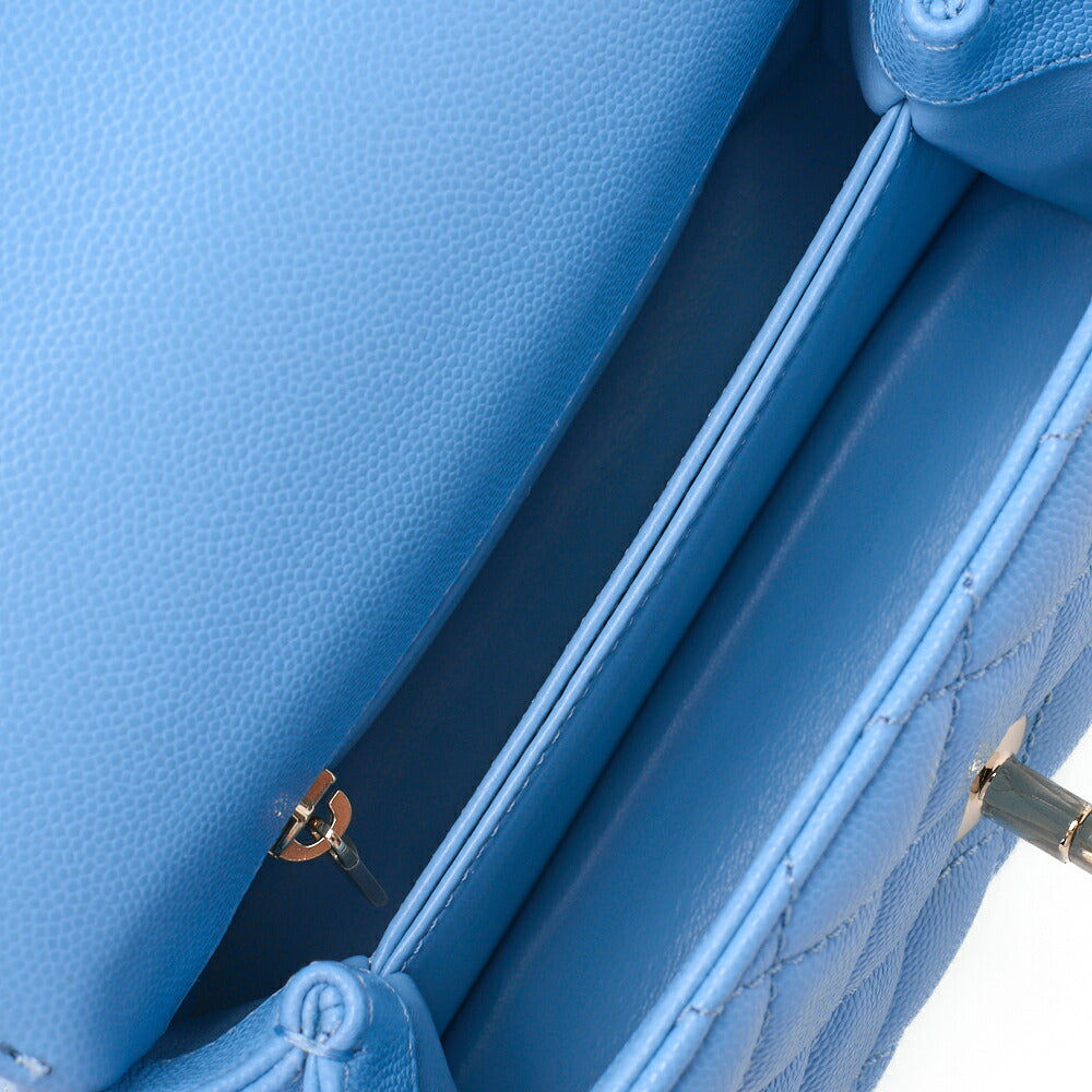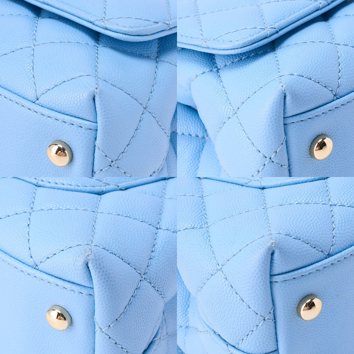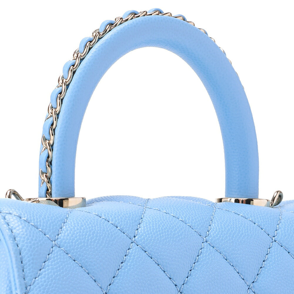 Pre-Owned Shoulder Bag Handbag Matelassé Coco Handle 2WAY Caviar Skin Light Blue Gold-Tone Hardware, Pre-Owned