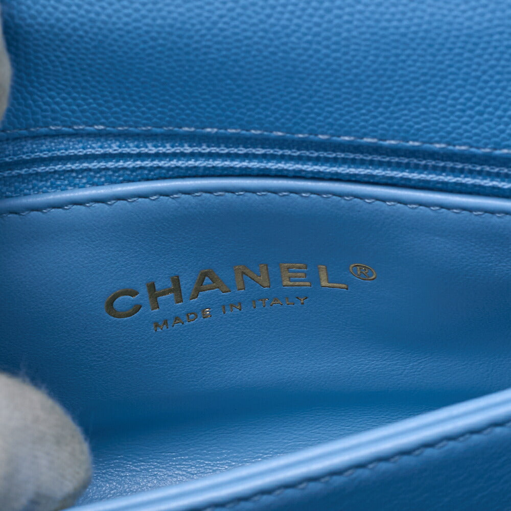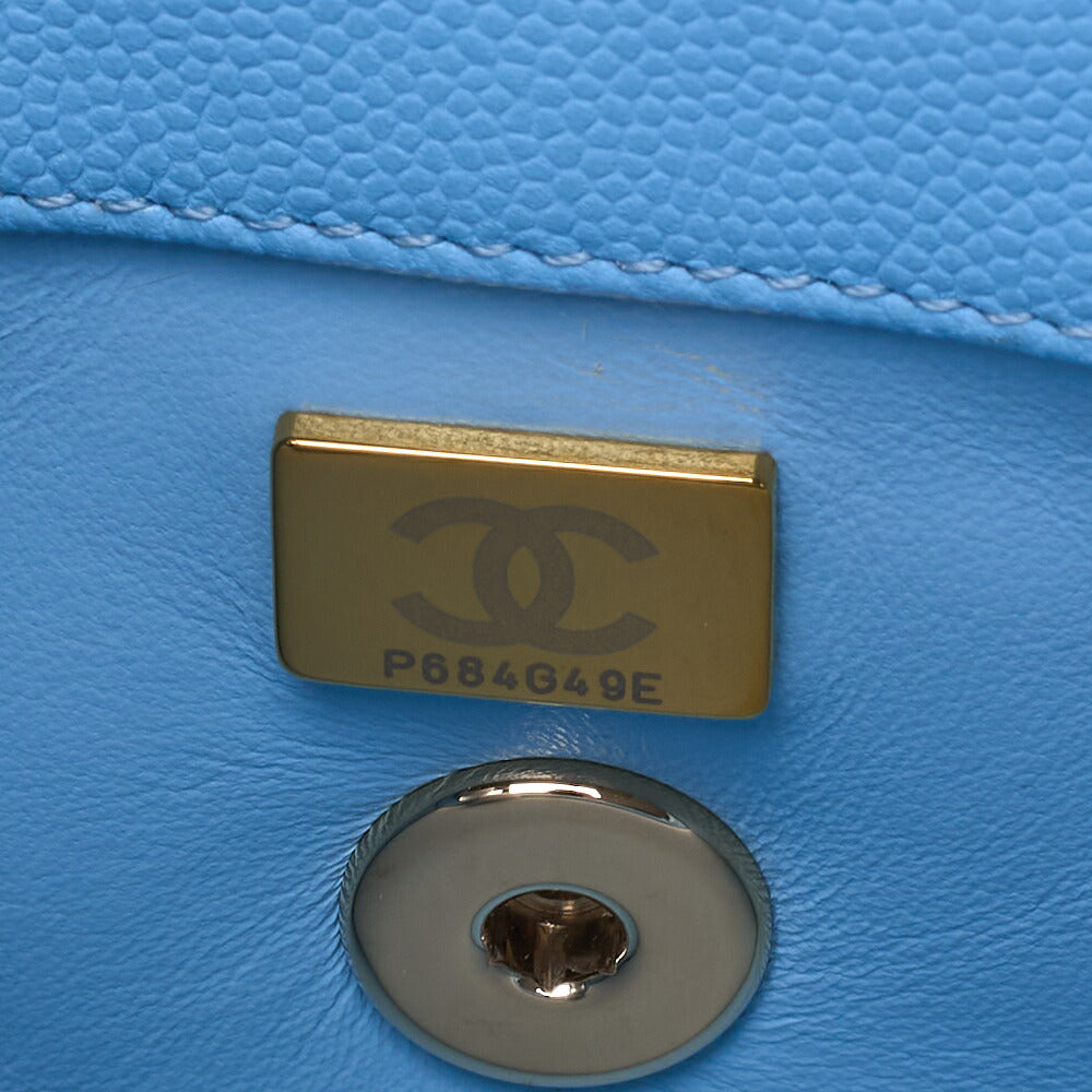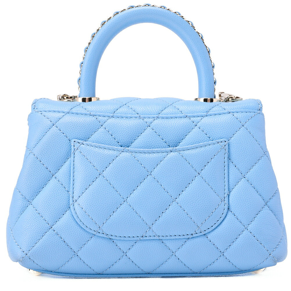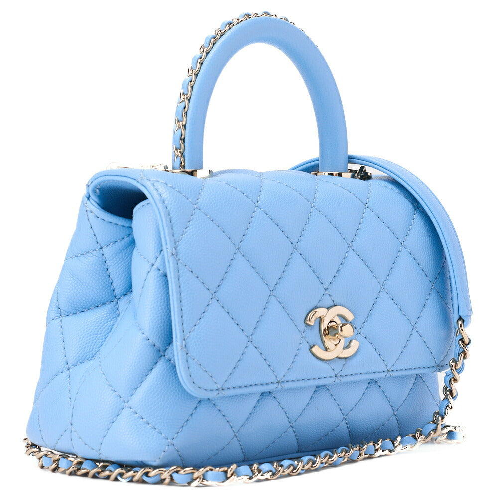 Pre-Owned Shoulder Bag Handbag Matelassé Coco Handle 2WAY Caviar Skin Light Blue Gold-Tone Hardware, Pre-Owned