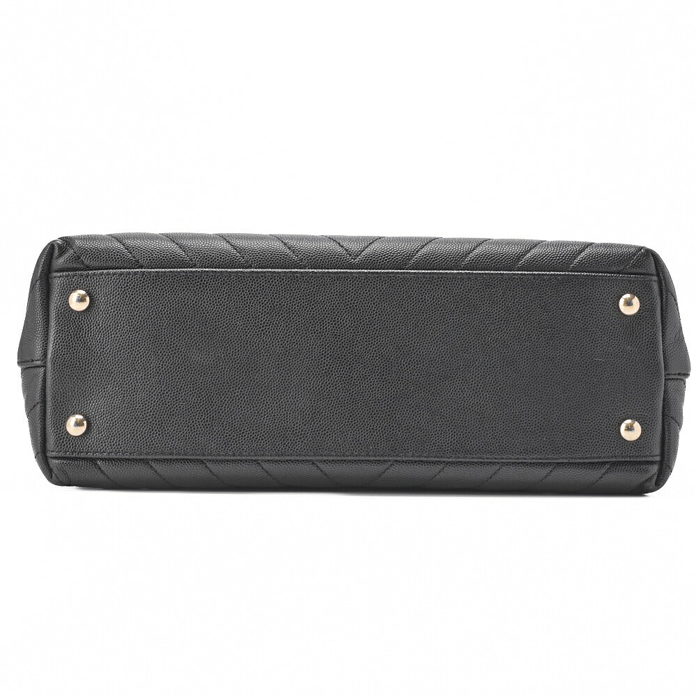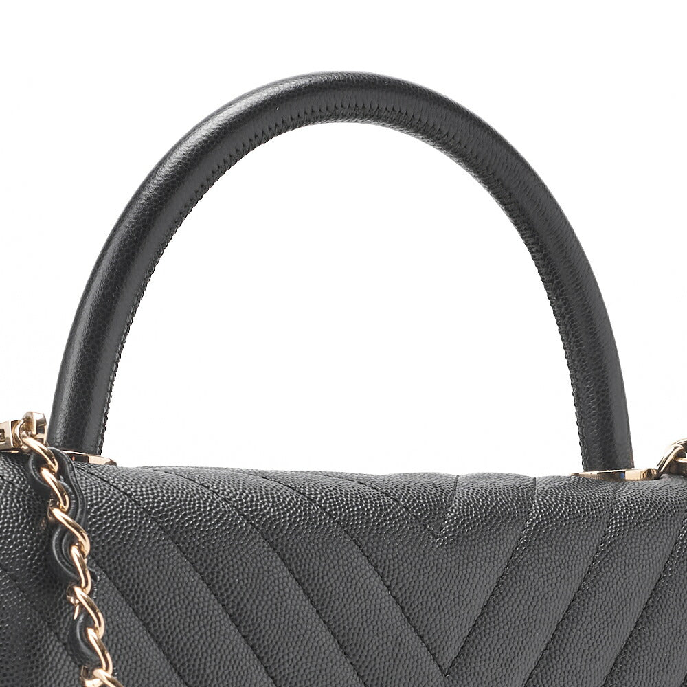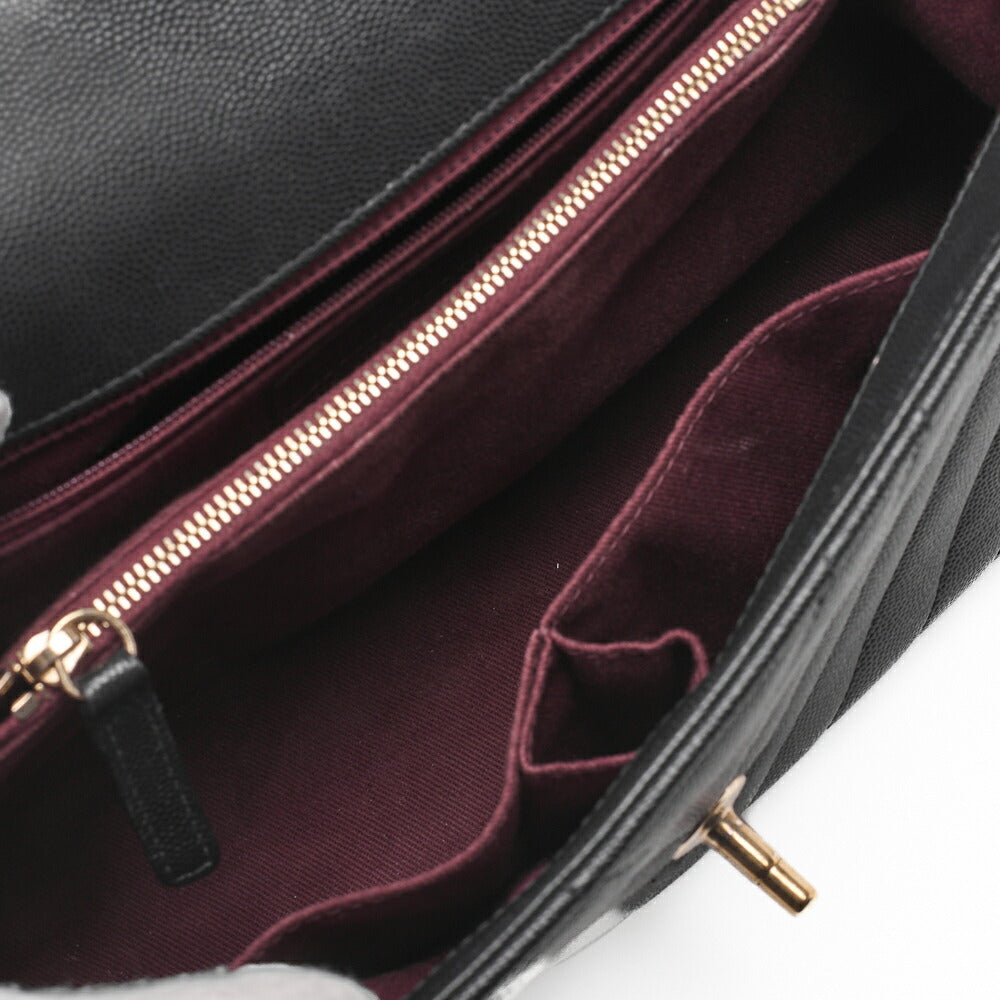 Sac à bandoulière d'occasion 2 voies avec couture en V et poignée en coco, cuir caviar noir et accessoires dorés.