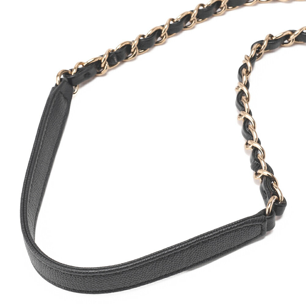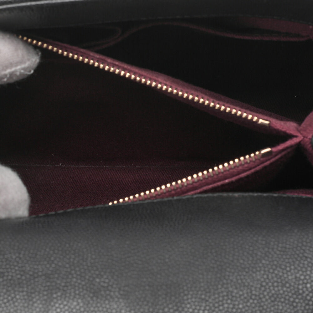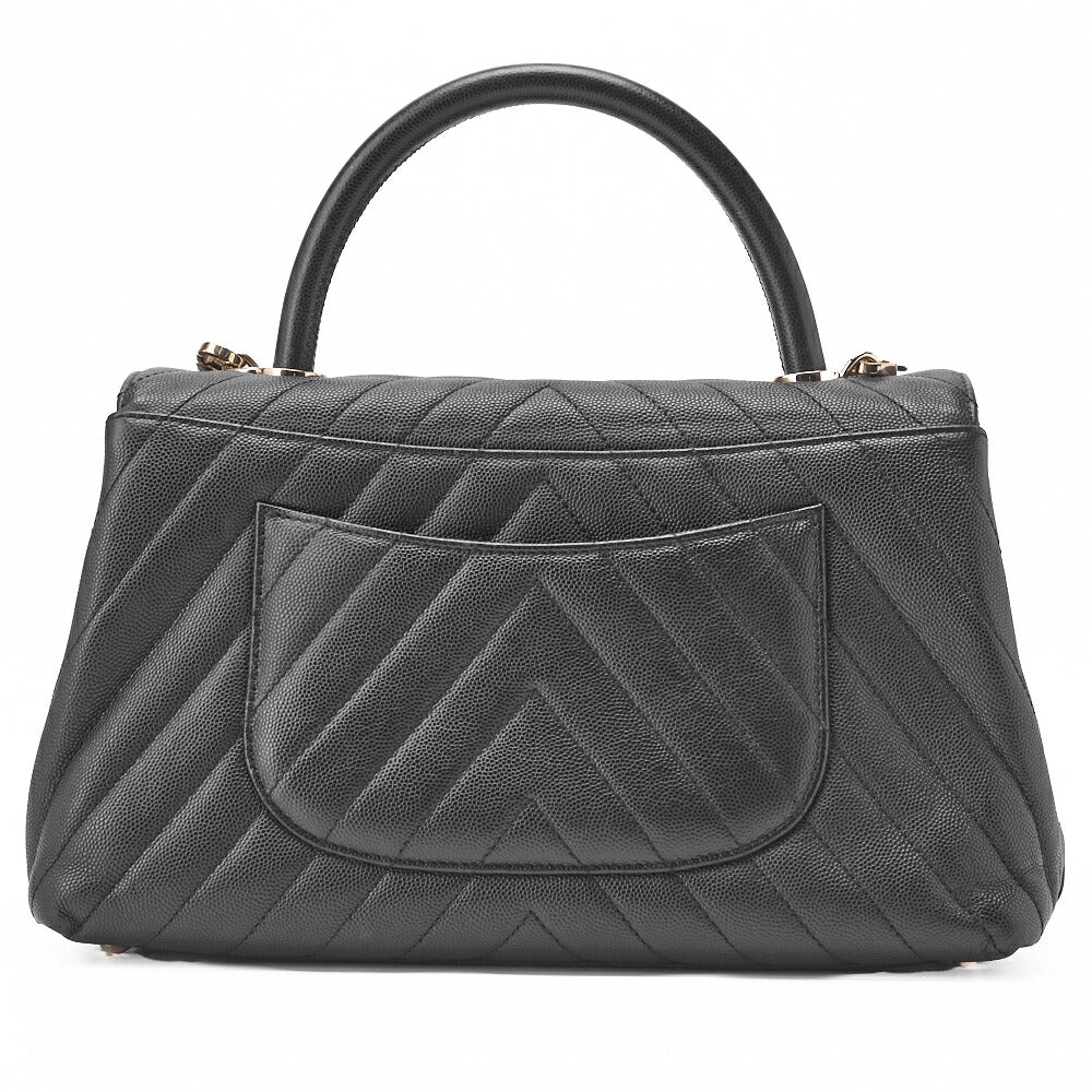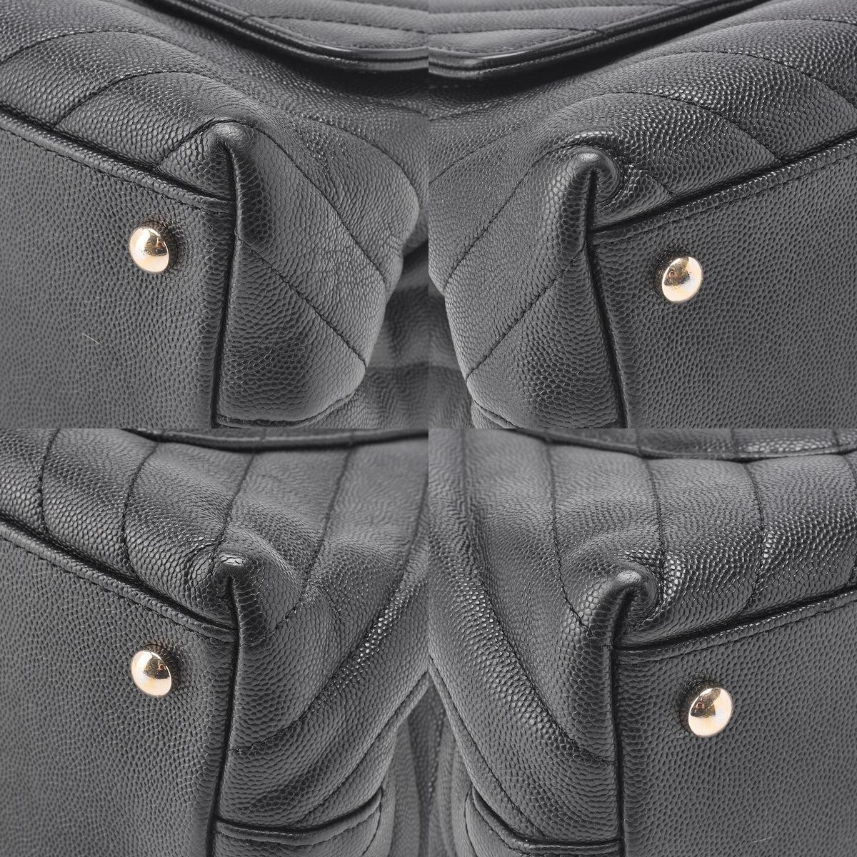 Sac à bandoulière d'occasion 2 voies avec couture en V et poignée en coco, cuir caviar noir et accessoires dorés.