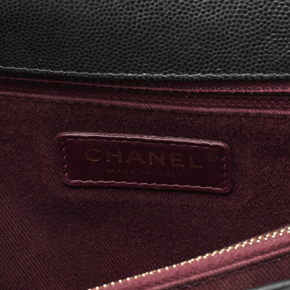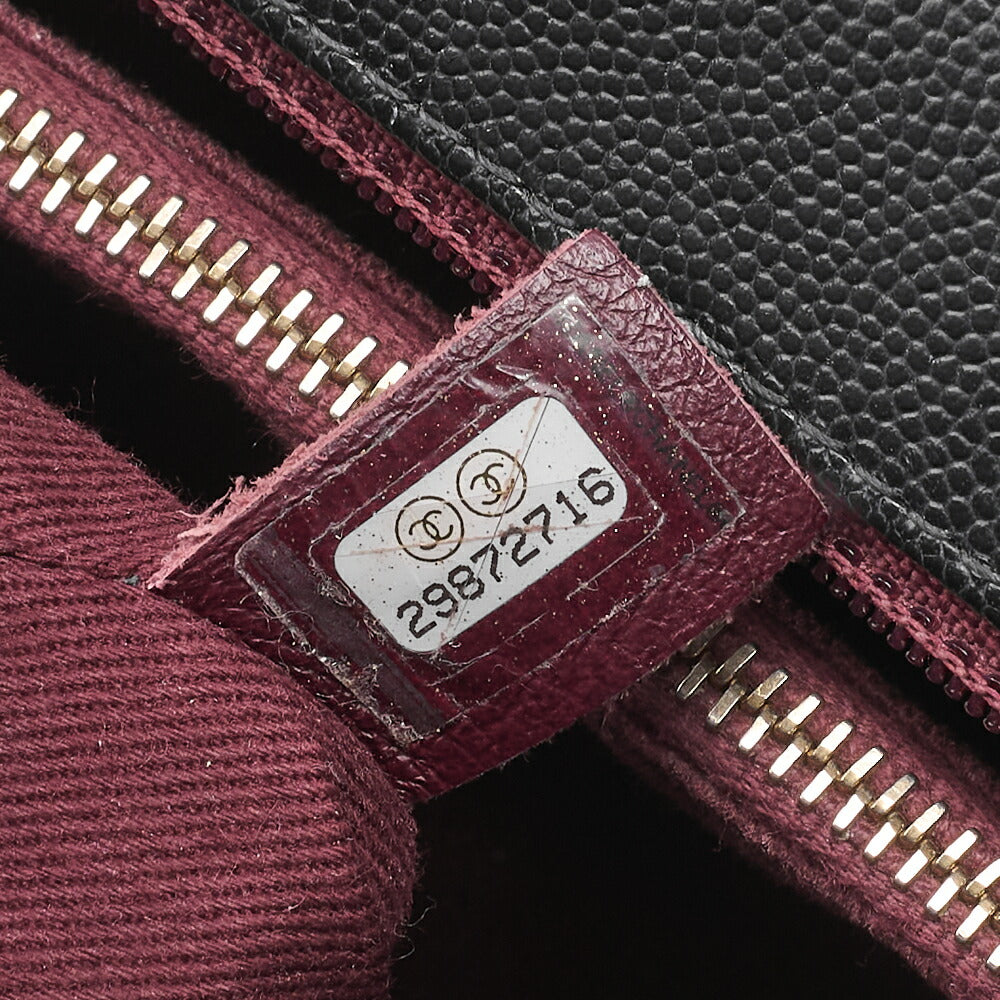 Découvrez l'élégant sac à main Chanel en cuir caviar luxueux, avec poignée en coco et couture en V. Ce superbe sac à main est conçu pour la femme moderne qui apprécie sophistication, style et fonctionnalité. Confectionné en cuir caviar noir haut de gamme, il est orné de magnifiques finitions en métal doré qui lui confèrent une touche d'opulence.