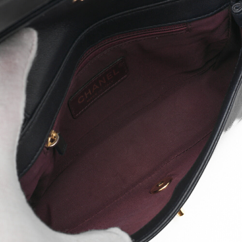 Sac bandoulière d'occasion en cuir de veau matelassé bleu marine, finitions dorées.