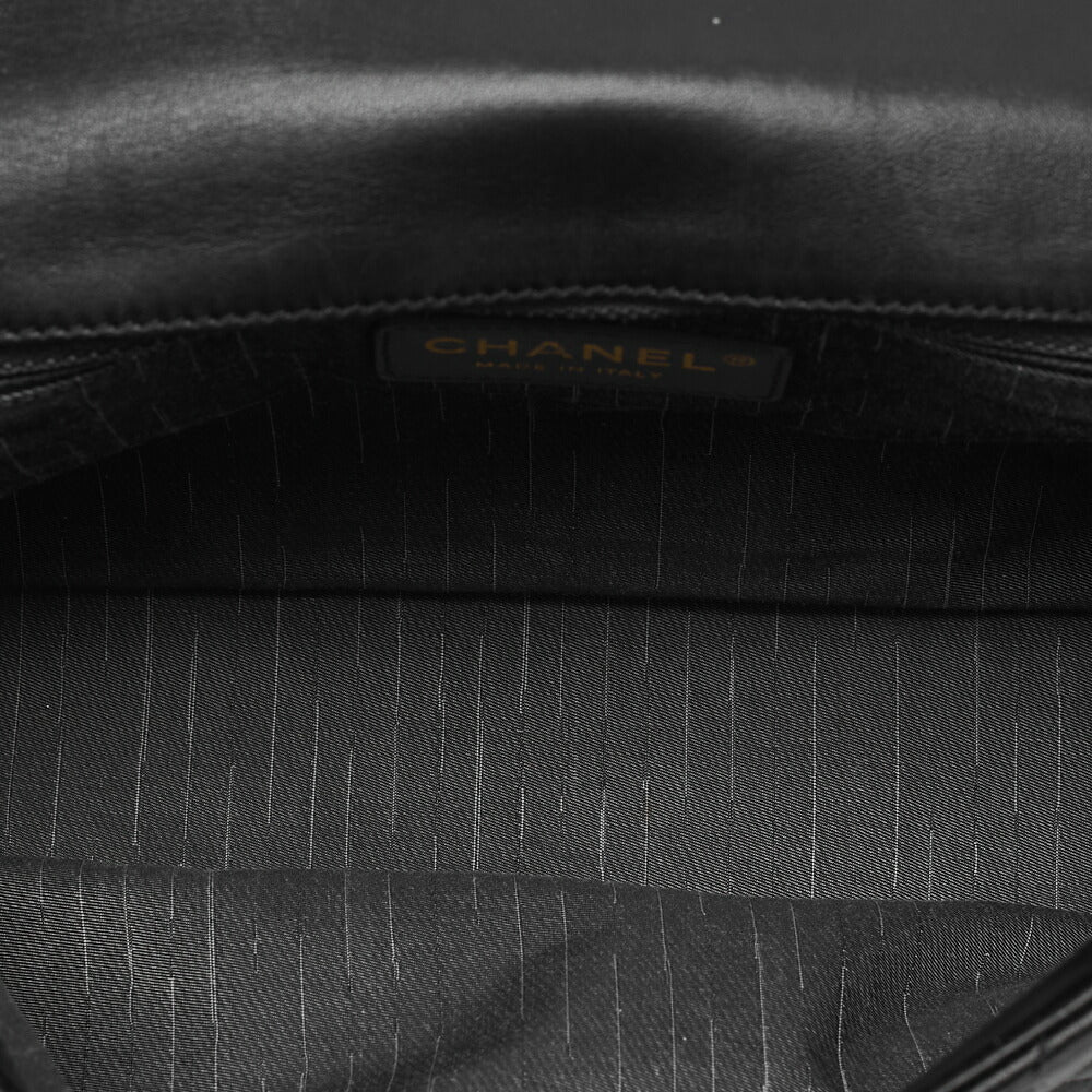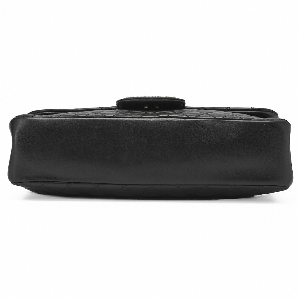 Sac bandoulière d'occasion en cuir d'agneau matelassé noir et métal doré.
