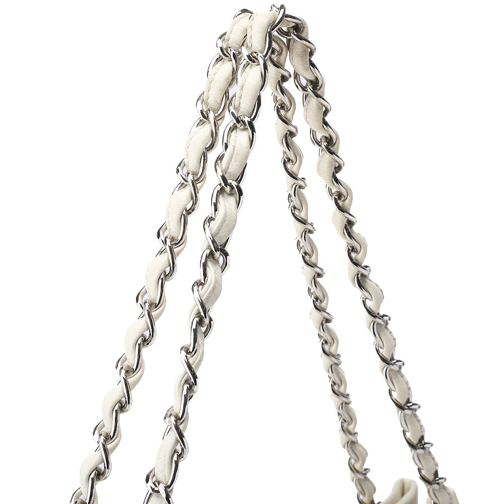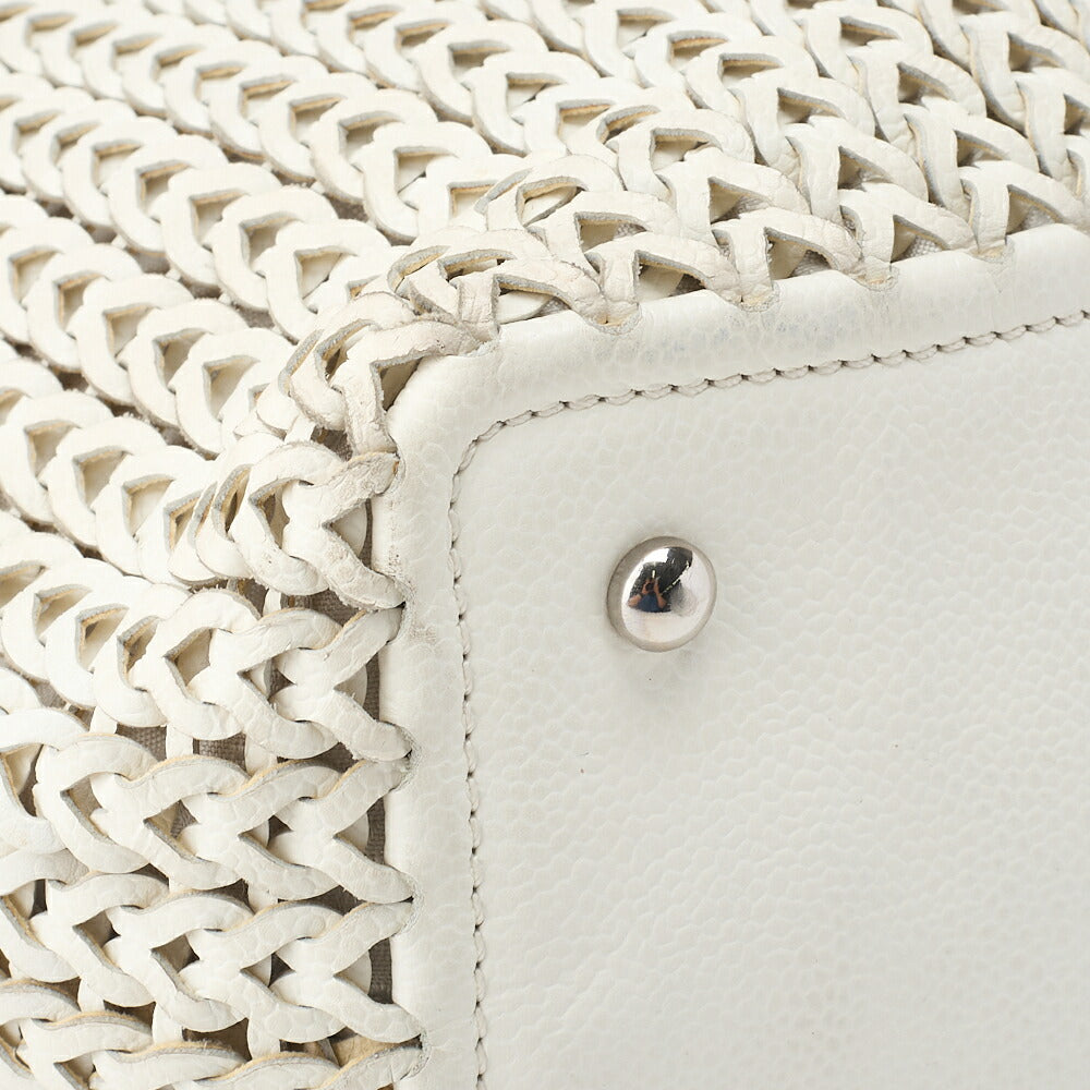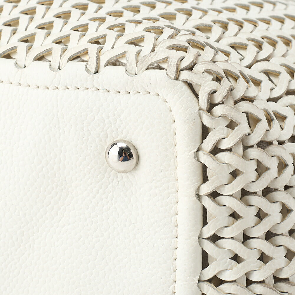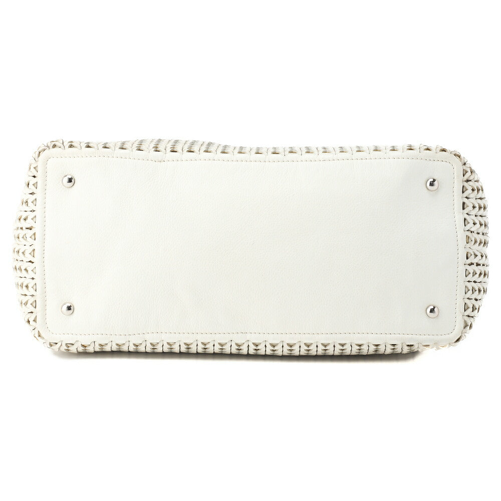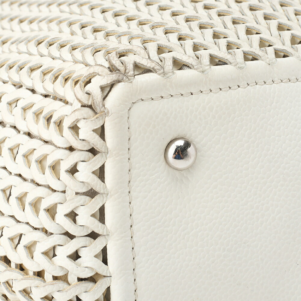 Sac fourre-tout à bandoulière d'occasion en cuir tressé avec chaîne et quincaillerie argentée ivoire.