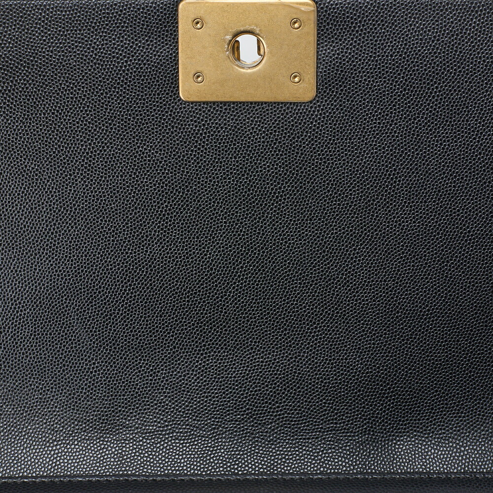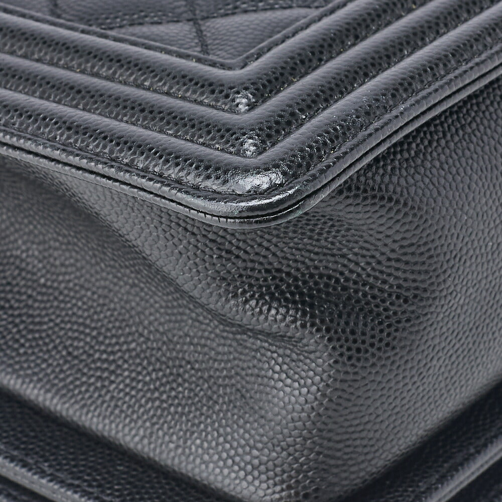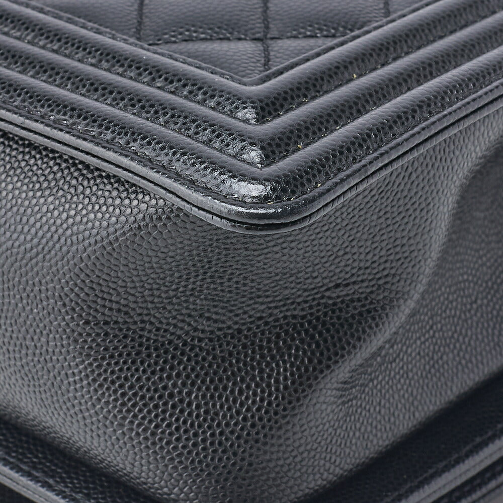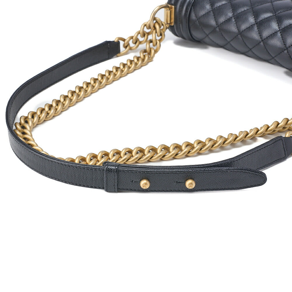 Sublimez votre style avec le sac cabas matelassé Chanel , une pièce magnifique confectionnée en cuir caviar luxueux. Ce sac bandoulière chaîne emblématique Boy Chanel arbore une couleur noire intemporelle ornée de magnifiques accessoires en métal doré, ce qui en fait l'accessoire idéal pour toute garde-robe chic.