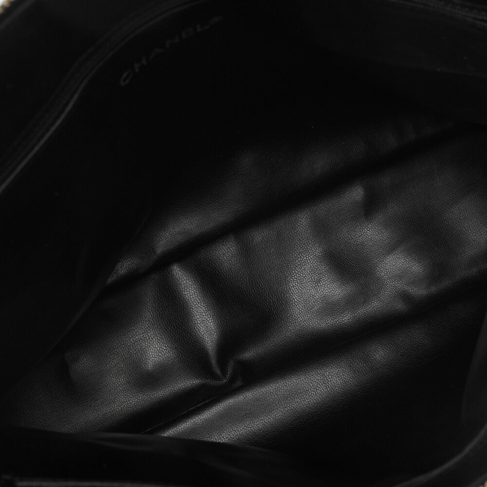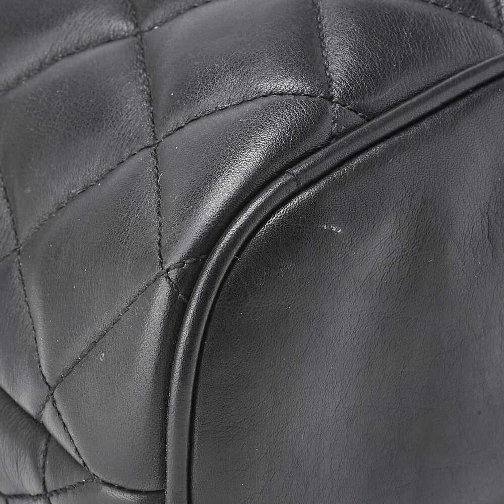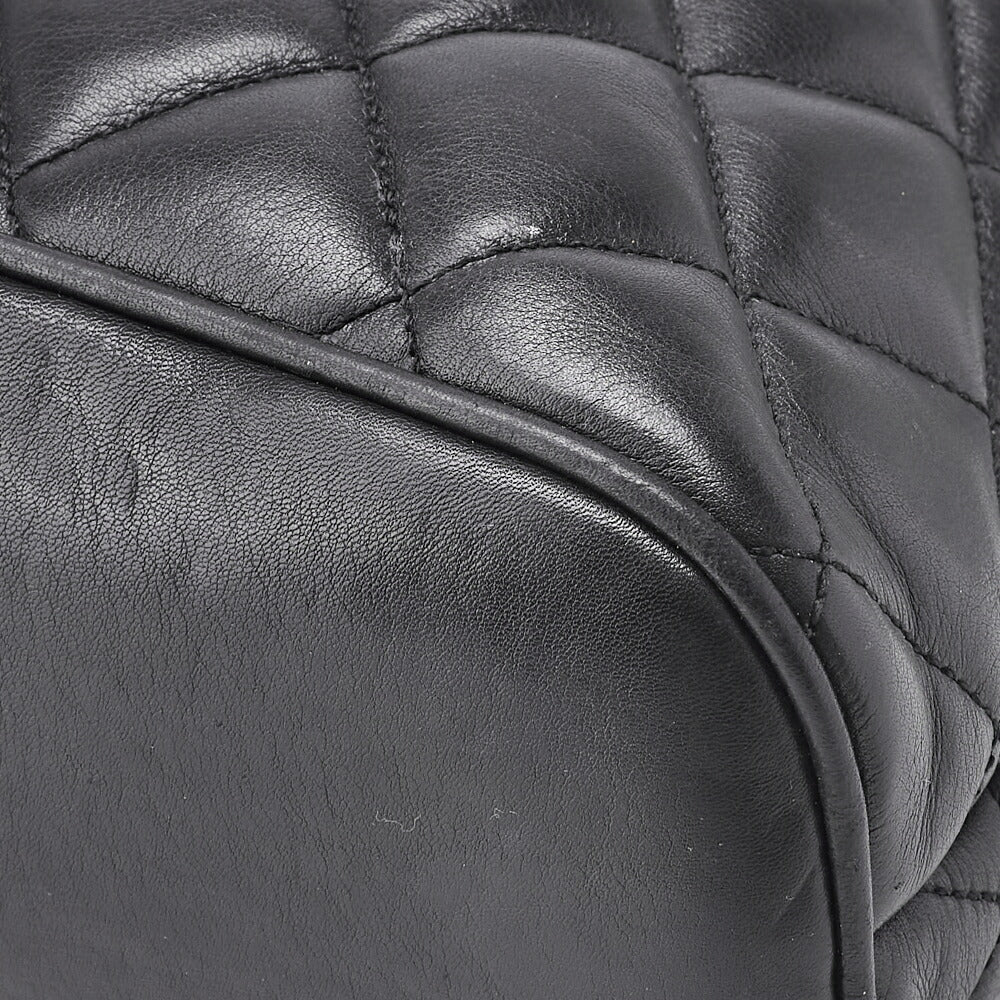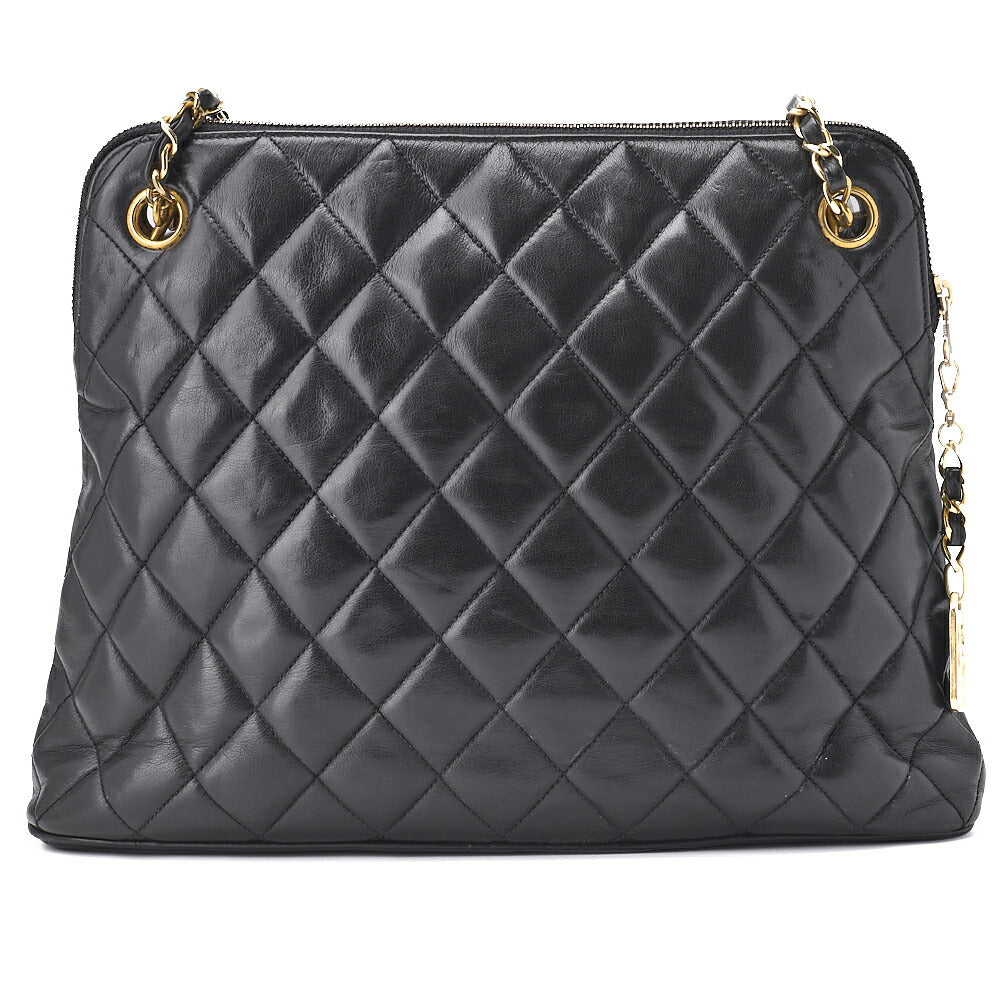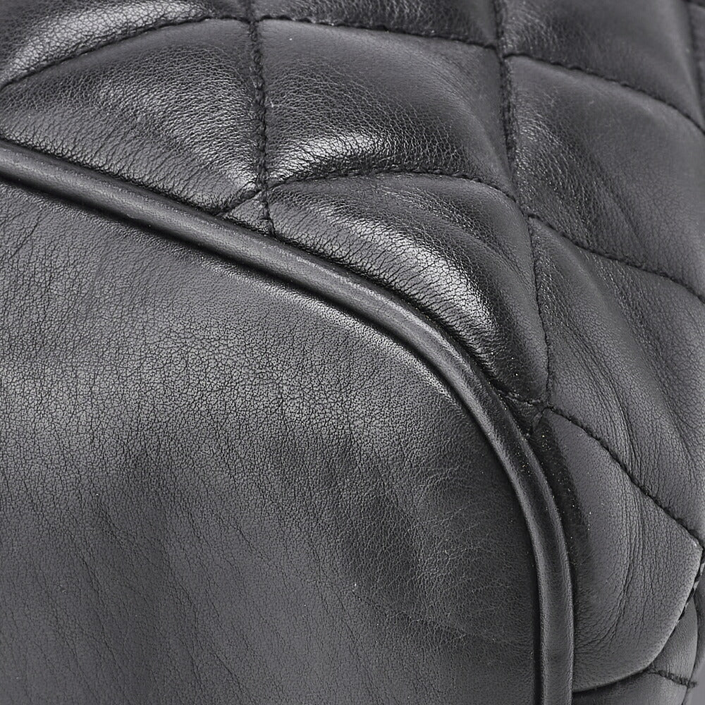 Sac fourre-tout à bandoulière d'occasion en cuir d'agneau matelassé noir et matériel doré.