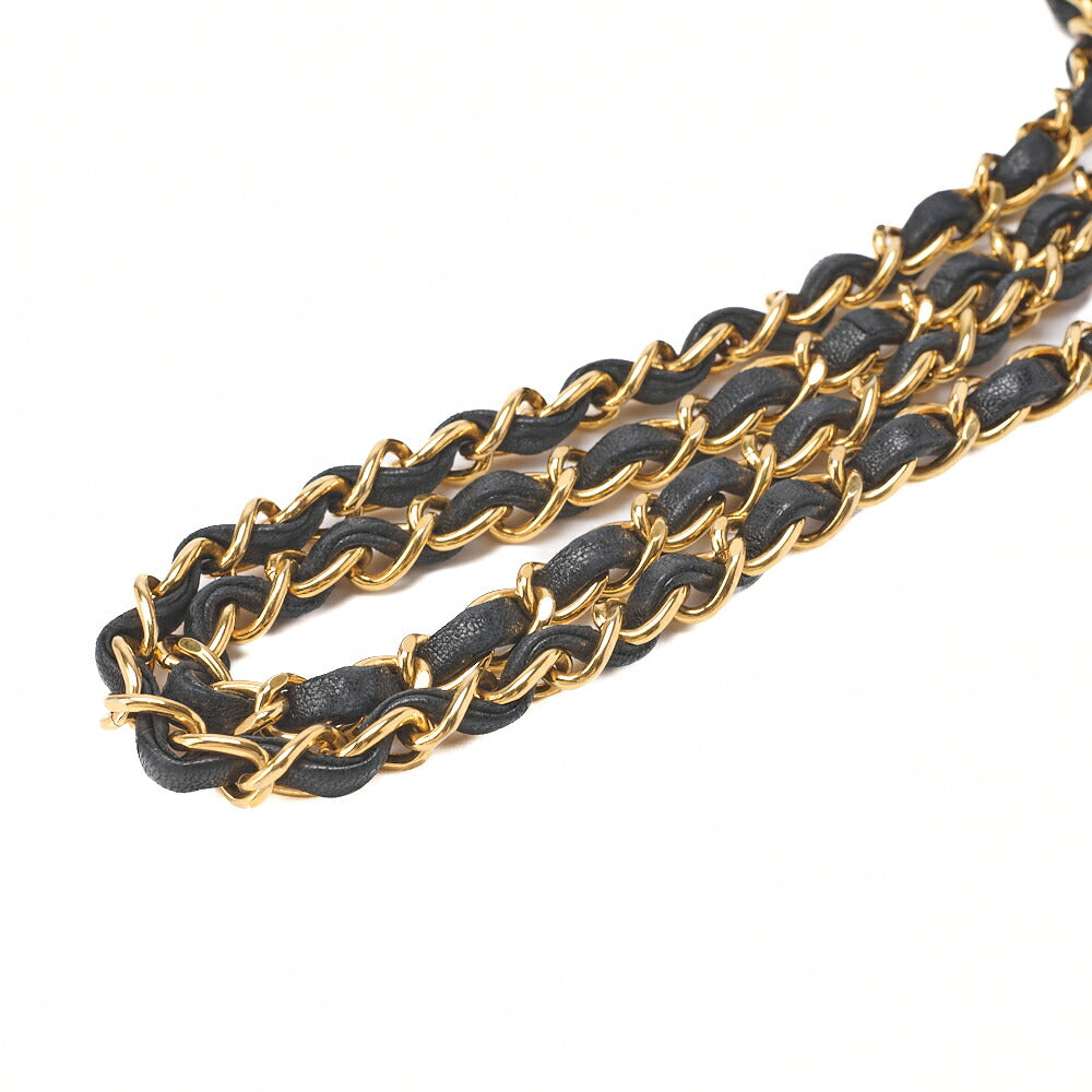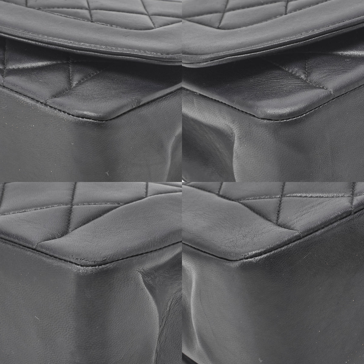 Sac fourre-tout à bandoulière d'occasion en cuir d'agneau matelassé noir et matériel doré.