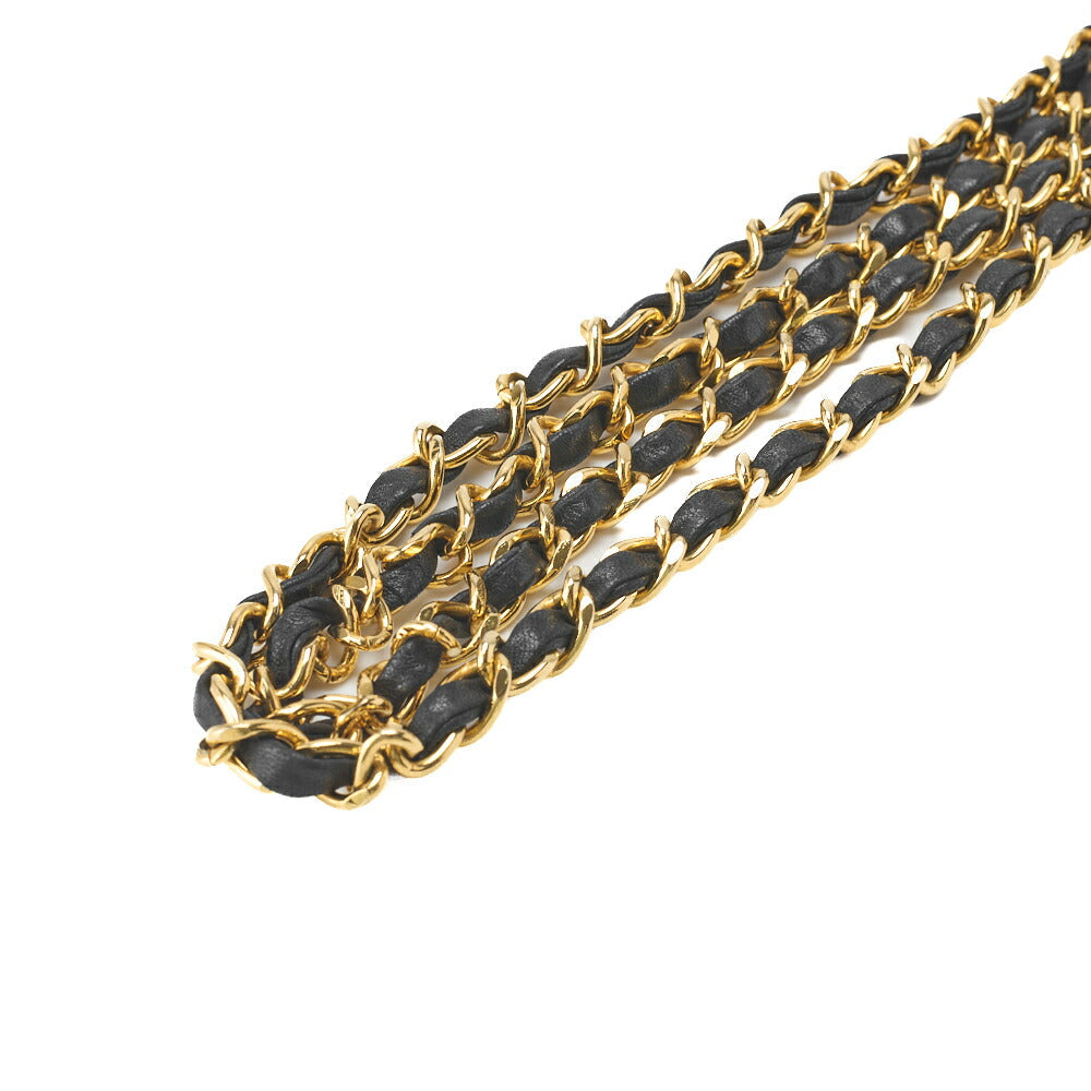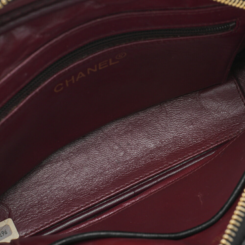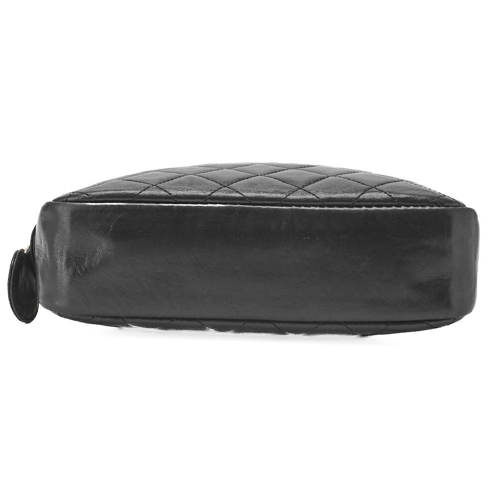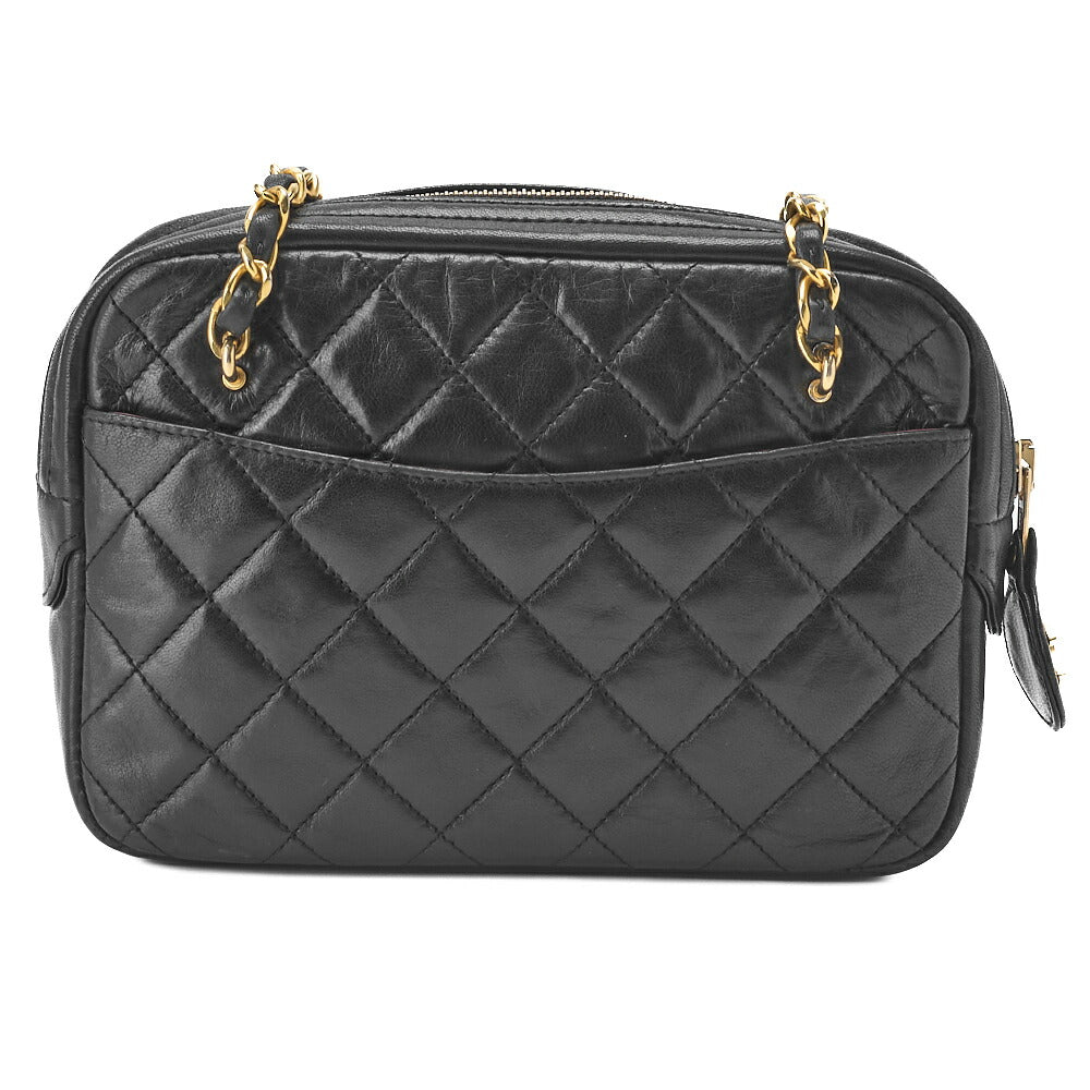 Sac fourre-tout à bandoulière d'occasion en cuir d'agneau matelassé noir et matériel doré.