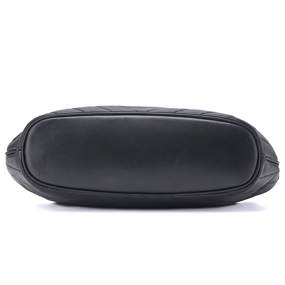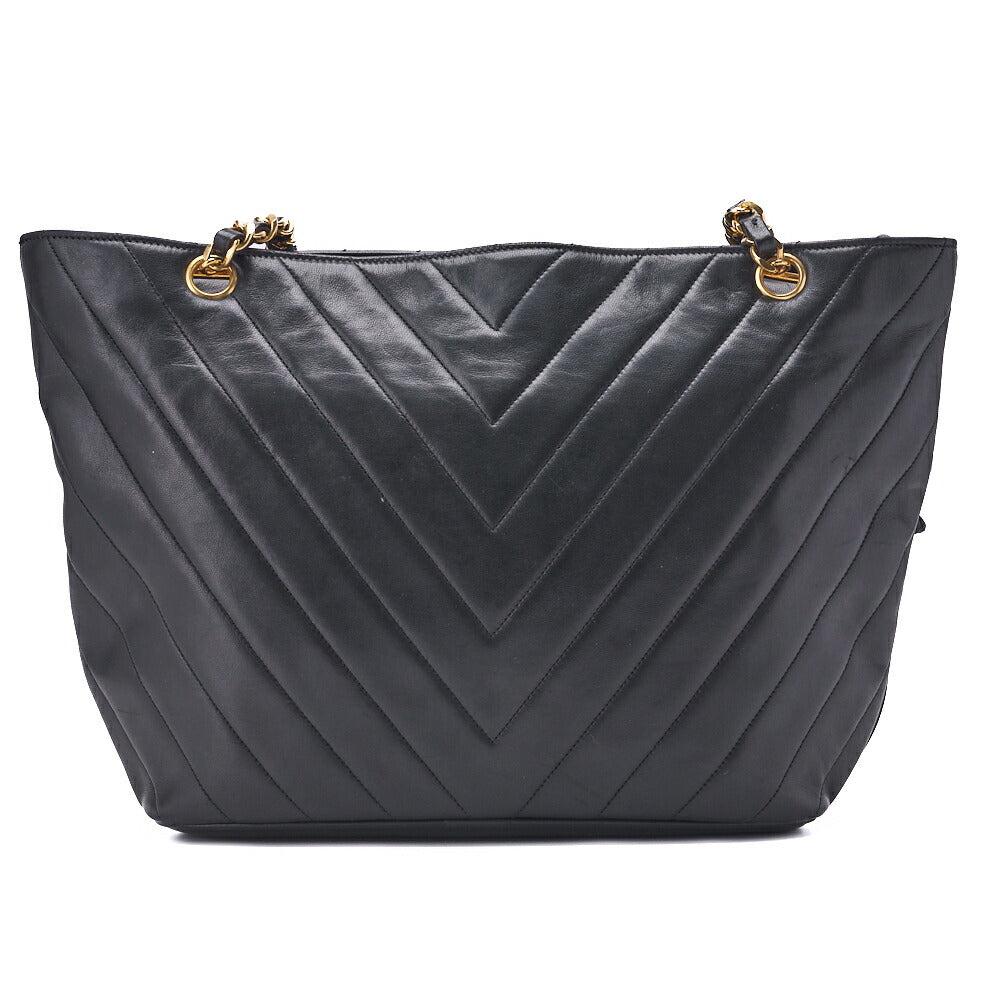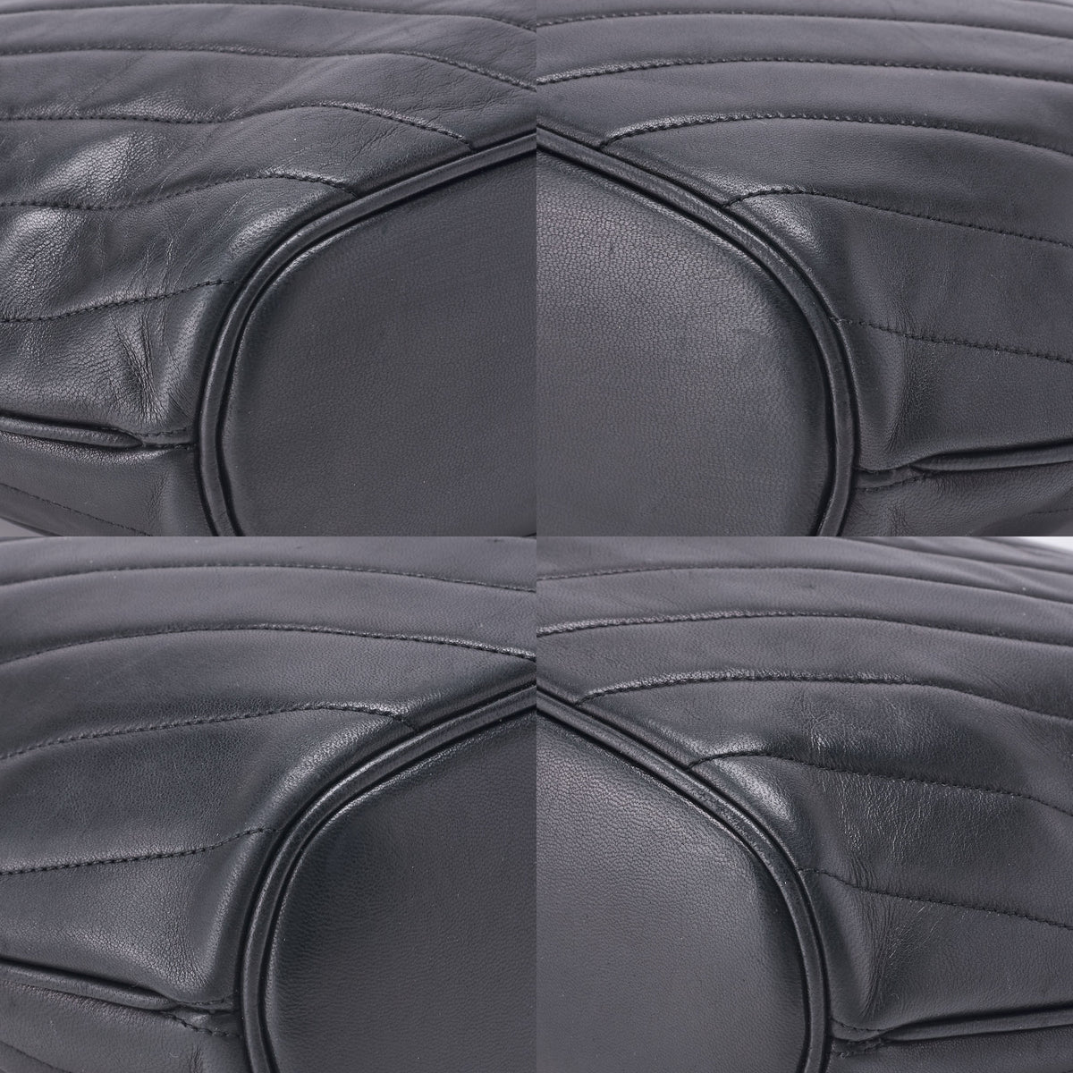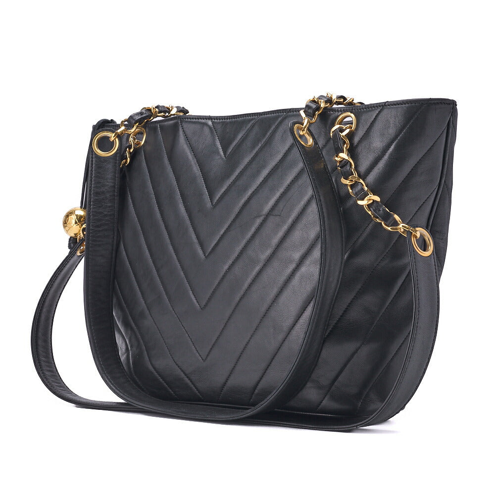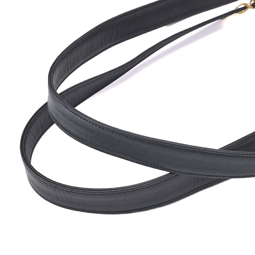 Sac bandoulière d'occasion, breloque boule à point V, bandoulière chaîne, cuir d'agneau, noir, finitions dorées, d'occasion
