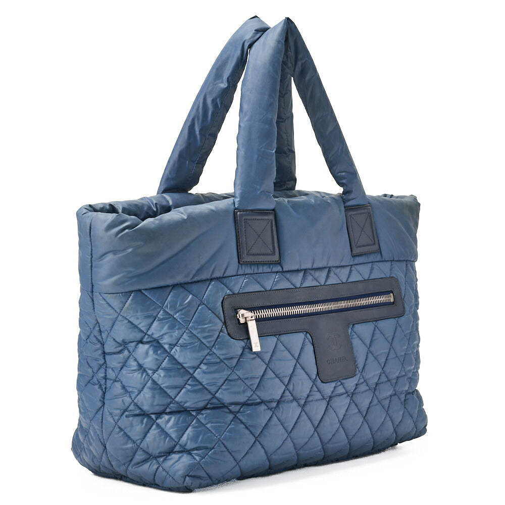 Pre-Owned Tote Bag Nylon Navy Coco Large Tote Silver-Tone Hardware, Pre-Owned