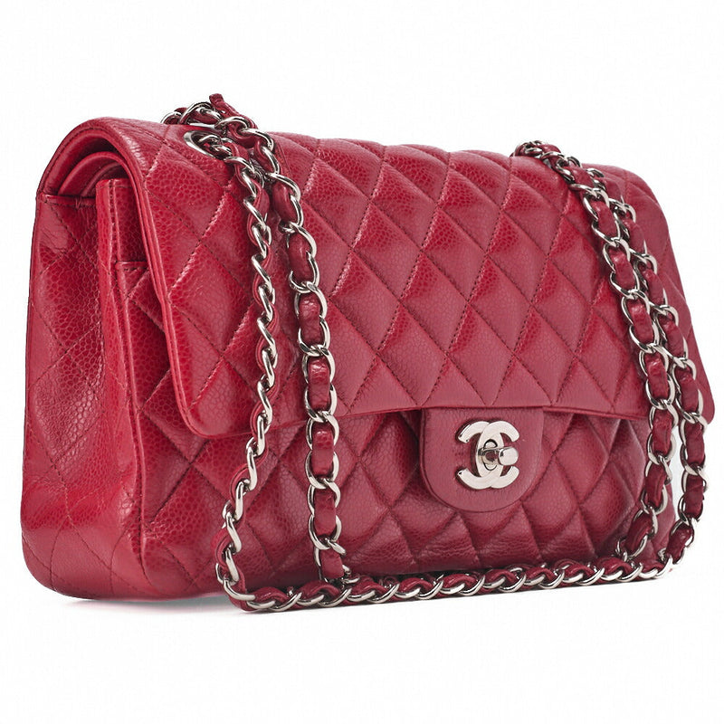 Pre-Owned Shoulder Bag Matelassé Double Flap 25cm Chain Shoulder Caviar Skin Red Silver-Tone Hardware, Pre-Owned