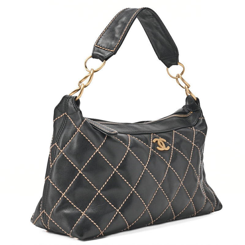 Sac bandoulière d'occasion, Coco Mark Wild Stitch, cuir de veau, noir, finitions dorées, d'occasion