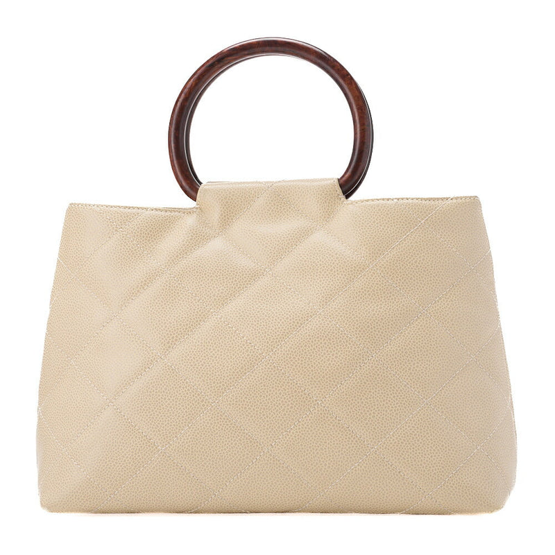 Sac à main d'occasion, matelassé Coco Mark Wood, cuir caviar, beige, finitions dorées, d'occasion