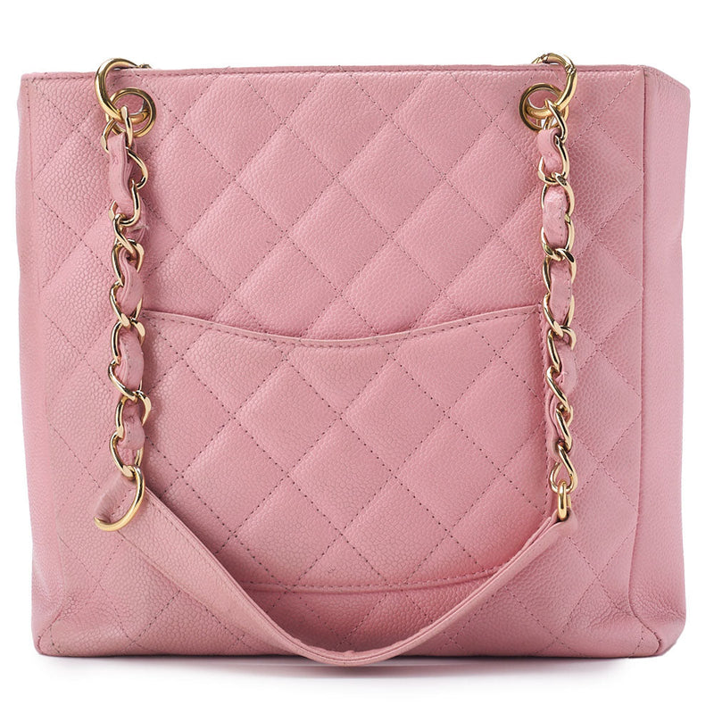 Sac fourre-tout d'occasion en cuir matelassé caviar, finitions dorées roses.
