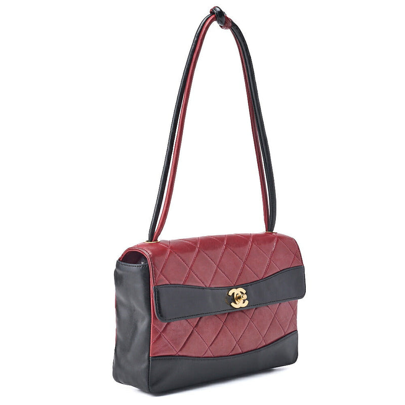 Sac à bandoulière matelassé d'occasion avec fermoir tournant en cuir d'agneau rouge et finitions dorées.