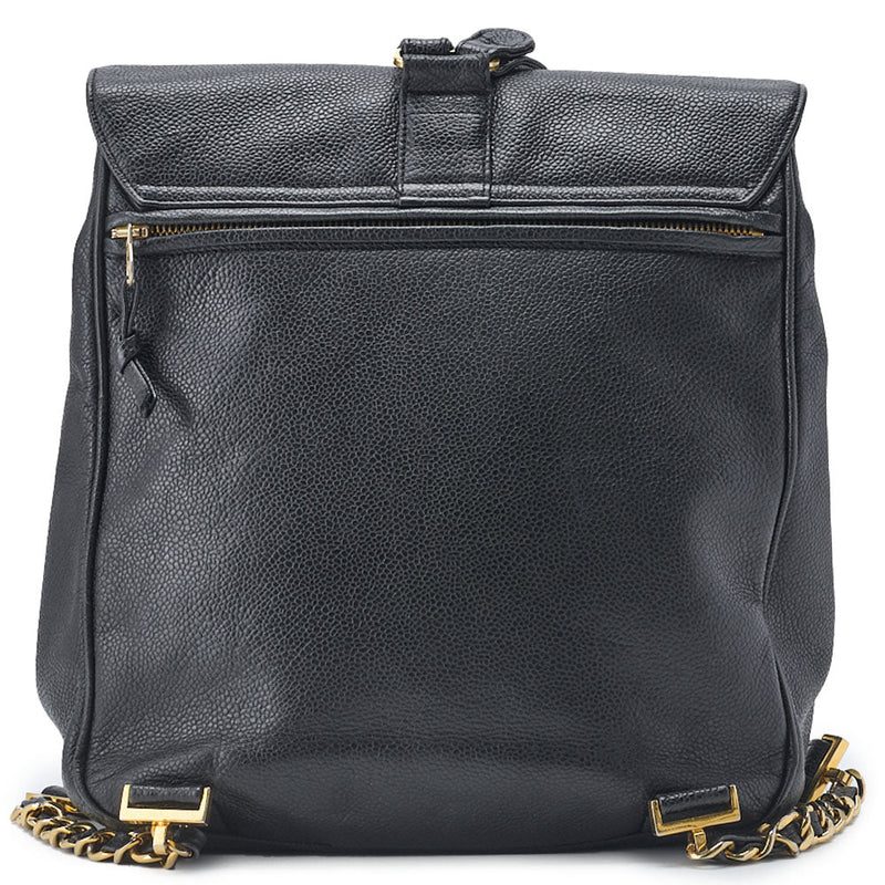 Sac à dos à chaîne d'occasion, fermoir Coco Turn, cuir caviar, noir, accessoires dorés, d'occasion